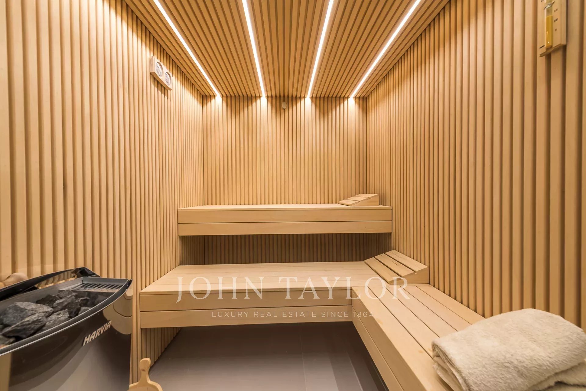La villa dispone anche di un ascensore e di una sauna interna. Questa lussuosa proprietà non lascia nulla a desiderare, circondata da tanta natura, potete lasciare che il vostro sguardo vaghi in lontananza e godervi la vista su una delle terrazze con un bicchiere di vino.