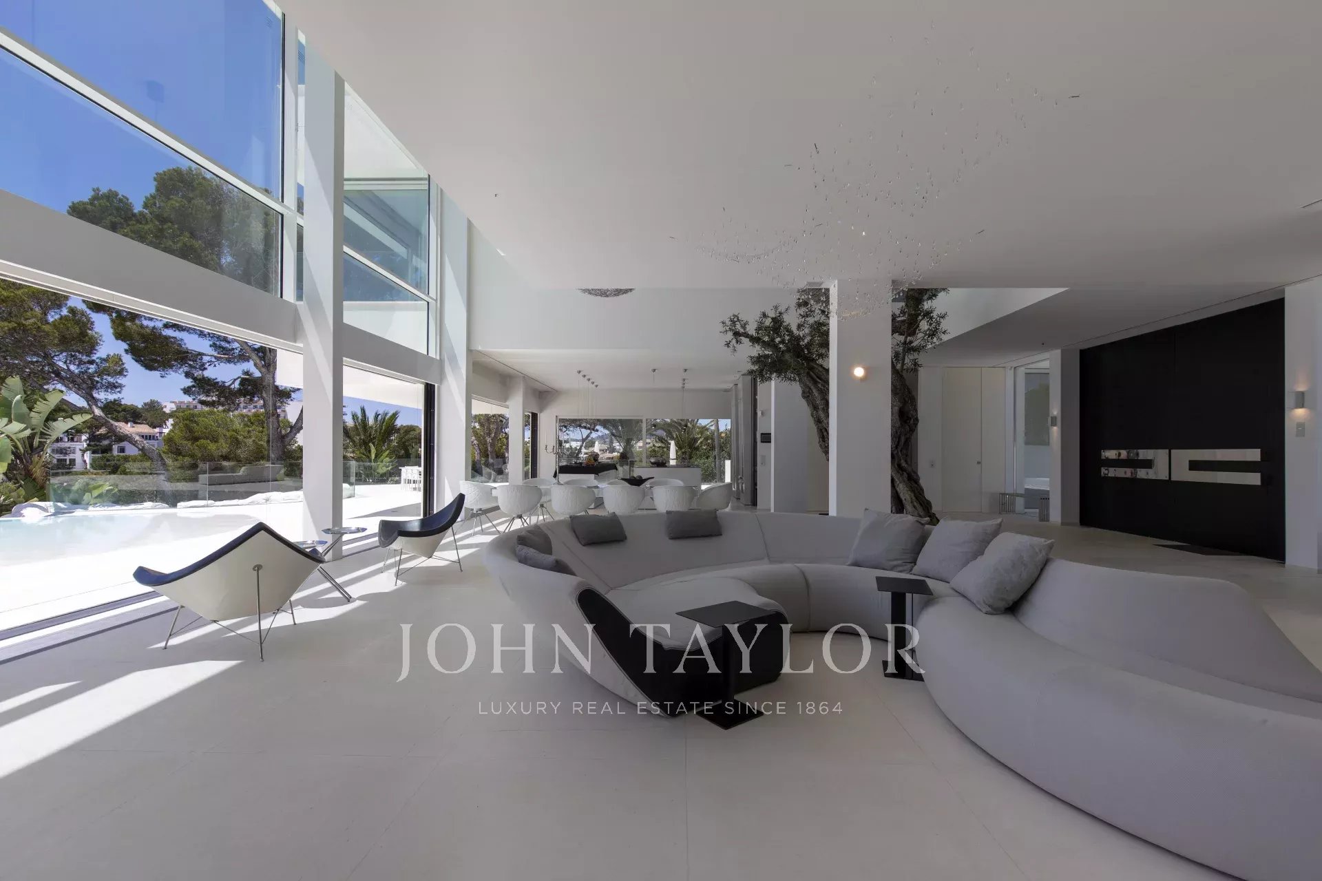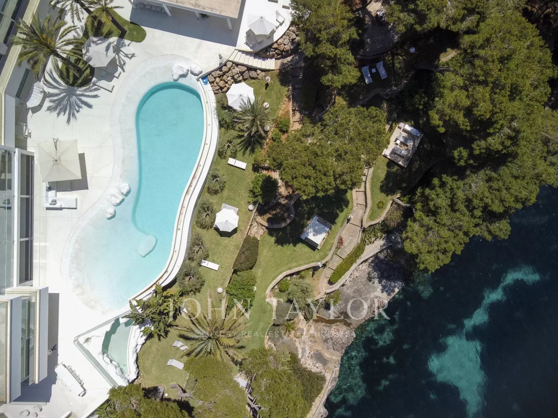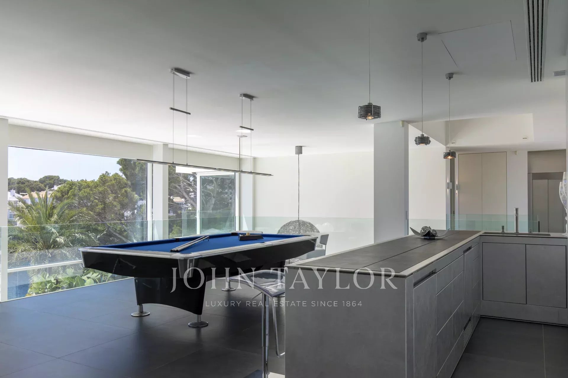 Questa proprietà si trova a Cala D'Or e colpisce per la sua esclusività. Gli interni di Casa Roel sono stati progettati dal proprietario stesso e rendono la villa un capolavoro futuristico. Costruita nel 2013, la villa si trova in posizione elevata sopra la baia di Cala D'Or e offre una vista panoramica mozzafiato sulla baia. La piscina lagunare lunga oltre 25 metri, la cascata di roccia e la vasca idromassaggio sono ulteriori servizi della casa. Sui 4500 m2 dell'ampia proprietà si trovano diverse aree chill-out con zone per prendere il sole e un salone esterno coperto con bar e barbecue. L'accesso privato al mare e un ormeggio privato per yacht fino a 25 metri sono altri punti di forza. L'ulivo centenario integrato nell'atrio d'ingresso fa capire l'unicità della proprietà non appena si entra. L'aria condizionata e il riscaldamento a pavimento sono presenti in tutta la casa. La zona giorno, la terrazza sul tetto e la suite padronale sono dotate di un sistema audio Sonos. La cucina di design completamente attrezzata con frigoriferi per il vino non lascia nulla a desiderare. Casa Roel dispone di 5 camere da letto doppie e di una suite padronale. La suite padronale, così come le 3 camere matrimoniali, hanno ciascuna il proprio bagno privato. Due delle 6 camere da letto condividono un bagno. Altri servizi della casa includono la sala fitness, dotata di attrezzature di alta qualità e vista sul mare, la sala da biliardo e la sala multimediale interna con schermo 3D e calcio balilla. Grazie all'illuminazione eccezionale, la villa offre un'atmosfera speciale la sera, il luogo perfetto per una vacanza esclusiva.