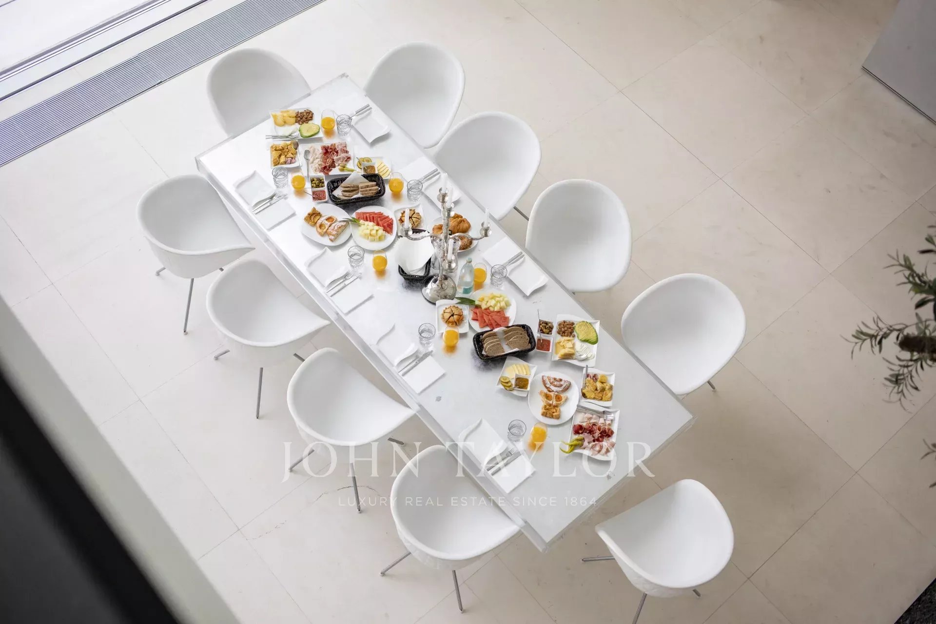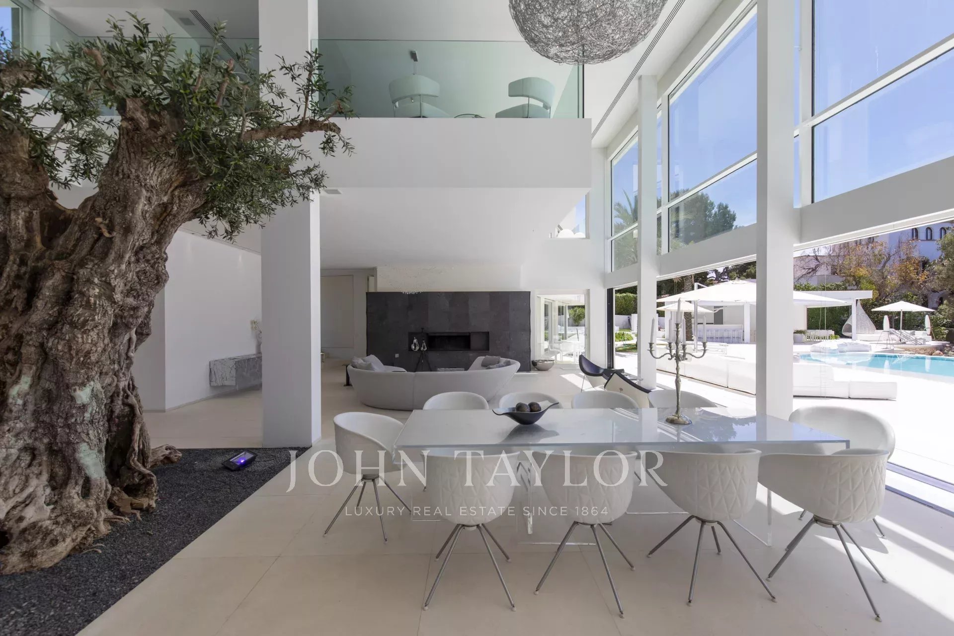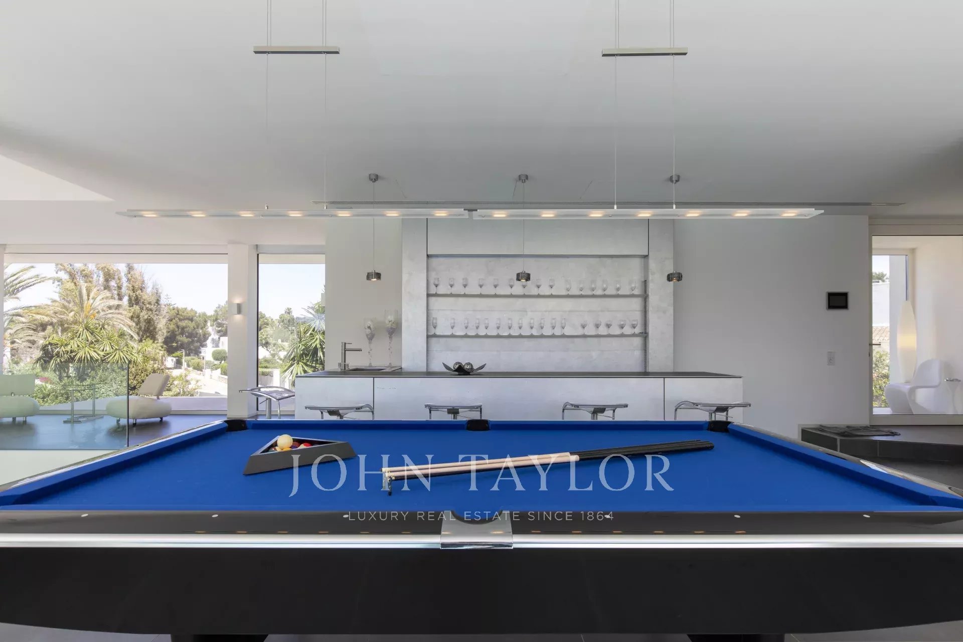 Questa proprietà si trova a Cala D'Or e colpisce per la sua esclusività. Gli interni di Casa Roel sono stati progettati dal proprietario stesso e rendono la villa un capolavoro futuristico. Costruita nel 2013, la villa si trova in posizione elevata sopra la baia di Cala D'Or e offre una vista panoramica mozzafiato sulla baia. La piscina lagunare lunga oltre 25 metri, la cascata di roccia e la vasca idromassaggio sono ulteriori servizi della casa. Sui 4500 m2 dell'ampia proprietà si trovano diverse aree chill-out con zone per prendere il sole e un salone esterno coperto con bar e barbecue. L'accesso privato al mare e un ormeggio privato per yacht fino a 25 metri sono altri punti di forza. L'ulivo centenario integrato nell'atrio d'ingresso fa capire l'unicità della proprietà non appena si entra. L'aria condizionata e il riscaldamento a pavimento sono presenti in tutta la casa. La zona giorno, la terrazza sul tetto e la suite padronale sono dotate di un sistema audio Sonos. La cucina di design completamente attrezzata con frigoriferi per il vino non lascia nulla a desiderare. Casa Roel dispone di 5 camere da letto doppie e di una suite padronale. La suite padronale, così come le 3 camere matrimoniali, hanno ciascuna il proprio bagno privato. Due delle 6 camere da letto condividono un bagno. Altri servizi della casa includono la sala fitness, dotata di attrezzature di alta qualità e vista sul mare, la sala da biliardo e la sala multimediale interna con schermo 3D e calcio balilla. Grazie all'illuminazione eccezionale, la villa offre un'atmosfera speciale la sera, il luogo perfetto per una vacanza esclusiva.