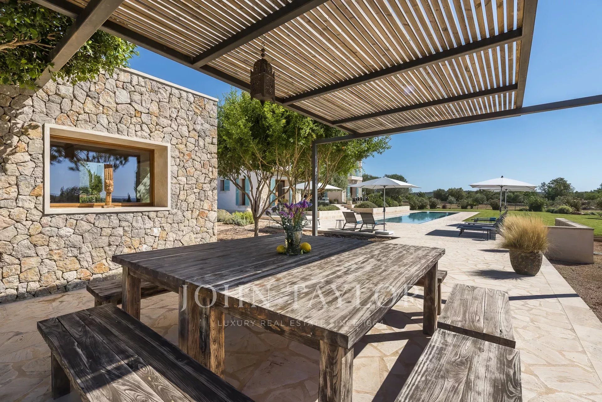 Bellissima finca su un terreno di 25.000 m2. Questa grande finca offre ai suoi ospiti molta privacy e tranquillità. In 6 camere da letto, ciascuna con bagno privato, la proprietà offre spazio per un massimo di 12 persone. 2 delle 6 camere da letto possono essere collegate da una porta scorrevole con serratura. L'arredamento di alta qualità e l'interessante architettura attraversano l'intera casa. Le grandi finestre garantiscono ambienti luminosi e un'atmosfera speciale. La grande cucina di design aperta fa battere forte il cuore dei cuochi dilettanti. La piscina esterna ha una zona separata con acqua bassa ed è ideale per i bambini più piccoli. Ci sono diverse terrazze coperte e scoperte con mobili per il relax e sedie a sdraio da cui si può godere di una magnifica vista sul paesaggio di Maiorca. La finca offre anche una sauna interna e una piccola cucina all'aperto. La famosa ed estesa spiaggia sabbiosa di Es Trenc si trova a soli 15 minuti di auto. Il noto ristorante Moli de Vent, con la sua raffinata cucina spagnola e internazionale, dista solo 1,5 km.