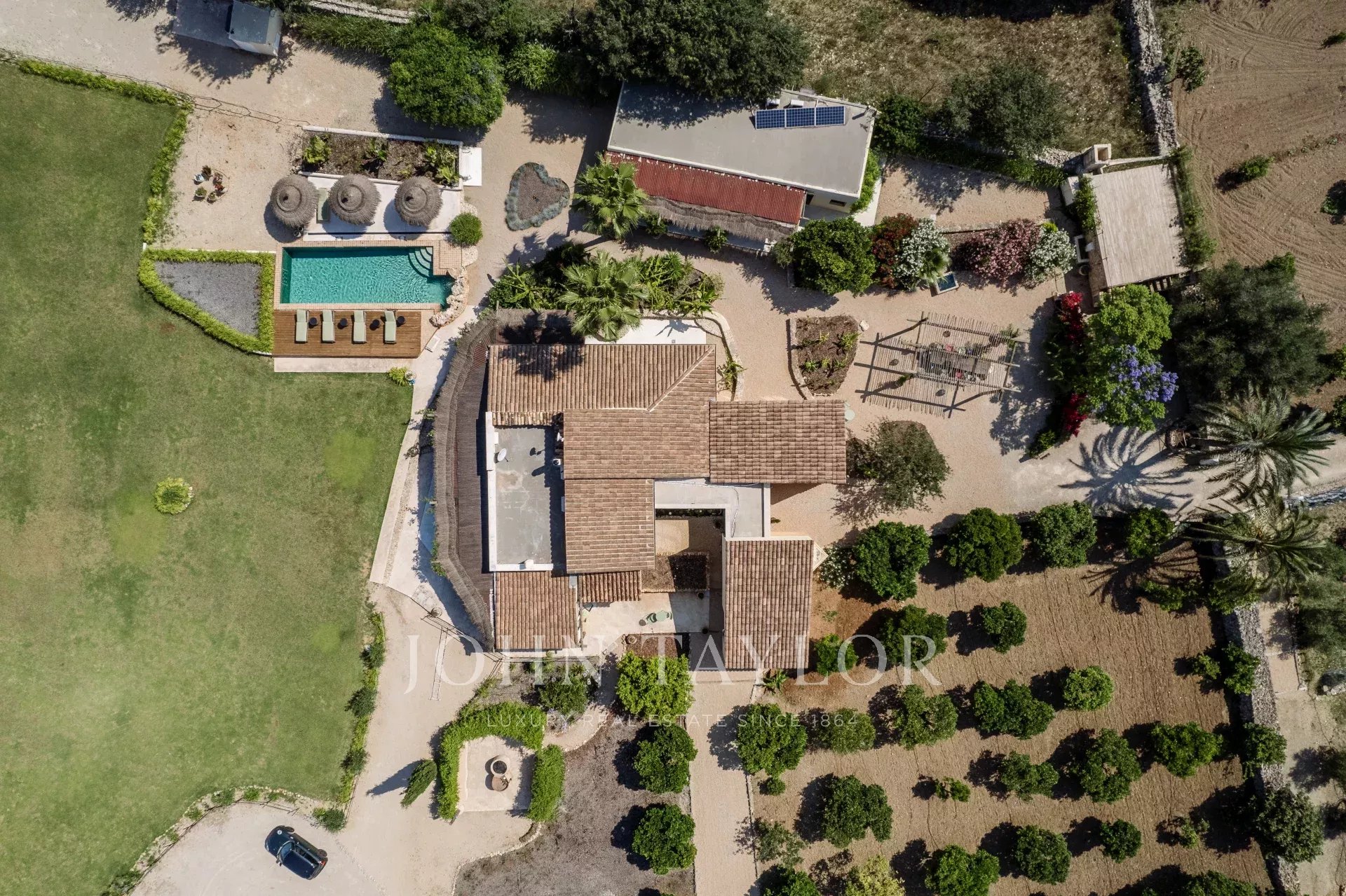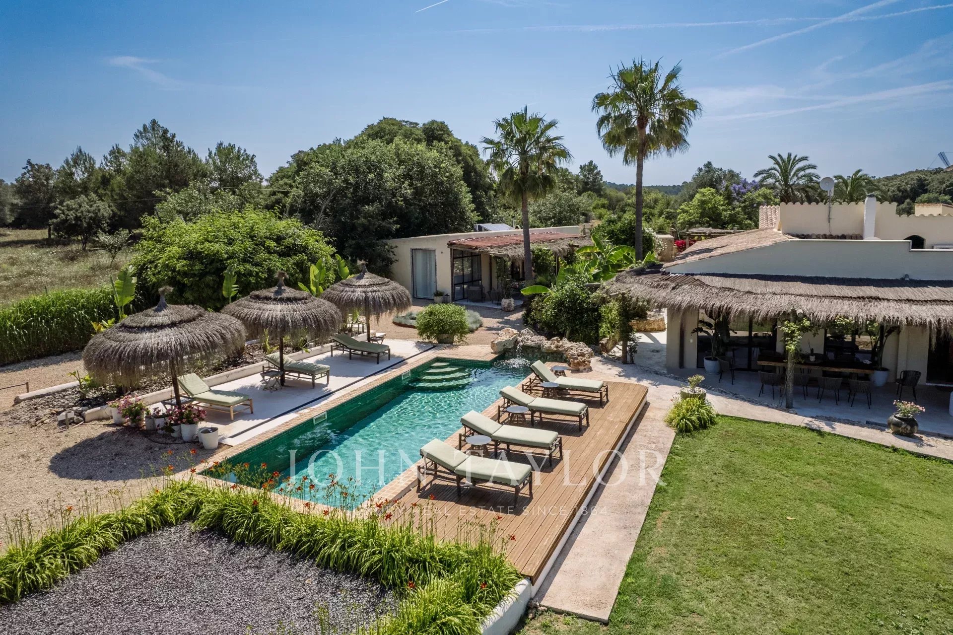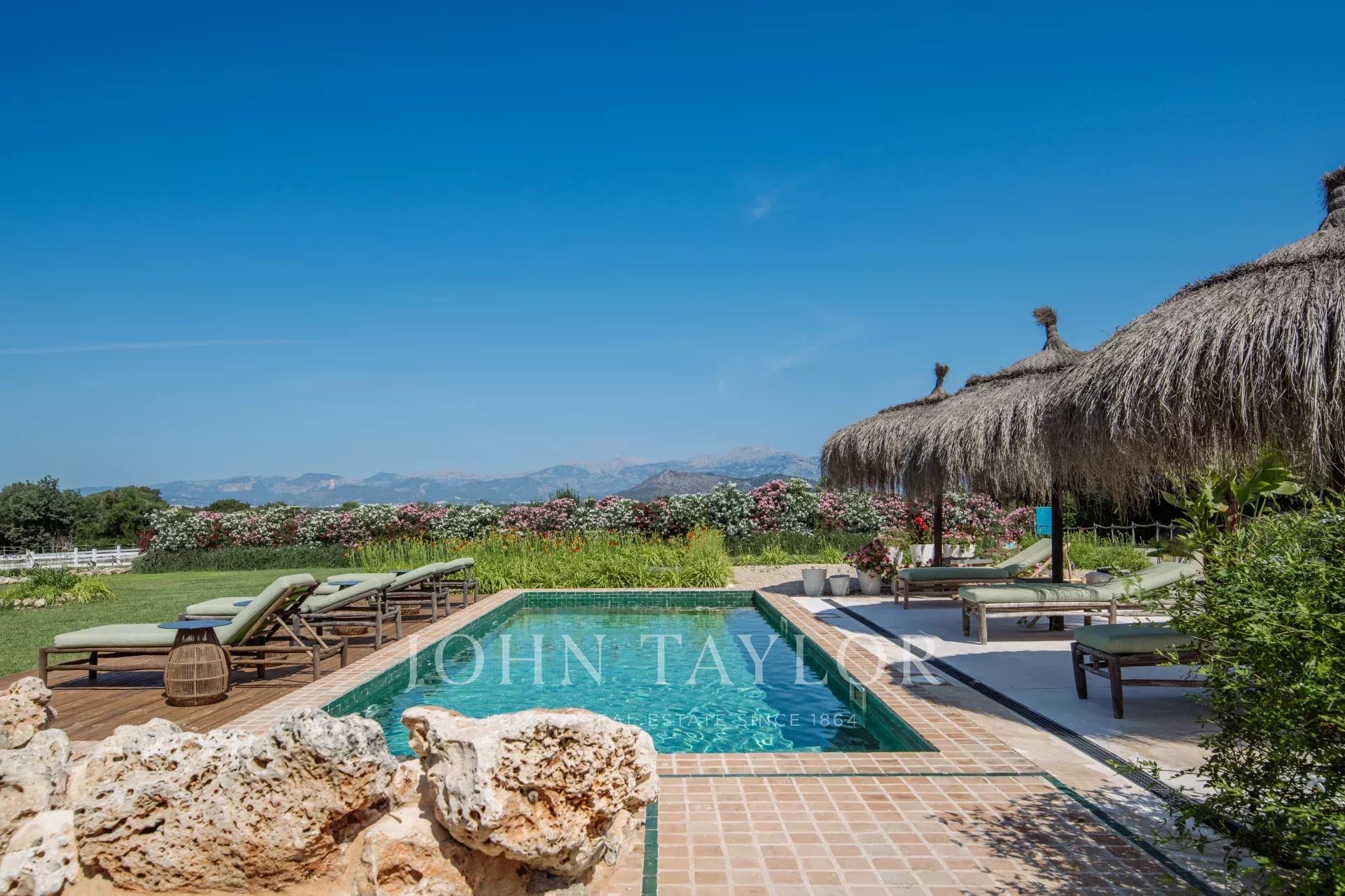 La splendida Finca Only Summer è stata completamente ristrutturata nel 2020 e affascina con il suo straordinario design. Il legame con la natura è in primo piano. Texture e colori caldi, abbinati a un design moderno, creano un'atmosfera molto speciale. Un rifugio esotico per il relax. La finca offre spazio per un massimo di 10 persone in 5 camere da letto doppie. 3 delle camere si trovano nella casa principale, 2 nella dependance. Tutte le camere hanno un bagno privato con doccia, aria condizionata e riscaldamento a pavimento. La cucina a pianta aperta è luminosa e il soggiorno adiacente è inondato di luce grazie all'ampia finestra frontale. La casa dispone di TV satellitare, Wifi e un sistema musicale Sonos. Una grande piscina nell'area esterna (riscaldabile a pagamento) offre refrigerio nelle giornate più calde. Nella proprietà nel cuore di Maiorca, circondata da un bellissimo paesaggio con vista sulle montagne di Tramuntana, ci sono numerosi alberi da frutto e un orto biologico. Nella Finca Only Summer c'è anche un paddock di oltre 10.000 m2 con cavalli dall'aspetto maestoso. Il vicino villaggio di Llubi si trova a pochi minuti di distanza, mentre la capitale dell'isola, Palma, dista circa 45 minuti in auto.