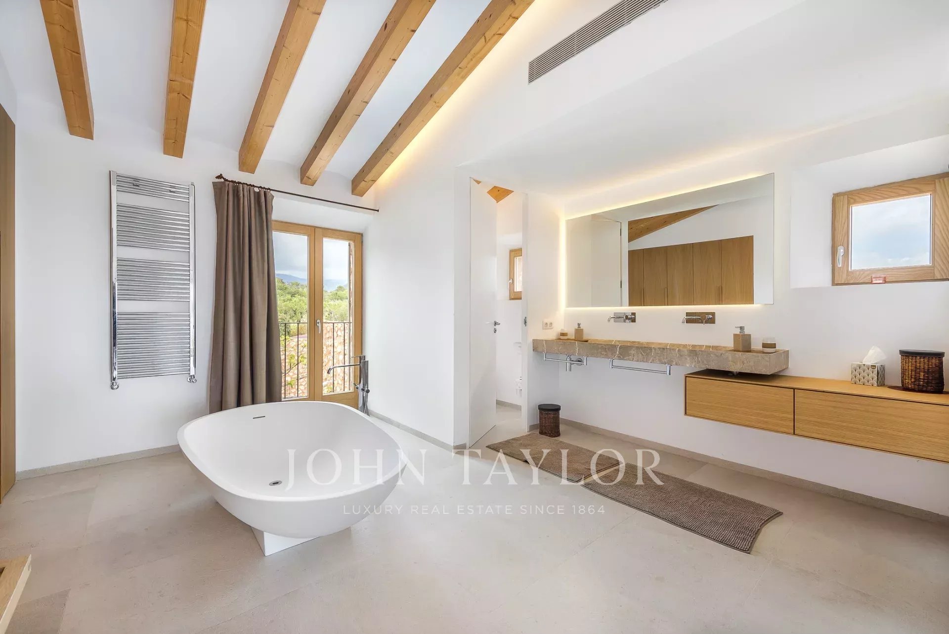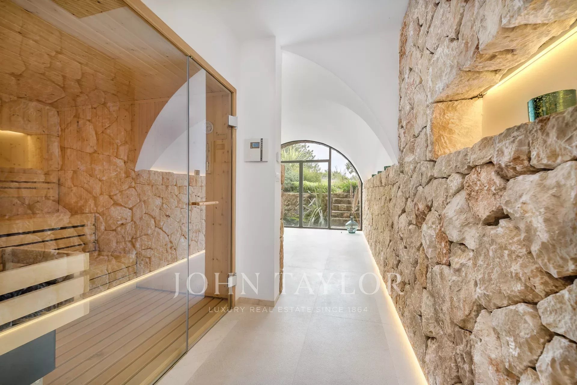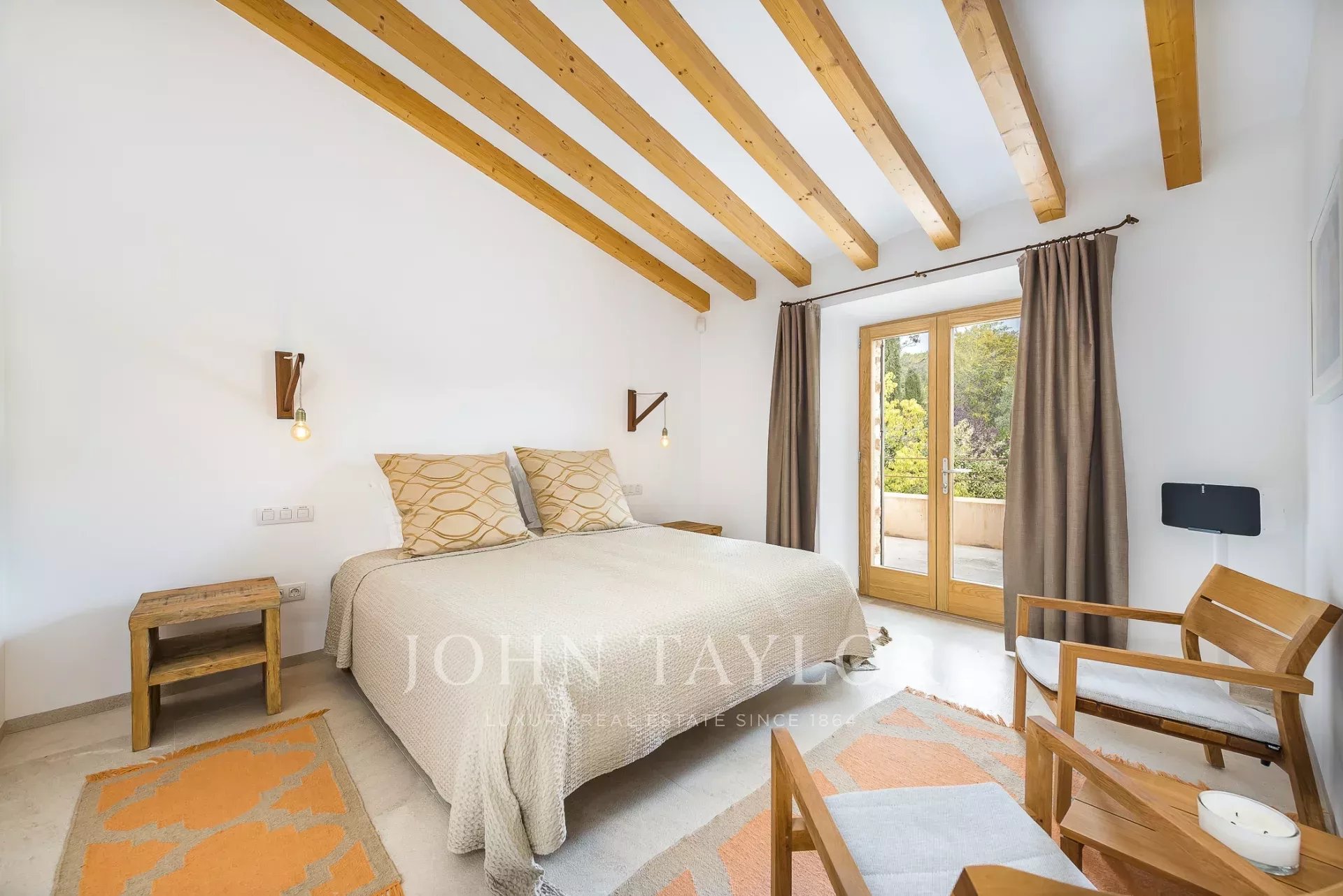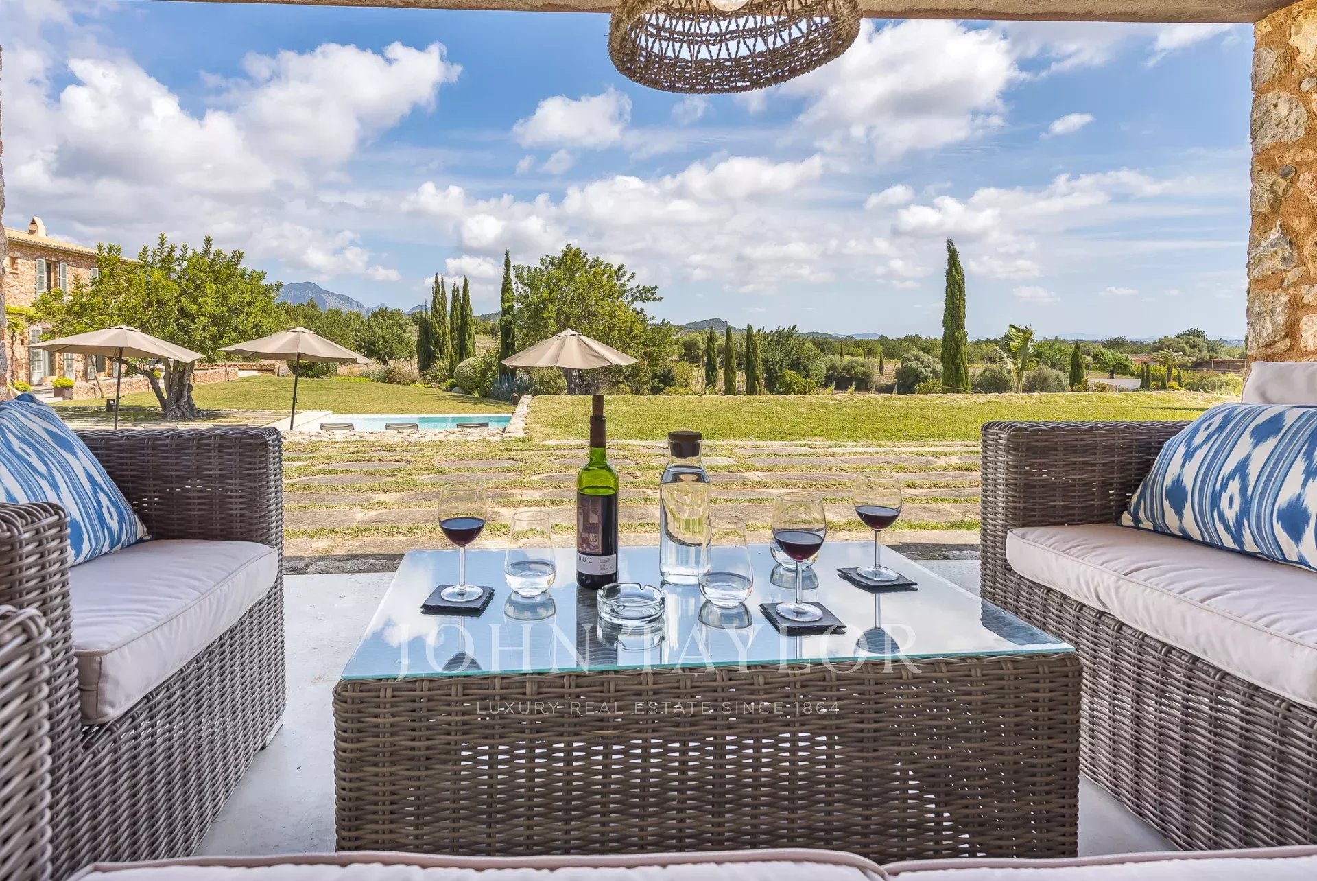 Questa affascinante finca in pietra naturale si trova alla periferia di Santa Maria. Circondata da un giardino mediterraneo e da diverse vigne con vista sullo splendido paesaggio, questa finca affascina per la sua costruzione autentica. Di recente costruzione e ultramoderna senza perdere il carattere tipico e accogliente della finca, si trova su un terreno di circa 4 ettari. Le 4 camere da letto offrono spazio per un massimo di 8 persone e sono distribuite su 3 piani. Le grandi finestre esposte a sud forniscono molta luce e garantiscono una magnifica vista sulla vegetazione tipica del paese con ulivi, mandorli e carrubi. Diverse terrazze coperte e scoperte con zone relax e una grande piscina offrono spazio sufficiente per godere della pace e dell'idillio dei dintorni. La casa è arredata in stile moderno con colori e materiali caldi, che conferiscono un'atmosfera speciale di benessere. La cucina è moderna e completamente attrezzata. Gli ospiti hanno inoltre accesso alla sala fitness della struttura.