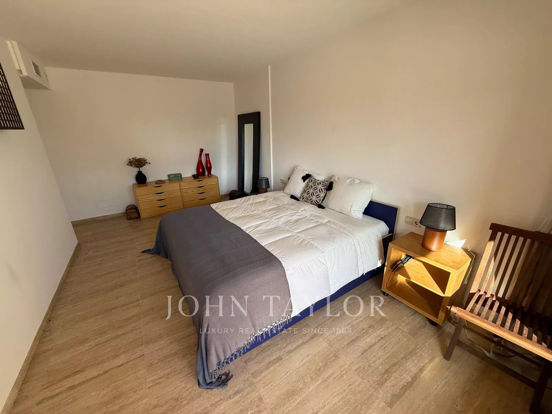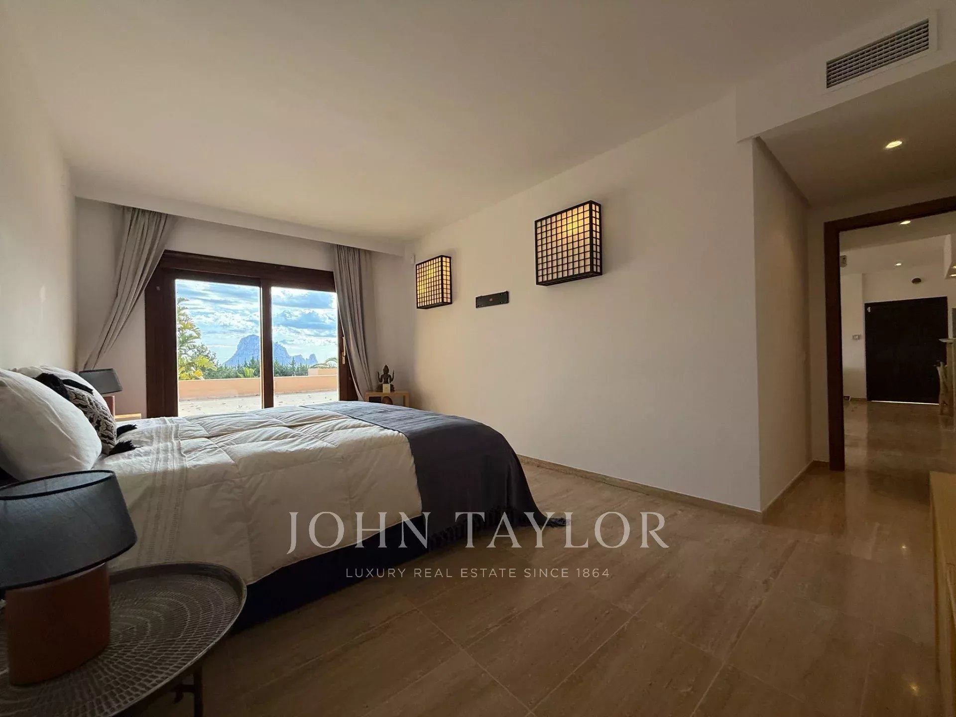 Due ulteriori camere da letto che condividono un bagno, una delle quali con vista su Es Vedrà e accesso esterno.