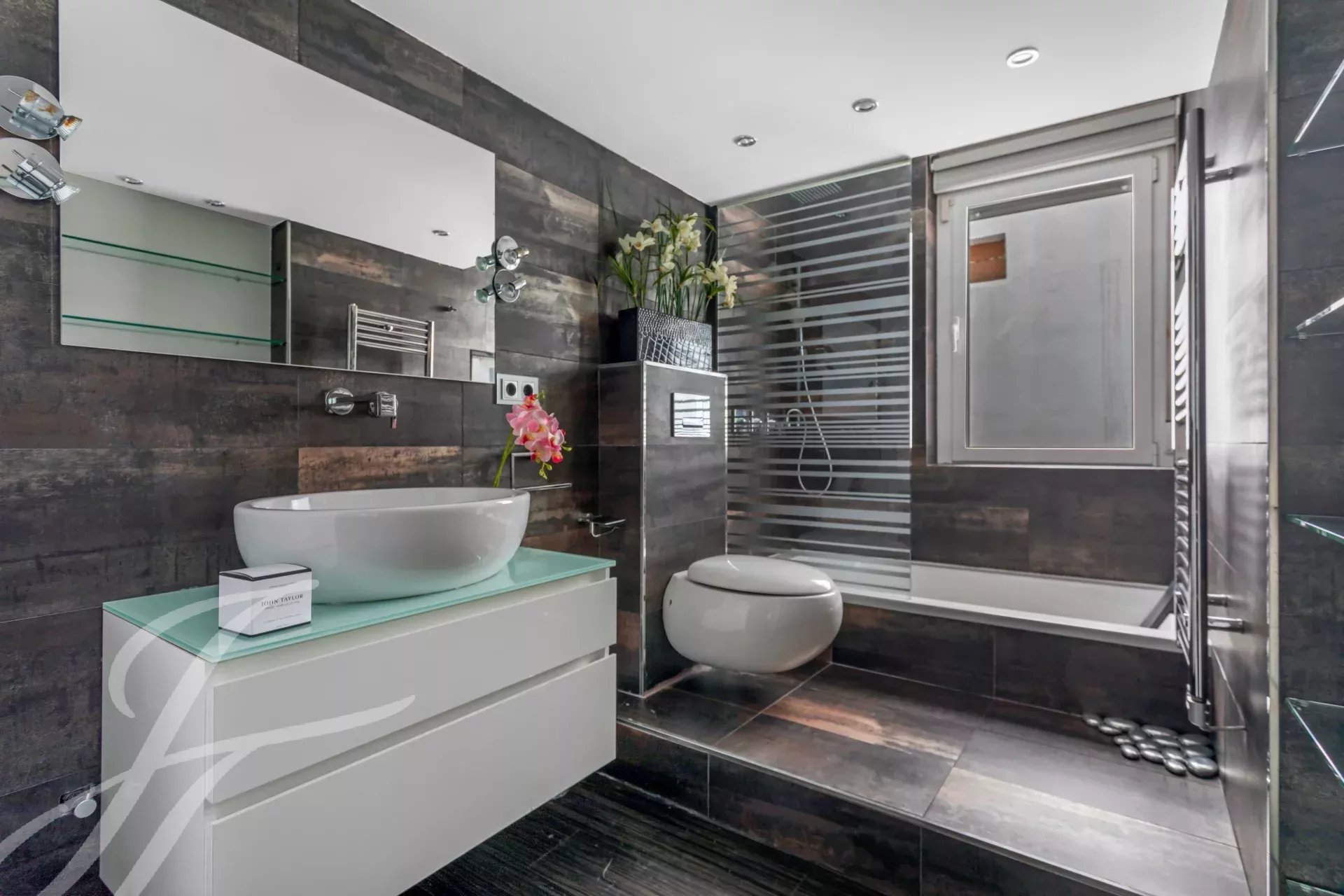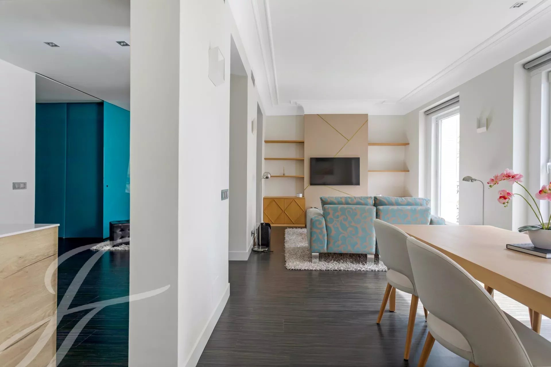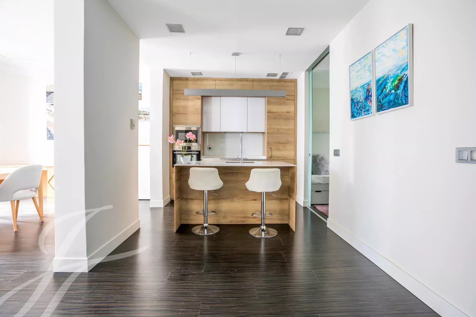 Il soggiorno-sala da pranzo, esposto a sud, gode di un'eccellente luce naturale e si integra perfettamente con la cucina, dotata di elettrodomestici di alta gamma. Questo ampio open space è ideale per riunioni e momenti indimenticabili con la famiglia e gli amici.