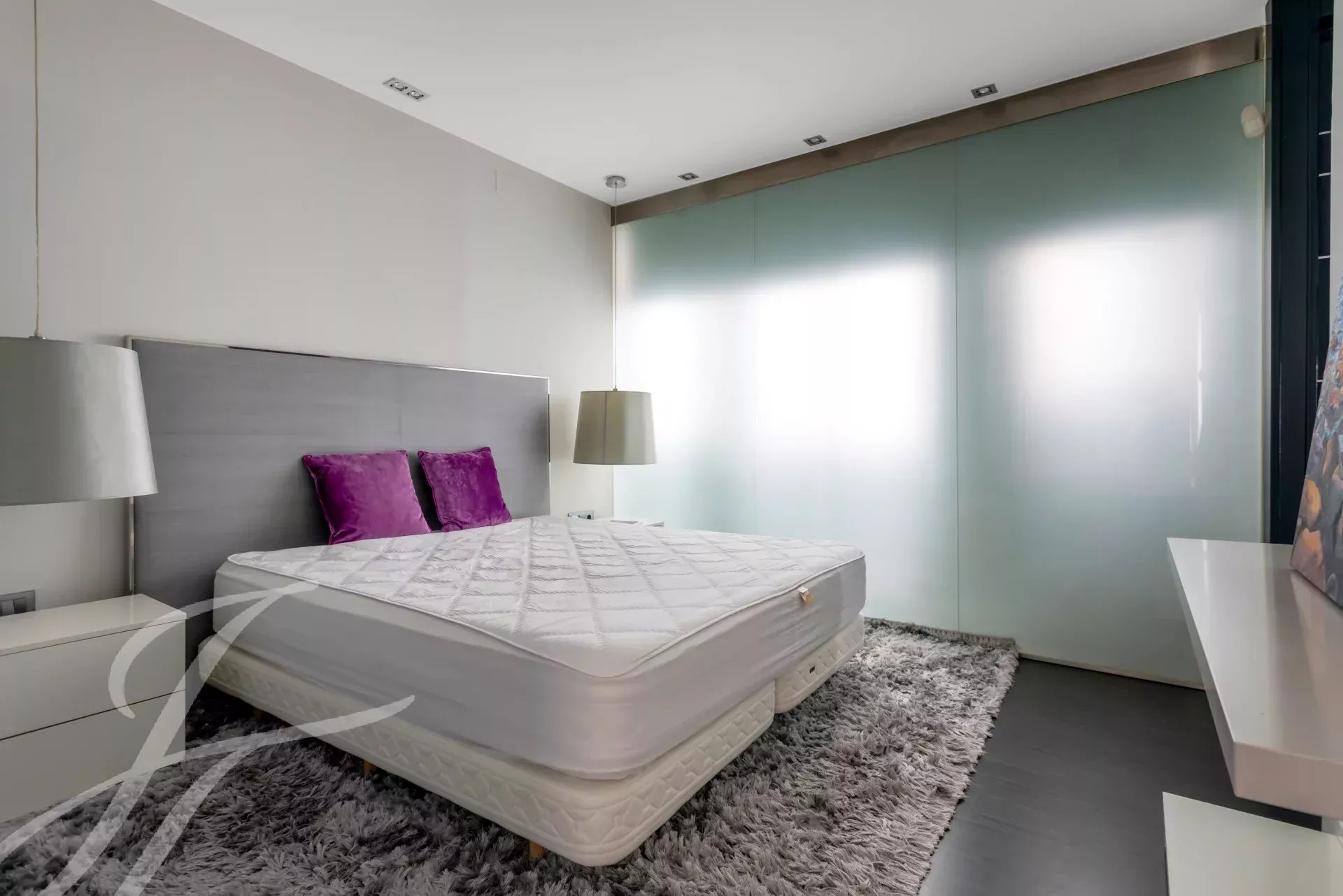 La camera da letto principale dispone di uno spazioso bagno privato, ampi armadi, uno spogliatoio e un ulteriore armadio per scarpe e borse. Inoltre, la proprietà dispone di altre due stanze collegate tra loro, perfette per le famiglie o per un'area di lavoro.