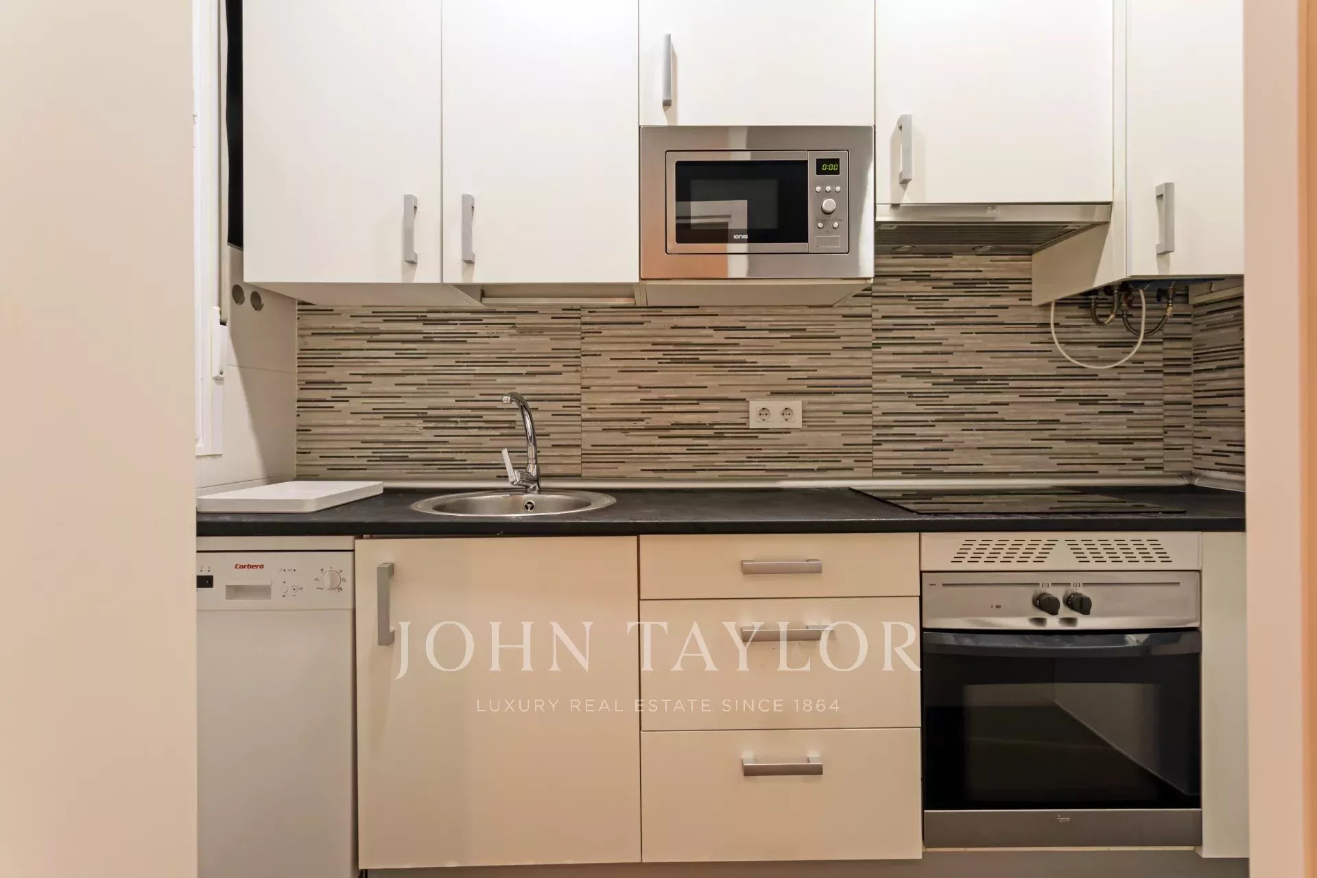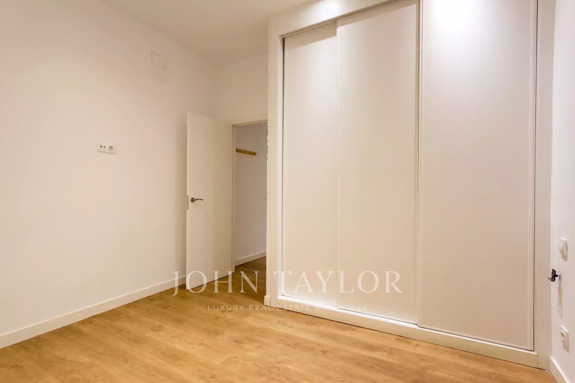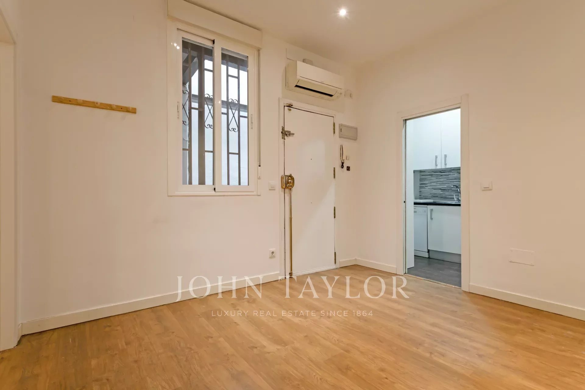 L'appartamento offre una camera da letto concepita come uno spazio sereno e confortevole, ideale per chi cerca un rifugio intimo nel cuore della città. La zona giorno, progettata con cura, crea l'ambiente perfetto per rilassarsi e godere della pace e della tranquillità di uno dei quartieri più affascinanti di Madrid.
