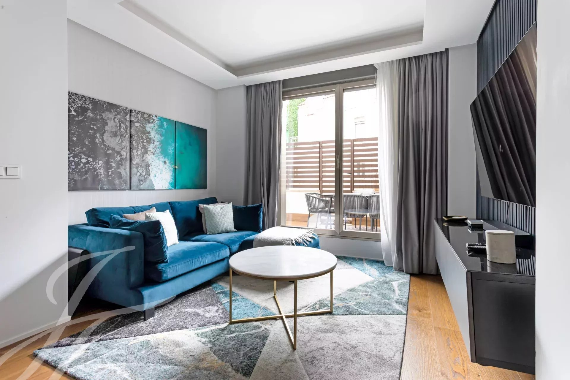 Appartamento arredato con terrazza privata in un edificio con piscina