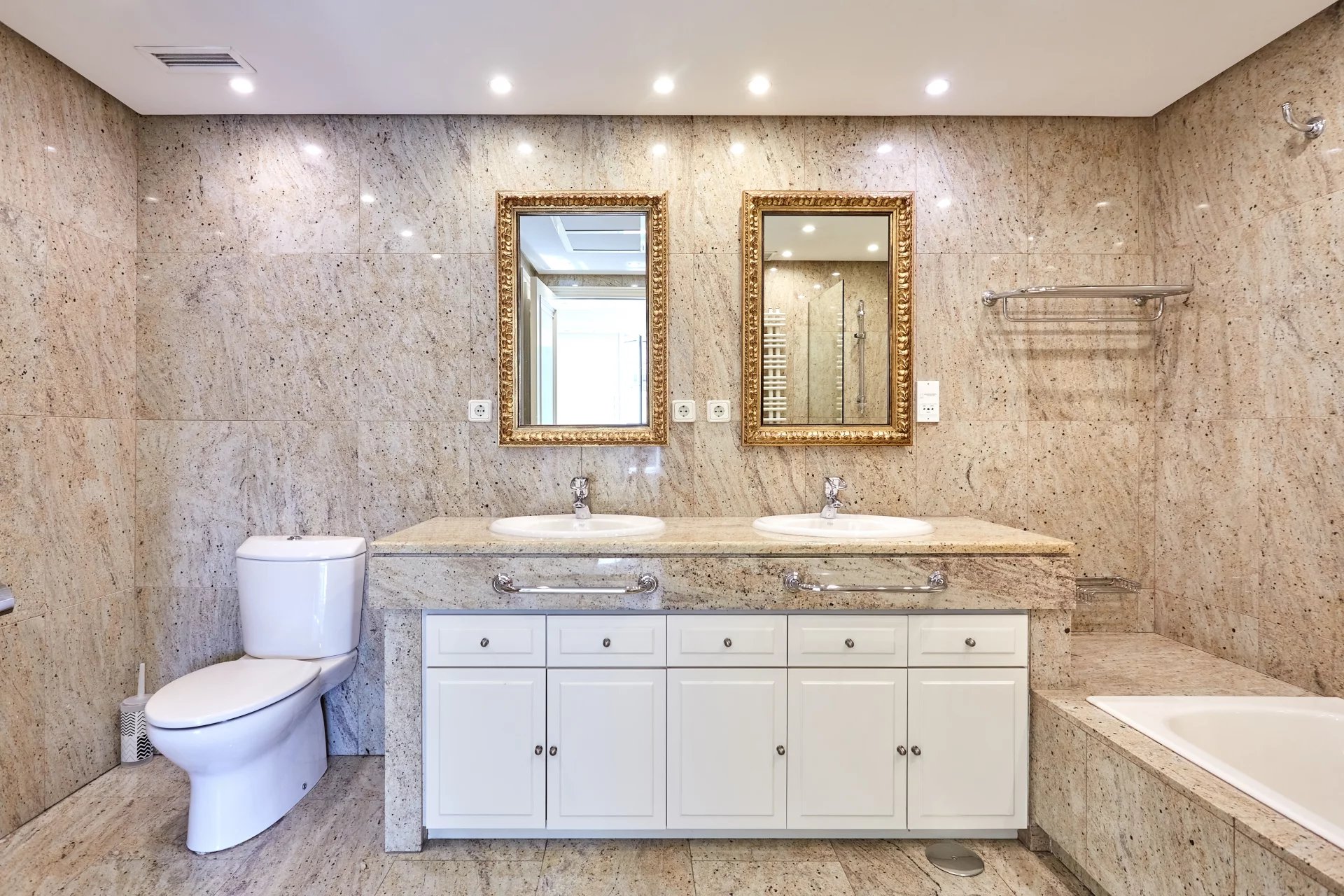 La zona notte è composta da tre ampie camere da letto, due delle quali con bagno privato e grandi finestre. La proprietà dispone di due casseforti e si distingue per l'ampia capacità di stoccaggio grazie al gran numero di armadi.