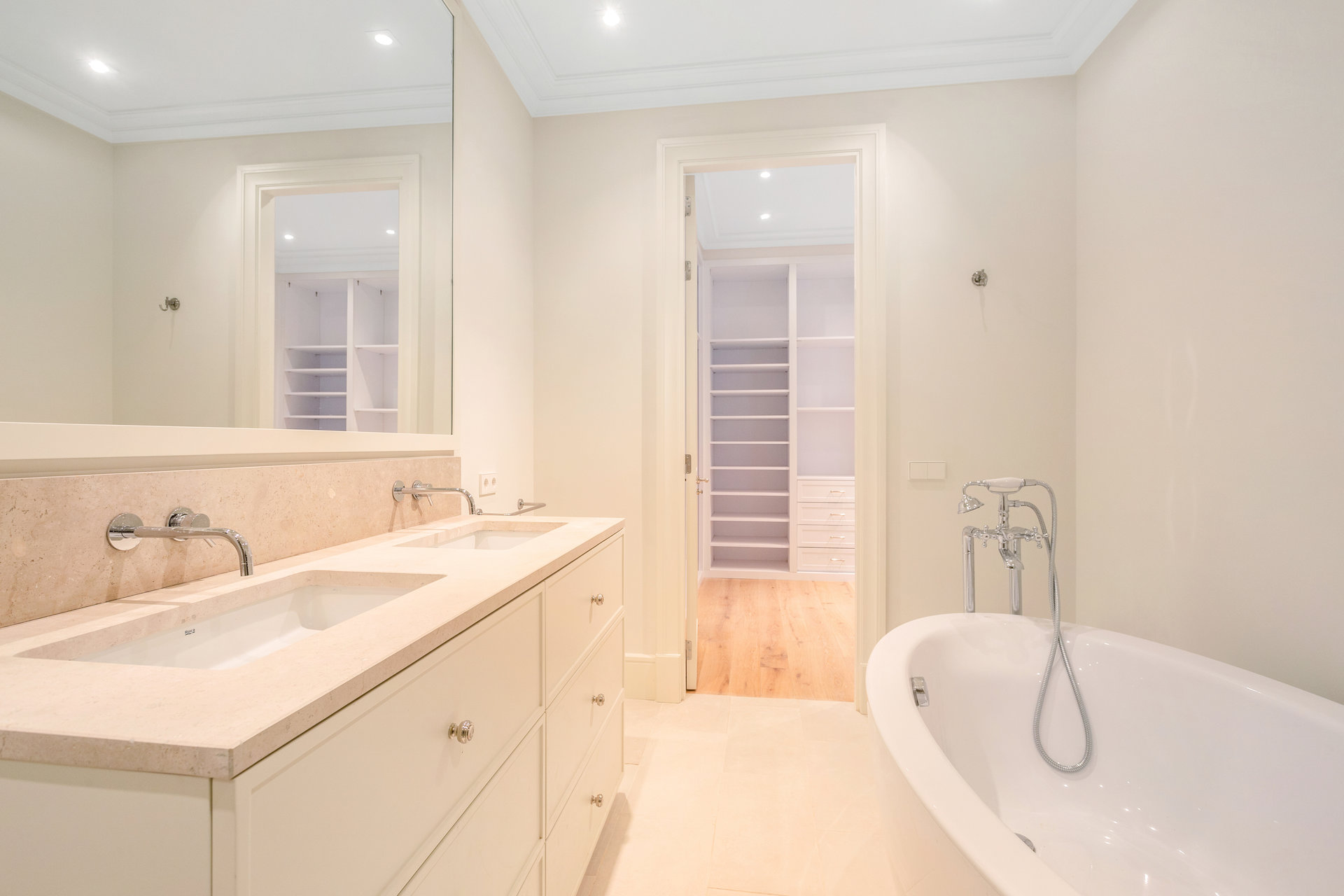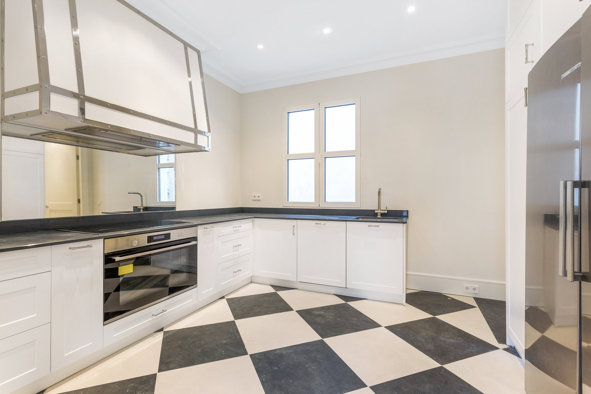 Situata al quinto piano esterno, la proprietà ha una superficie di 251 m² e si trova in un immobile sobrio, classico e di alta classe. L'ingresso conduce a un ampio soggiorno con due stanze, inondato di luce naturale grazie alle sue ampie finestre, una delle quali dotata di balcone. La sala da pranzo, indipendente ed elegante, è situata accanto alla cucina.
