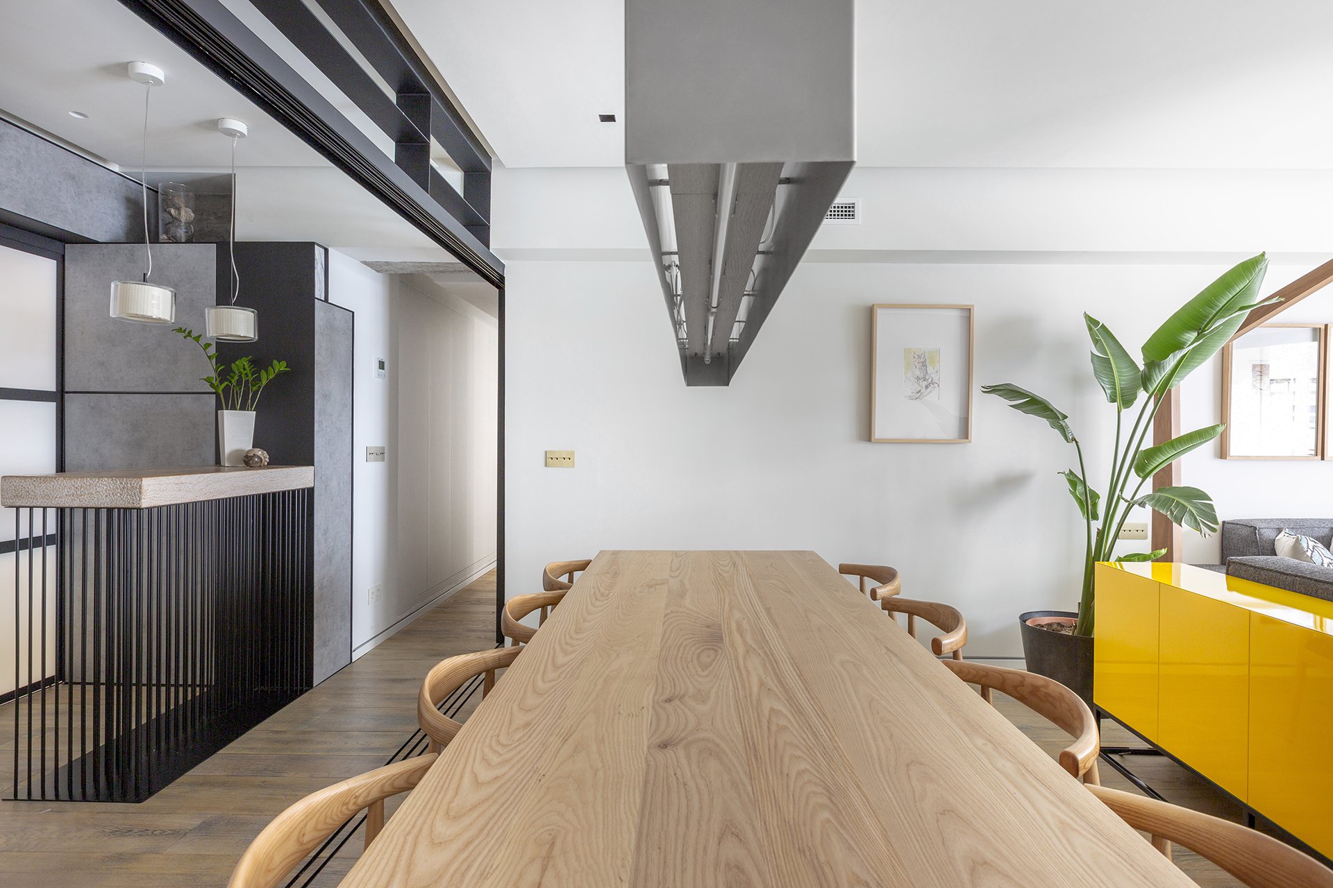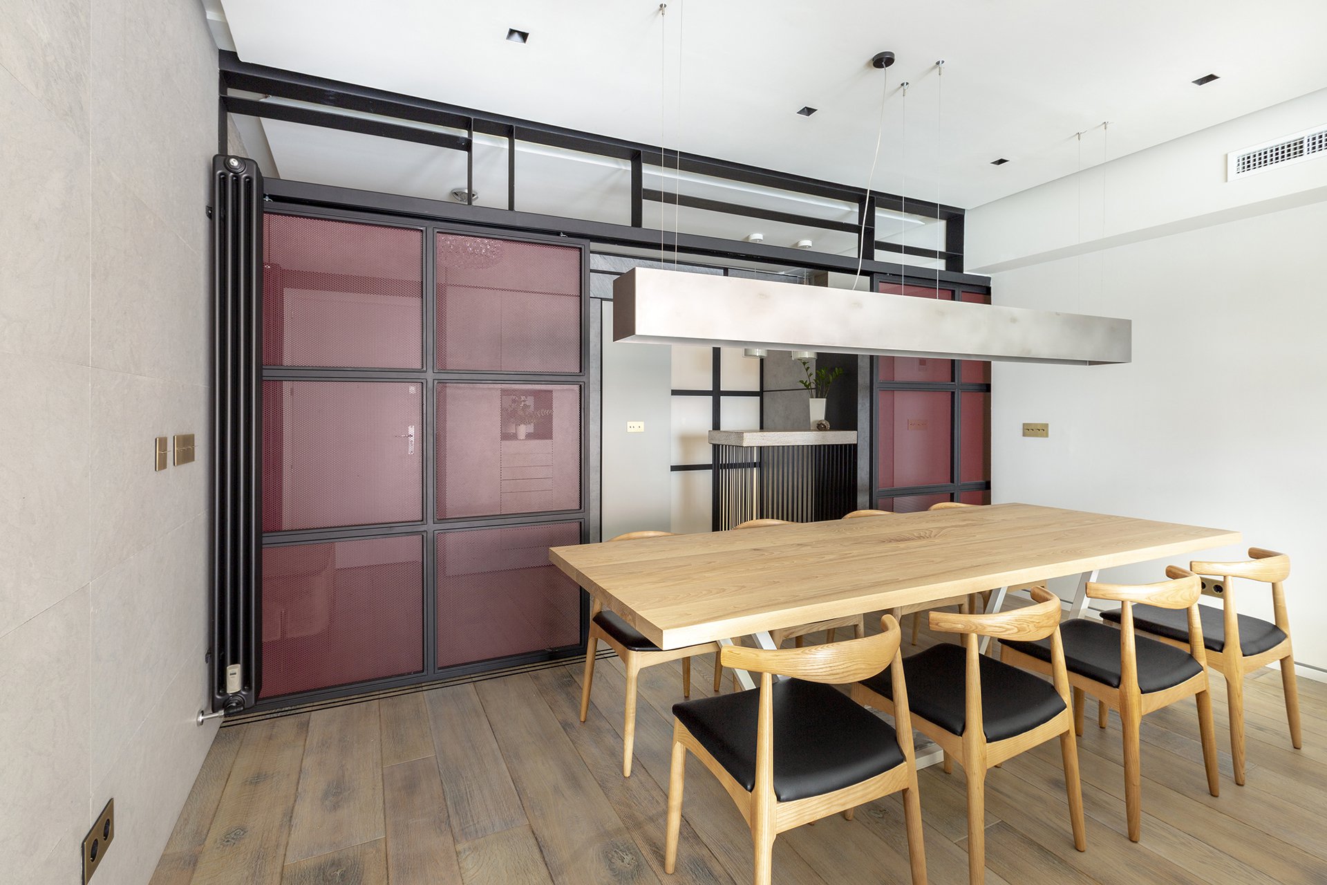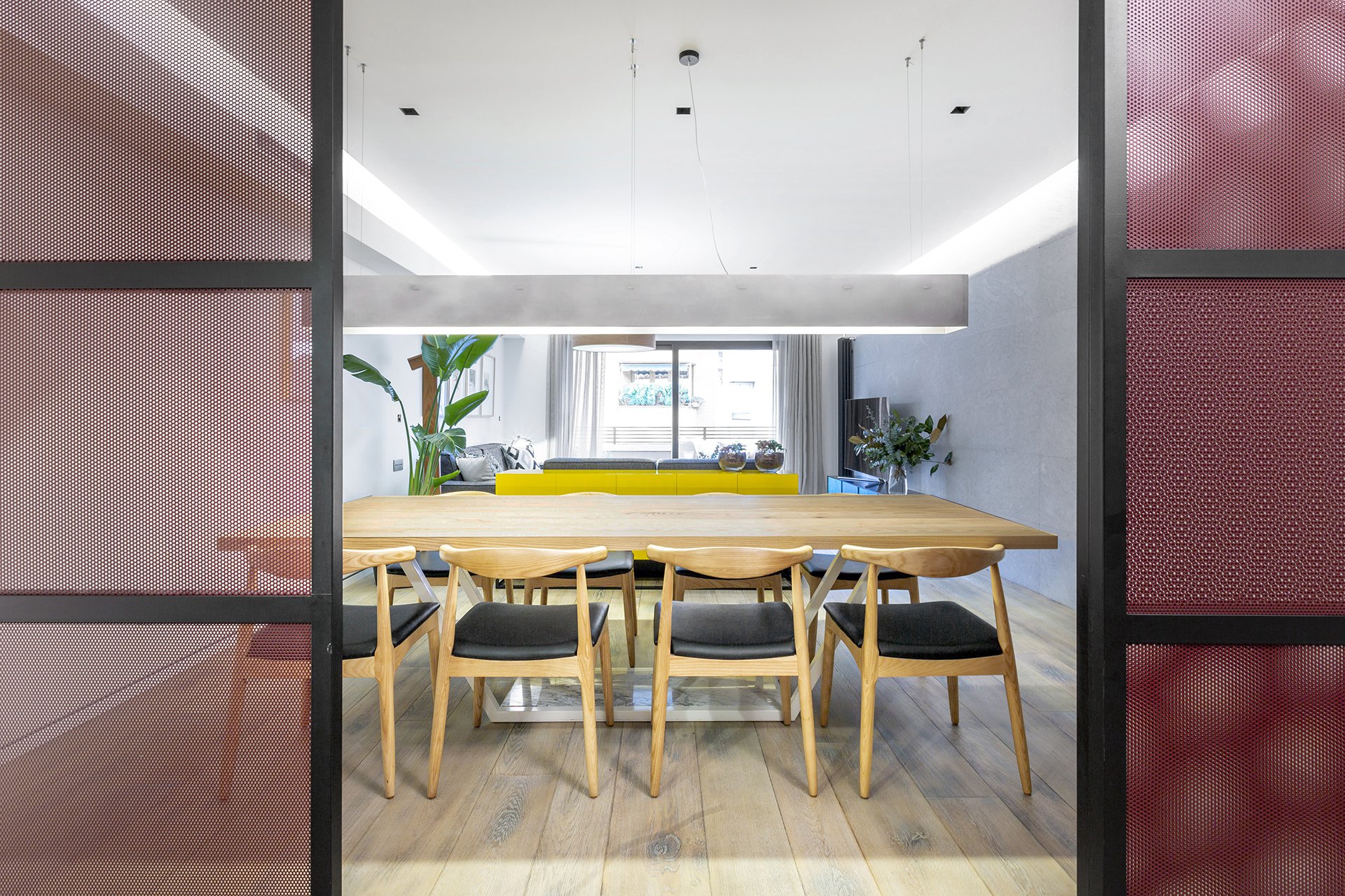 Accanto alla cucina, completamente attrezzata con elettrodomestici di alta qualità, abbiamo una camera di servizio con il proprio bagno e ingresso indipendente. Il soggiorno/pranzo, di grandi dimensioni, può essere separato tramite delle pareti scorrevoli in metallo con lamiera microperforata e ha anche accesso alla terrazza a ovest tramite una grande finestra.