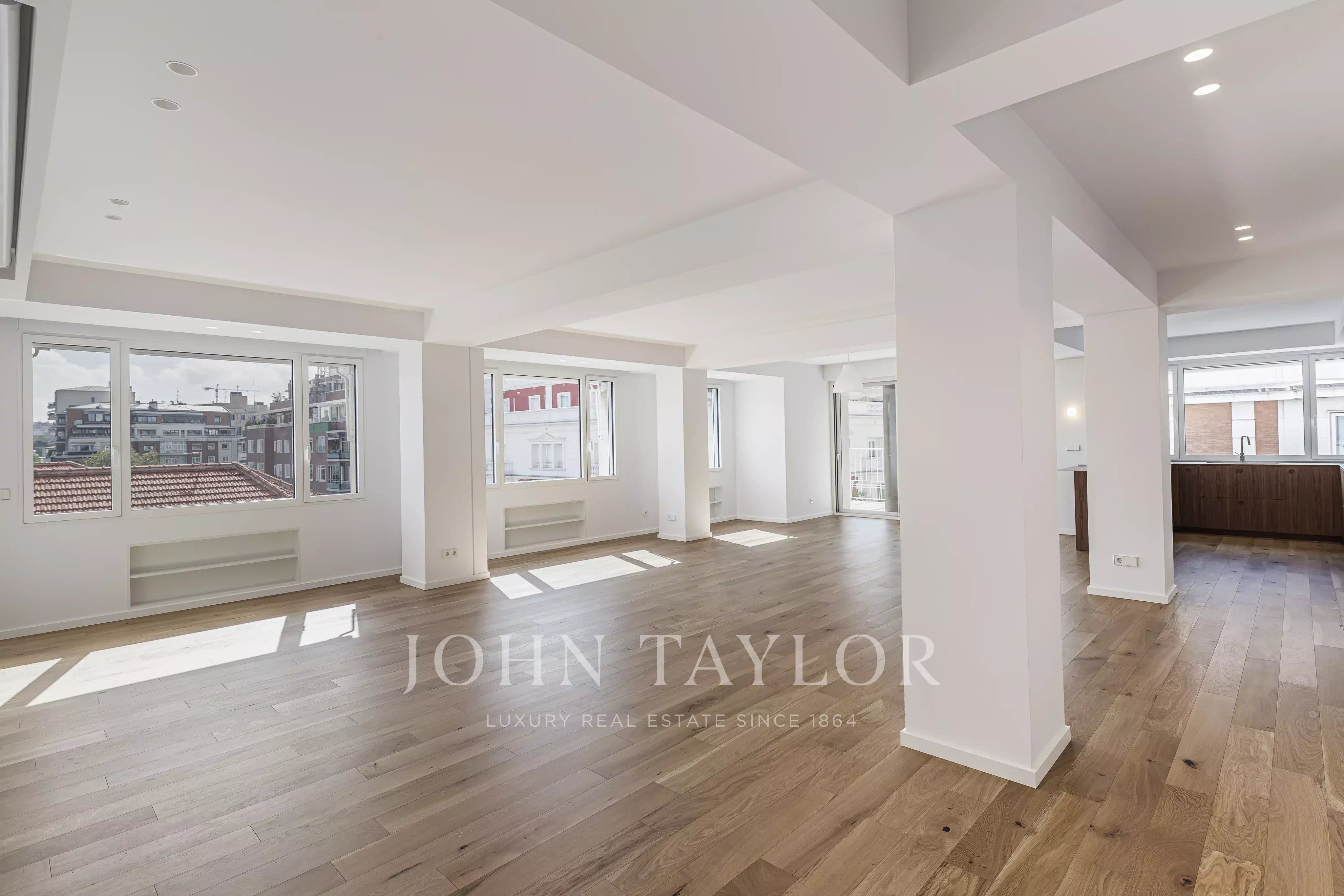 L'edificio dispone di portineria e l'appartamento include un posto auto nel edificio stesso, un valore distintivo nella zona. Viene affittato senza arredamento, permettendo di adattarlo completamente a uno stile di vita esigente e contemporaneo.