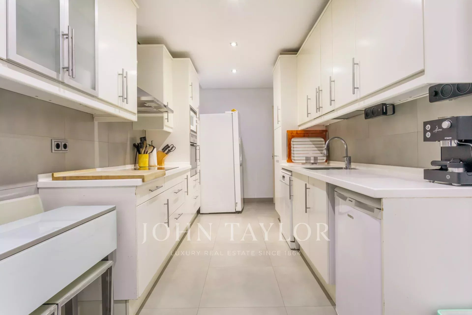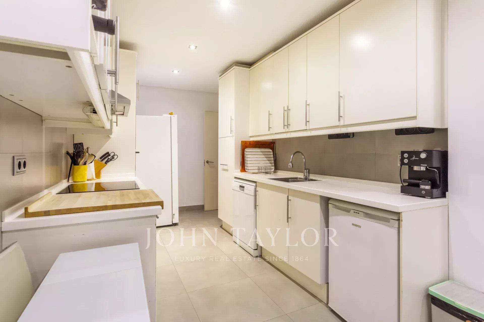 Il soggiorno, spazioso e accogliente, invita a rilassarsi o a condividere momenti di svago, mentre la cucina, moderna e funzionale, è dotata di elettrodomestici di alta gamma (forno, microonde e lavastoviglie) per facilitare la vita quotidiana.