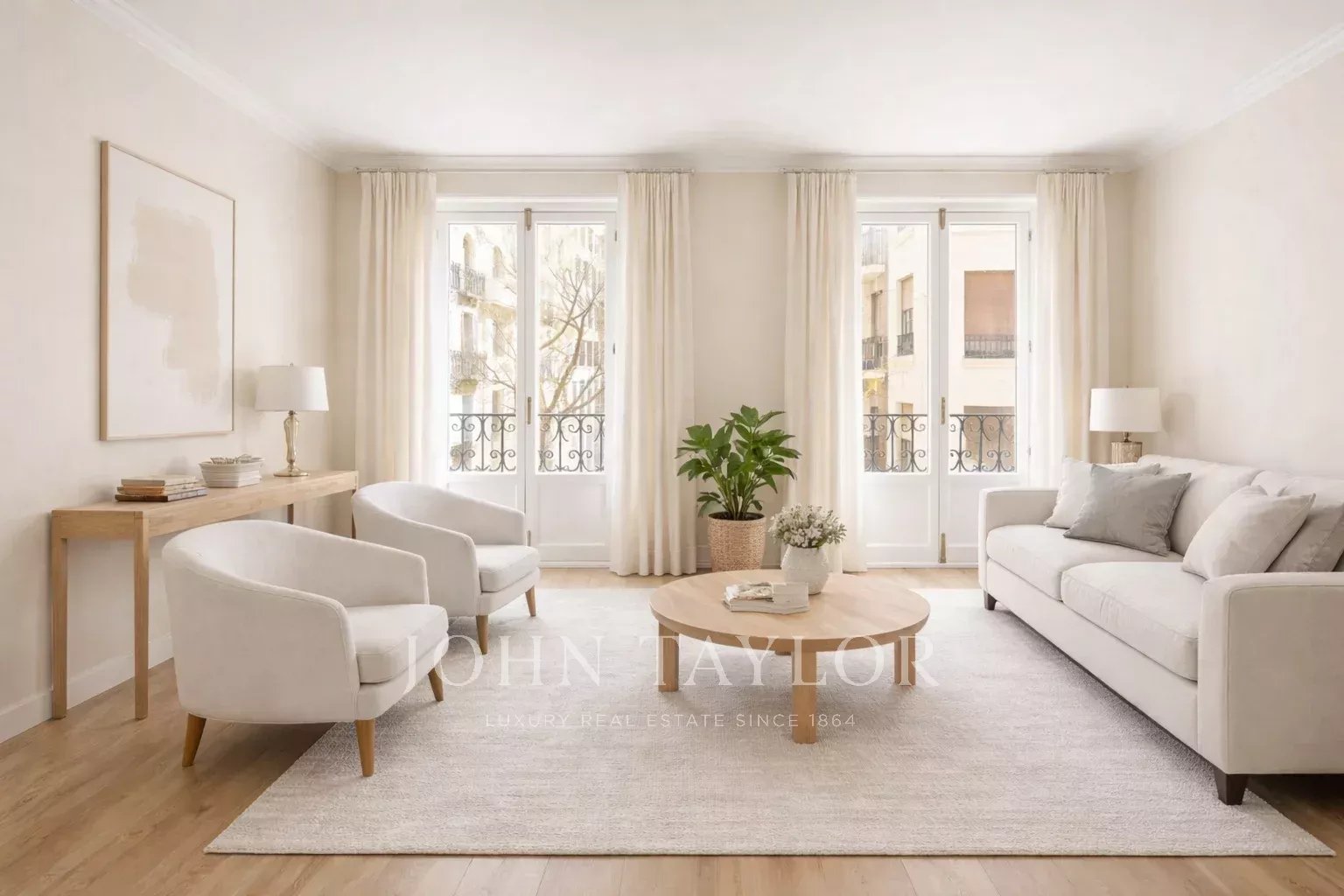 Questo elegante appartamento si trova in una strada tranquilla e luminosa a pochi metri dalla Glorieta de Bilbao, in uno dei quartieri più vivaci e ambiti di Madrid.