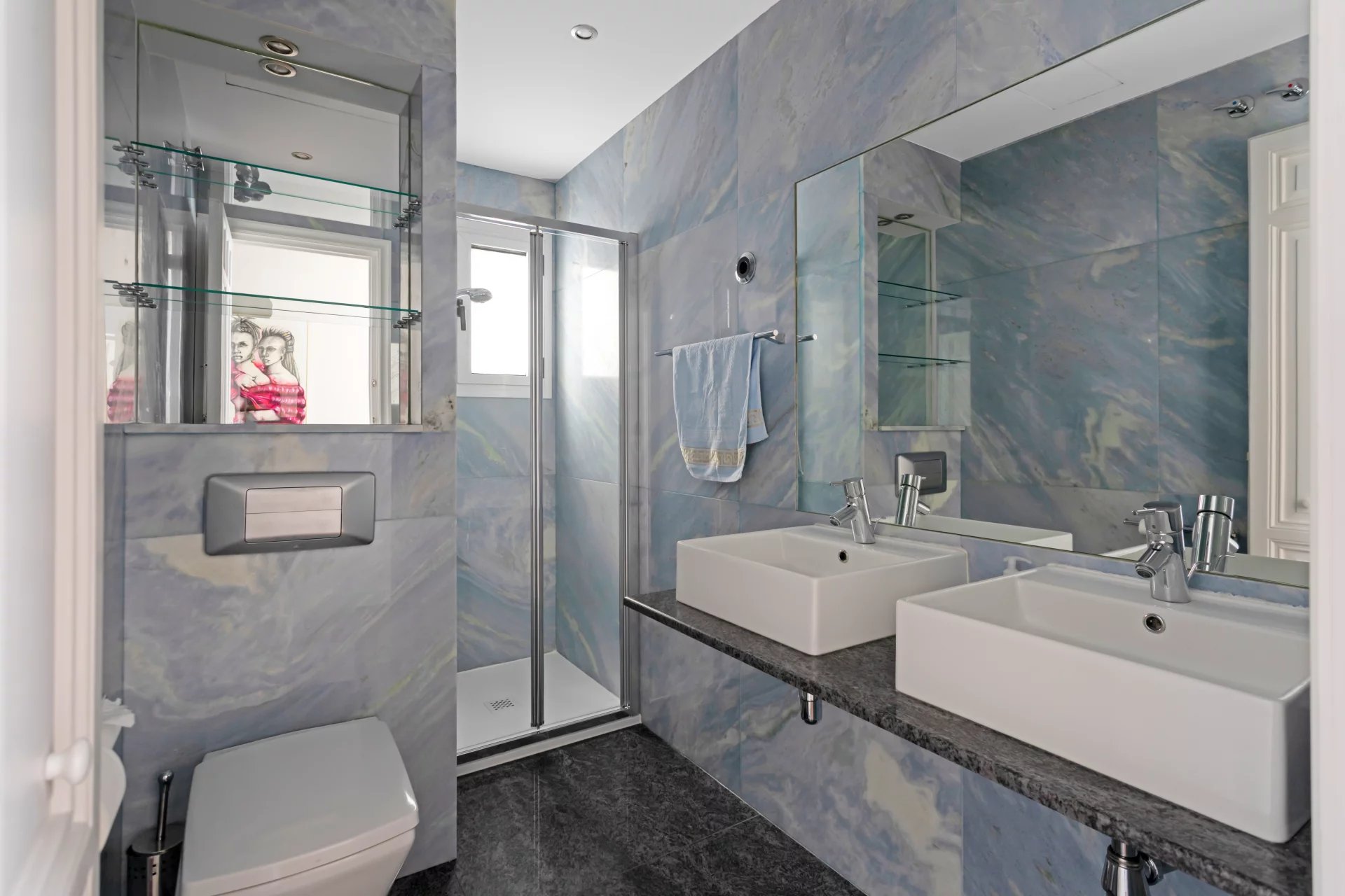 La quarta camera da letto è stata trasformata in uno spazioso spogliatoio ma può essere convertita in un letto matrimoniale. La cucina è completamente attrezzata e si trova accanto a una seconda sala da pranzo e a un bagno per gli ospiti.