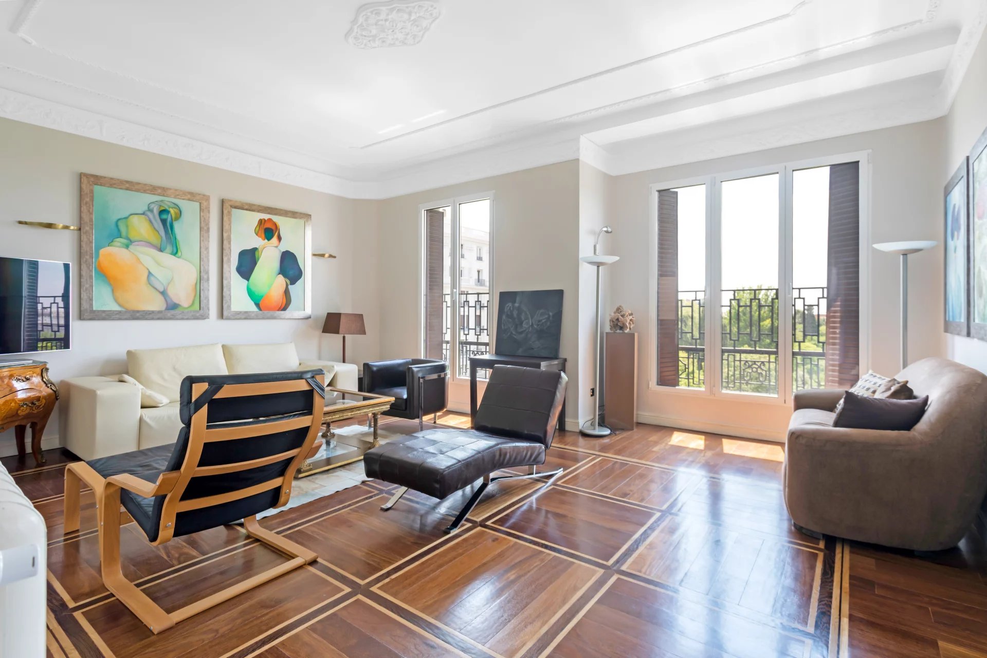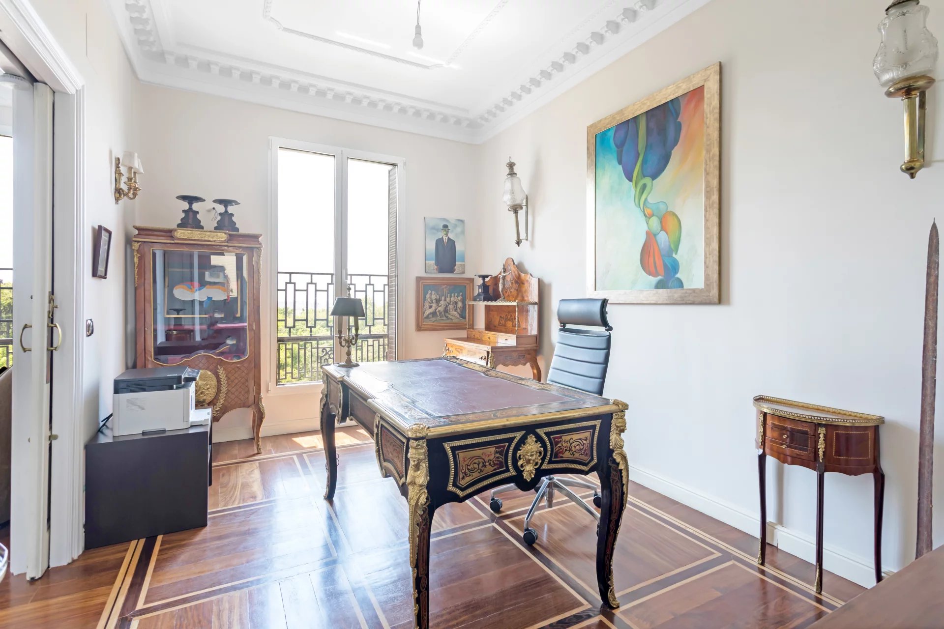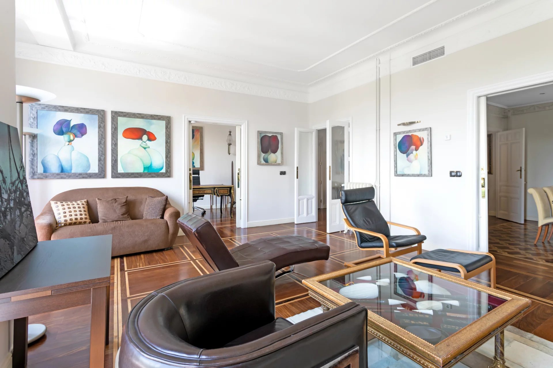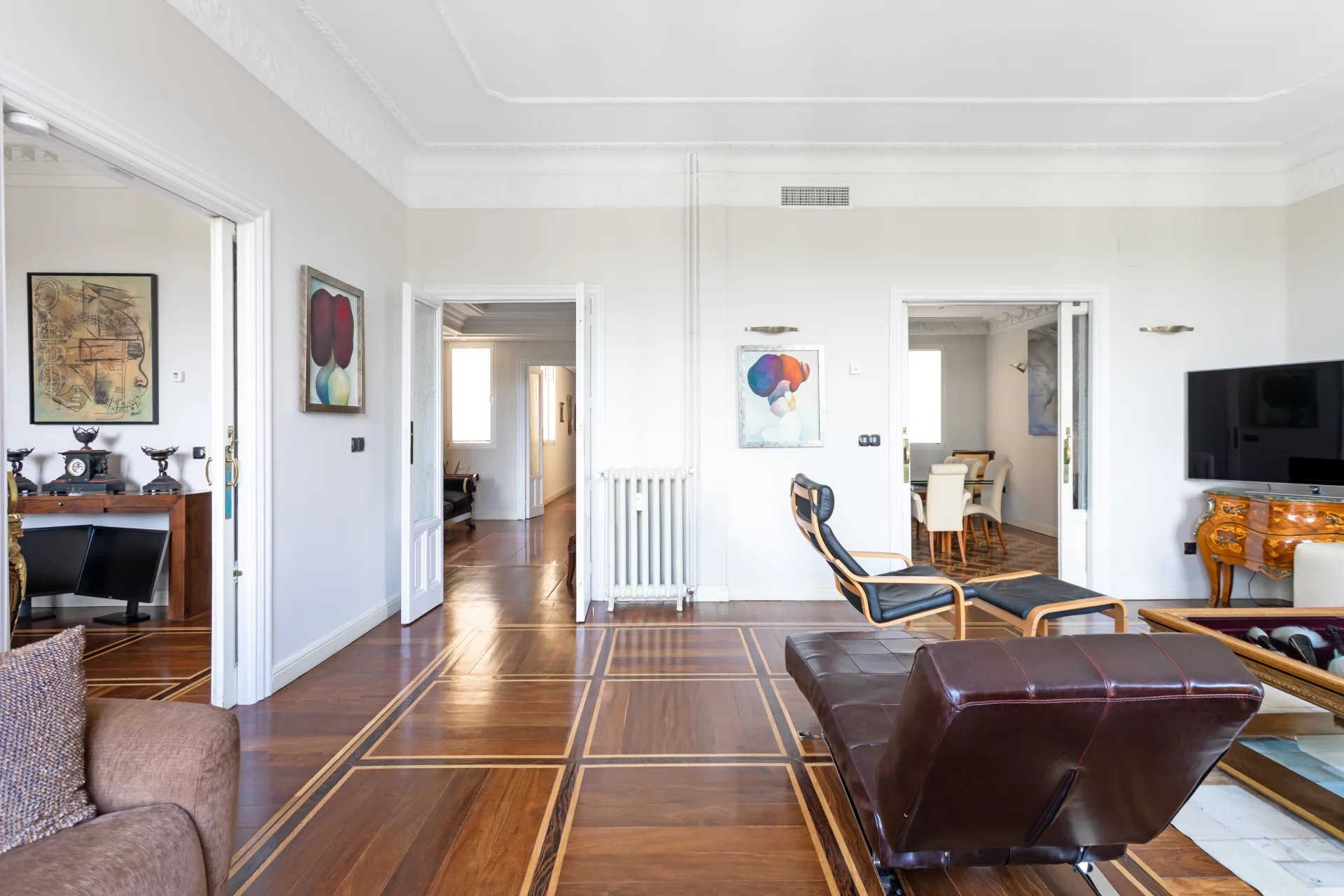 Il doppio soggiorno e l'ufficio sono inondati di luce naturale grazie ai tre balconi che offrono una vista unica sul Giardino Botanico e all'orientamento a sud.