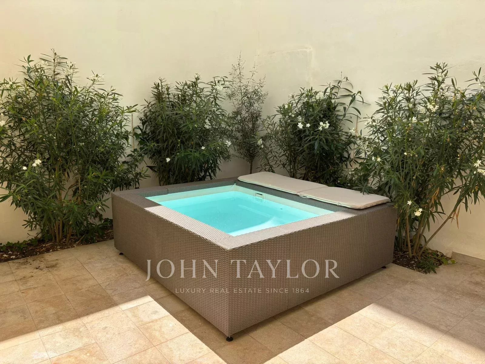 Questo moderno appartamento al piano terra è stato completamente ristrutturato nel 2025 e si trova a pochi passi dal mercato di Santa Catalina, dal Tennis Club e dal centro storico di Palma. Con circa 150 m² di spazio abitativo, presenta un soggiorno e una zona pranzo a pianta aperta con una cucina di design completamente attrezzata (Bora, Siemens), due camere matrimoniali, due bagni e uno studio. La terrazza di circa 40 m² invita a vivere all'aperto nel cuore della città e comprende una piccola piscina, ideale per rinfrescarsi nelle giornate più calde. L'appartamento viene fornito completamente arredato ed è rifinito con un elevato standard, con aria condizionata, finestre con doppi vetri e arredi su misura in tutto l'appartamento - un'opportunità di affitto esclusiva in uno dei quartieri più ricercati di Palma. Periodo minimo di affitto: 6 mesi.