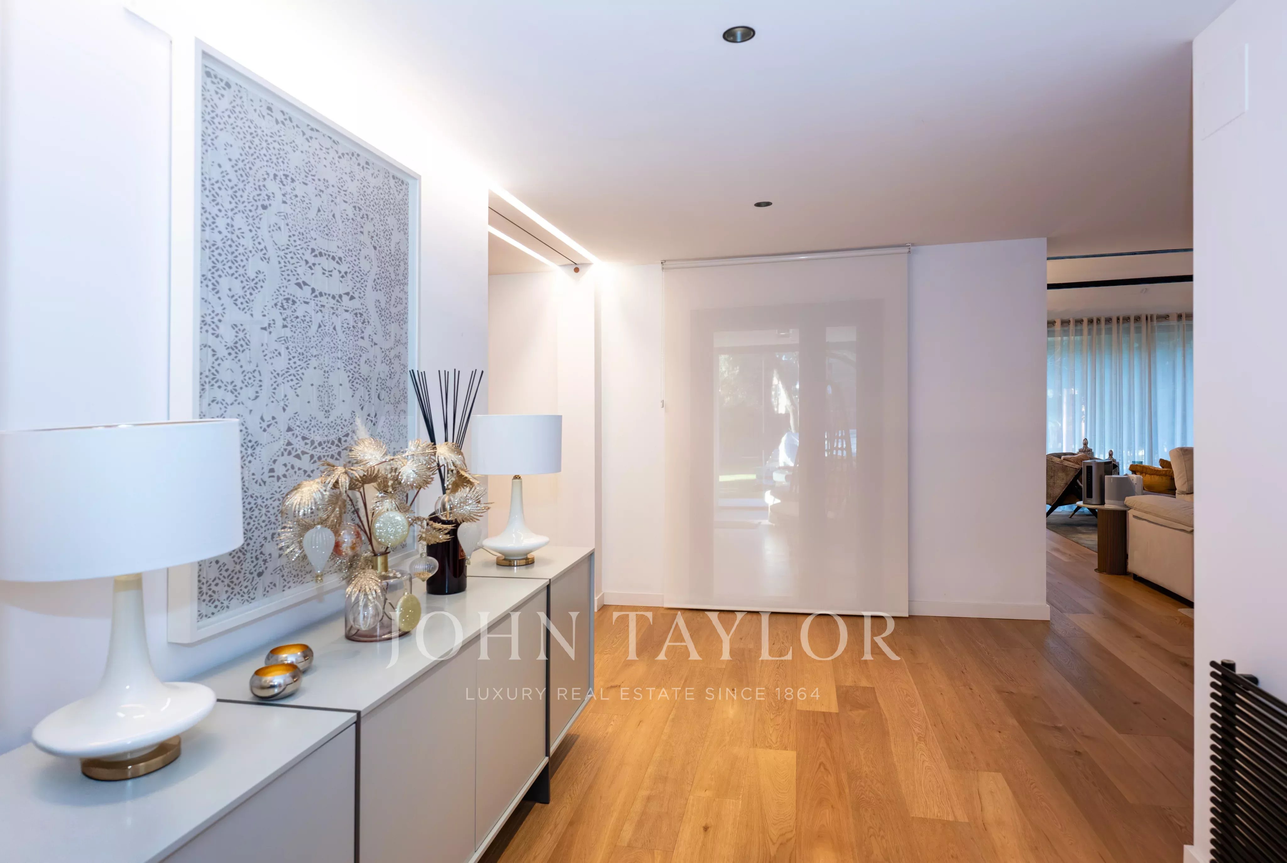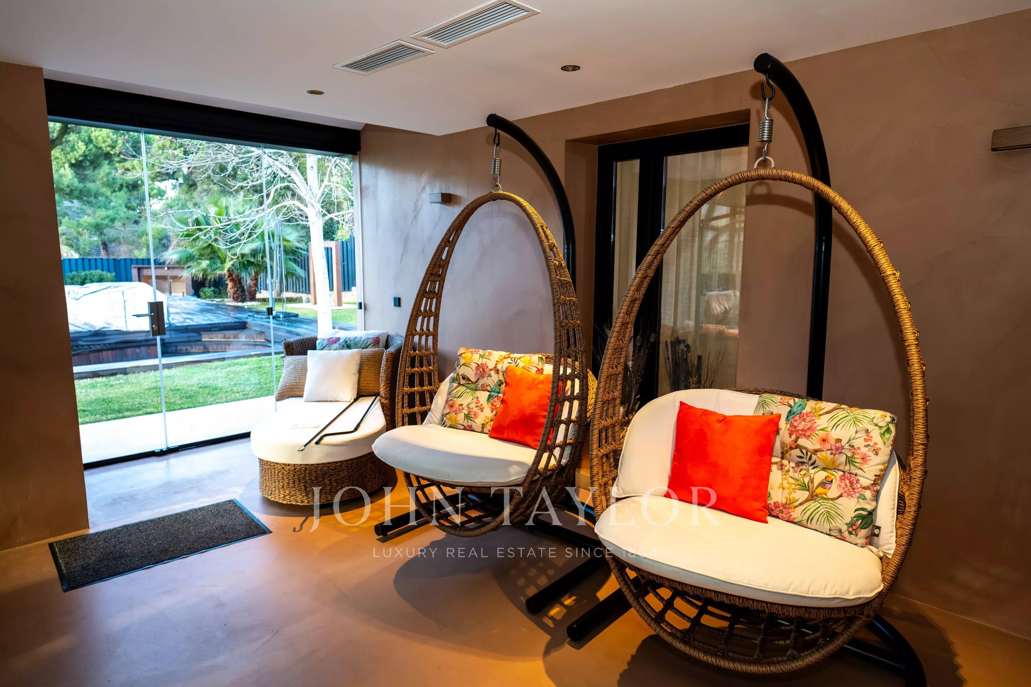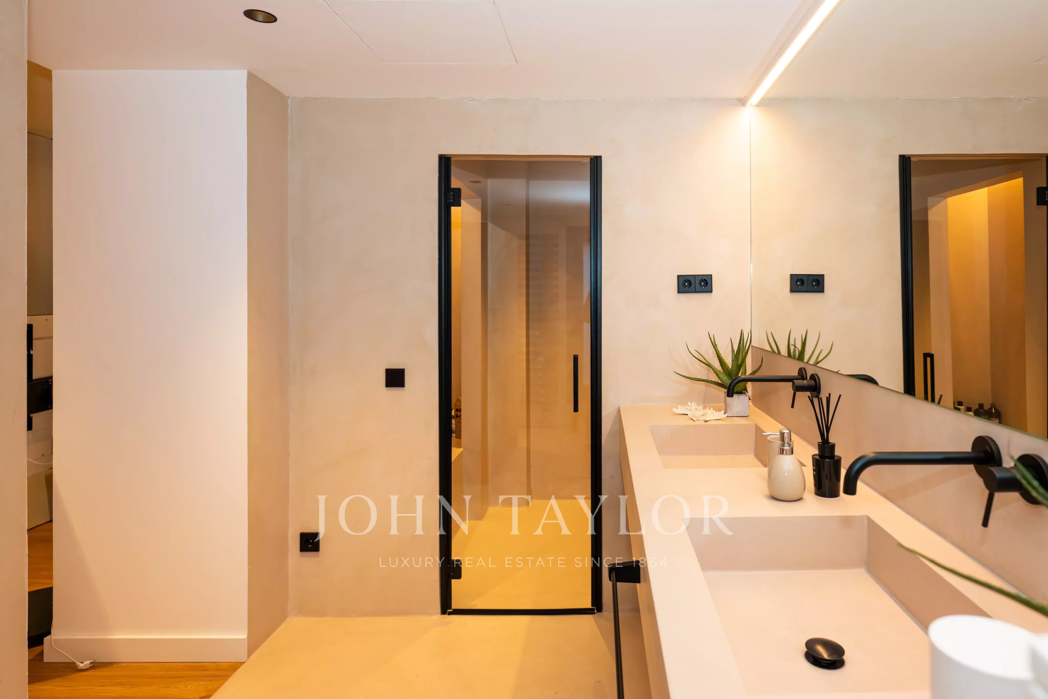 La proprietà dispone di diverse camere da letto, alcune con bagno en suite, oltre a uno studio, zona di servizio e ulteriori spazi versatili. Il massimo comfort è garantito tutto l’anno grazie al riscaldamento e all’aria condizionata in tutti gli ambienti.