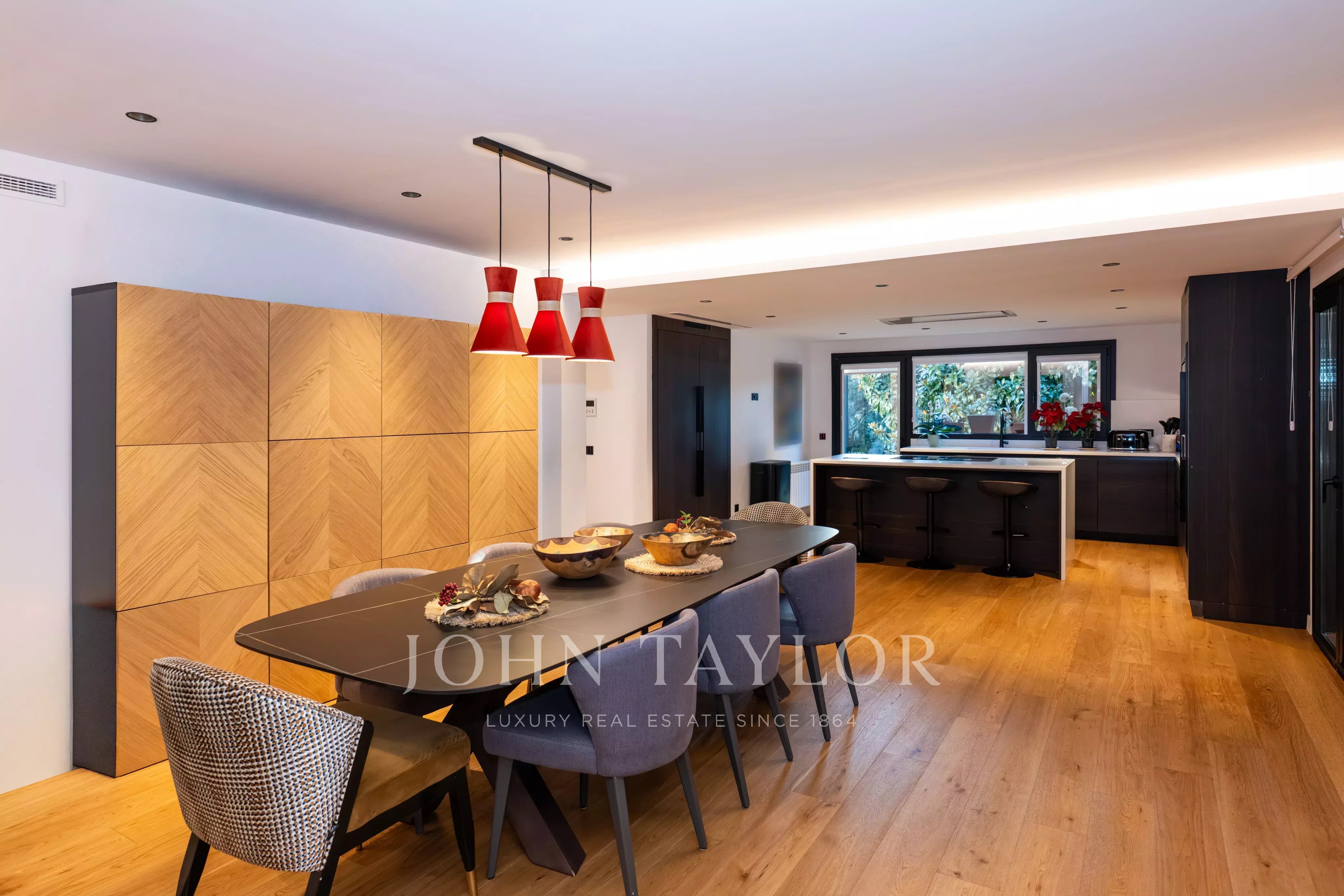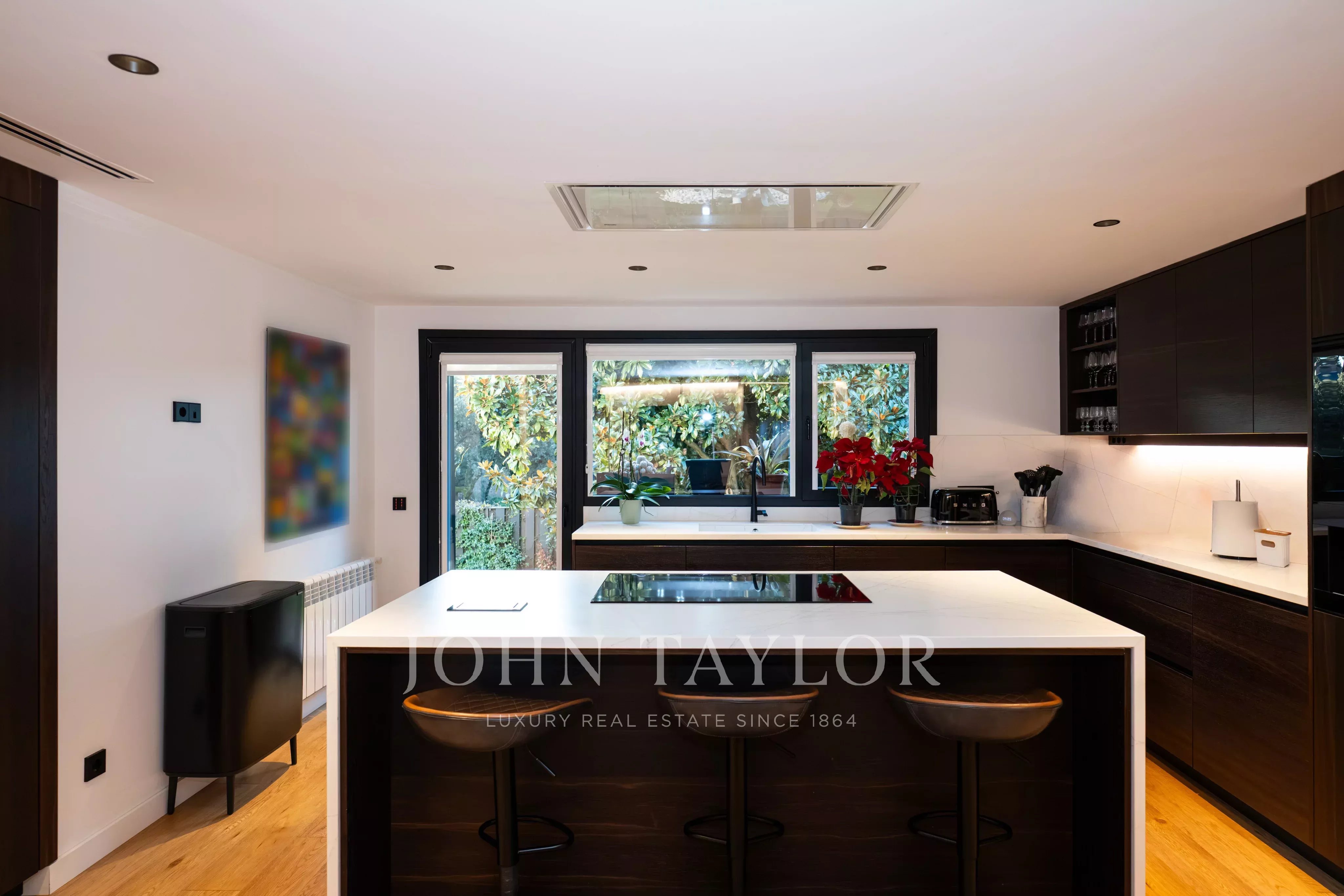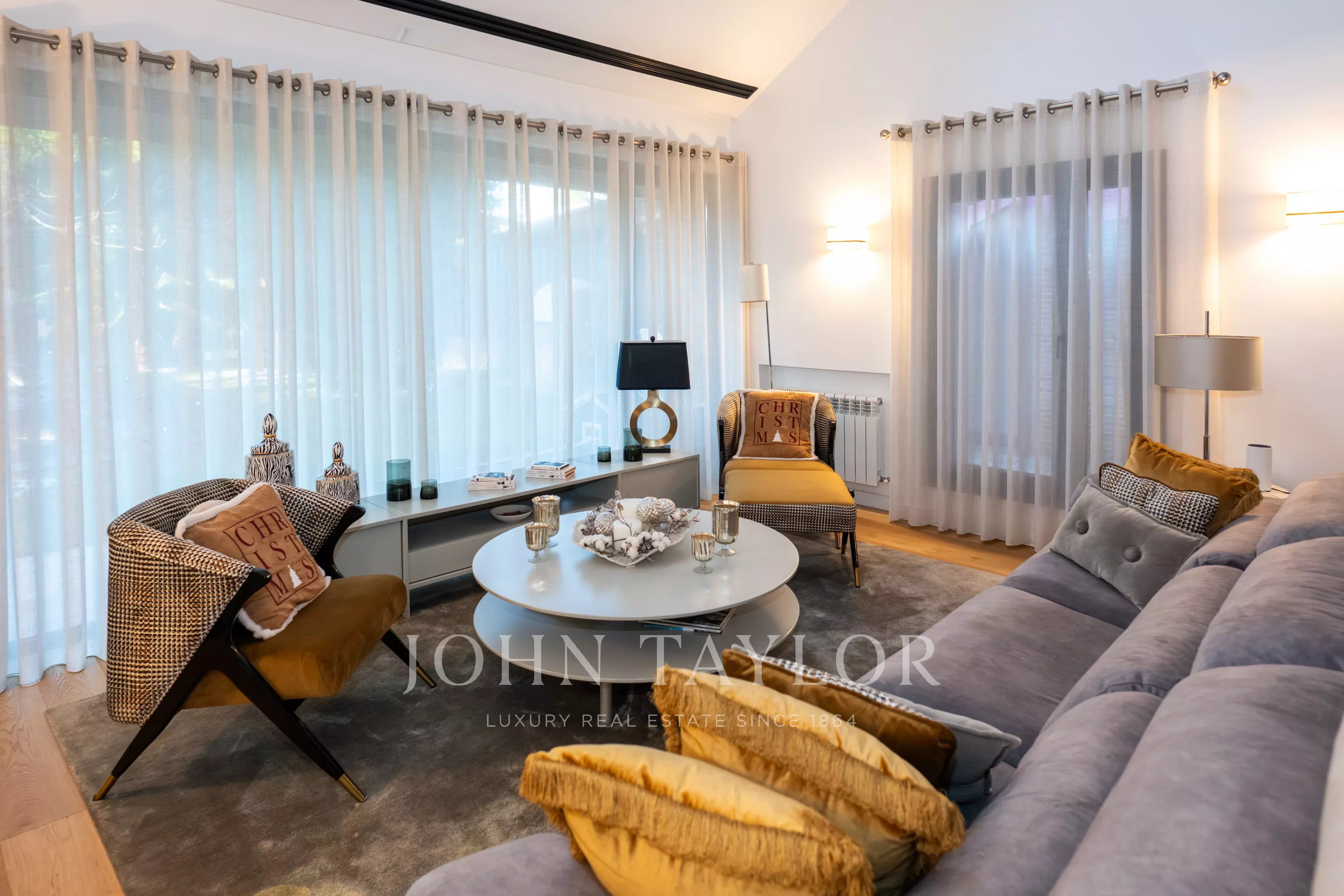 La proprietà dispone di diverse camere da letto, alcune con bagno en suite, oltre a uno studio, zona di servizio e ulteriori spazi versatili. Il massimo comfort è garantito tutto l’anno grazie al riscaldamento e all’aria condizionata in tutti gli ambienti.