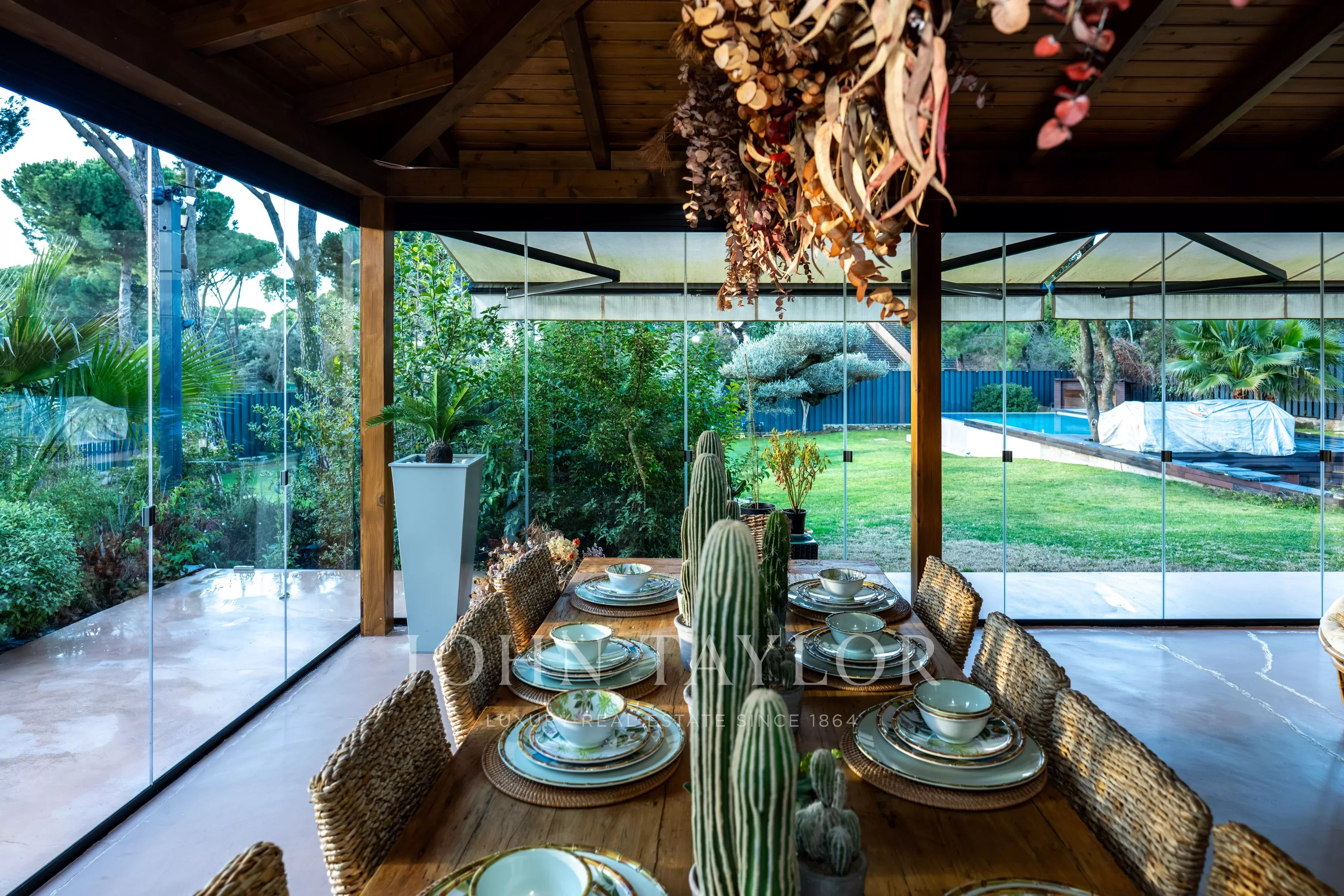 Gli spazi esterni rappresentano una vera oasi privata, con giardino maturo, piscina con jacuzzi, area barbecue e zone dedicate al relax e al benessere. La villa si trova all’interno di un complesso residenziale privato con sicurezza 24 ore su 24, ampie aree verdi e ottimi collegamenti con il centro di Madrid.
