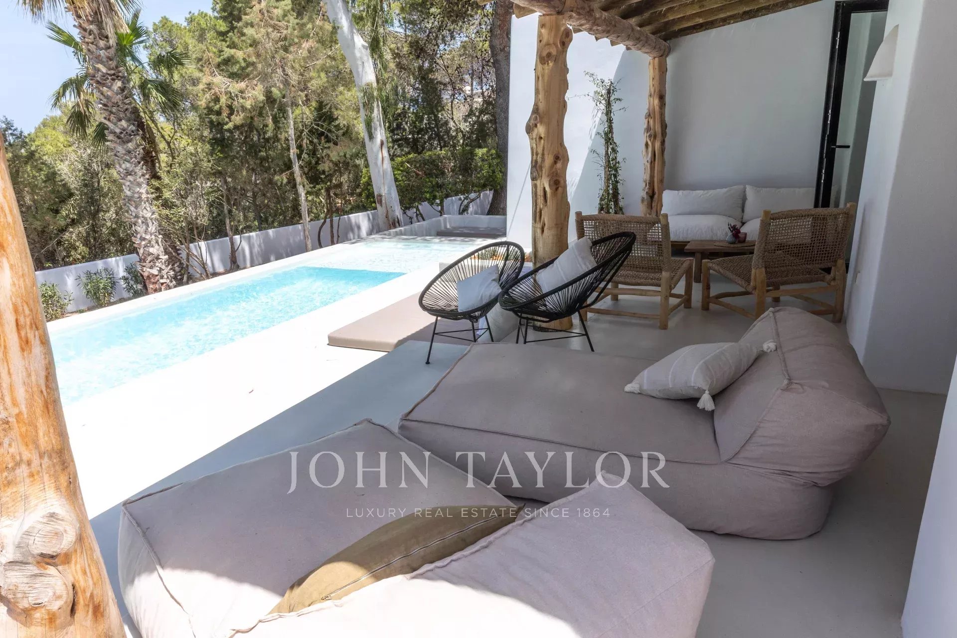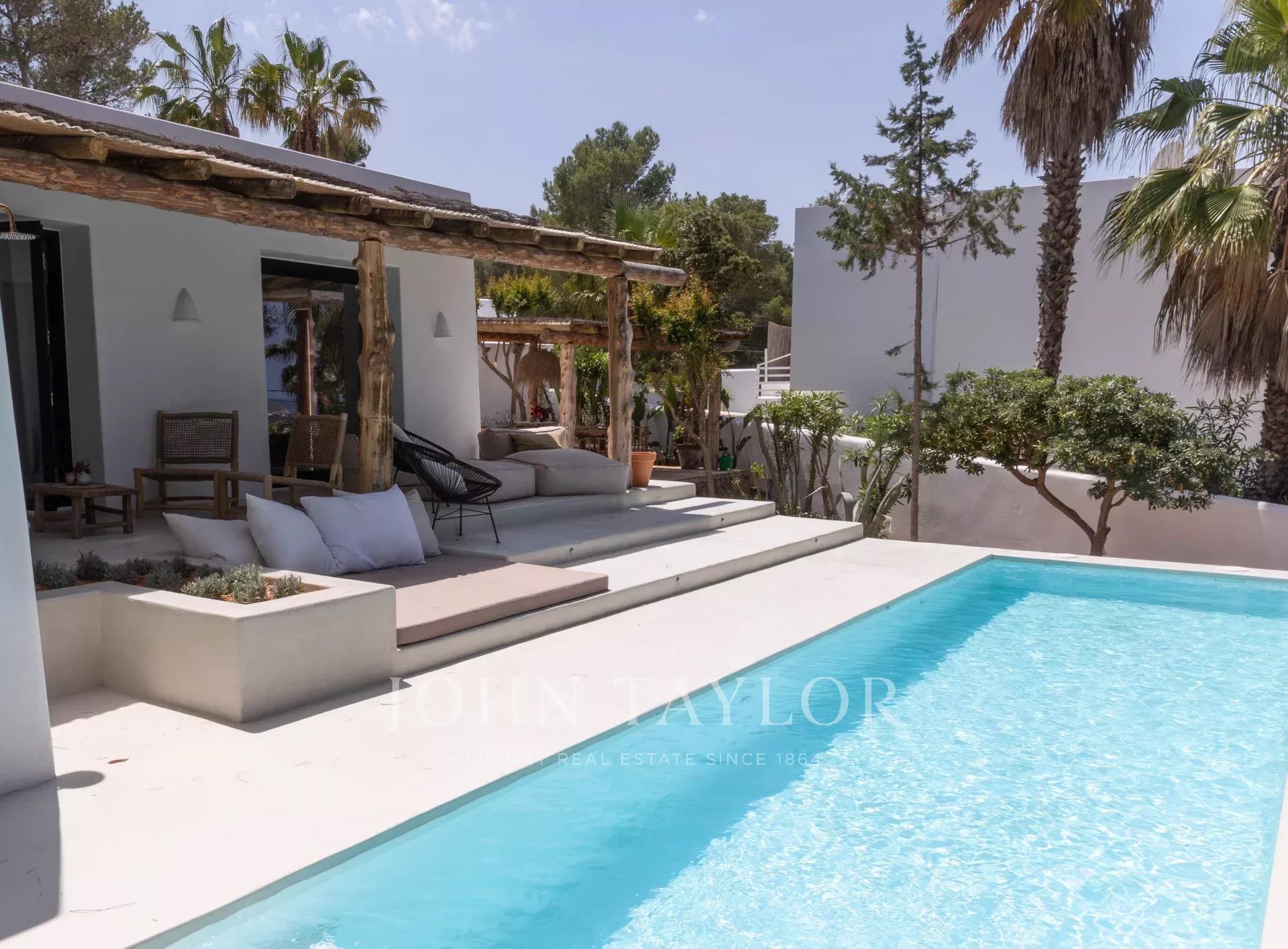 La villa vanta anche una piscina cristallina, che invita a fare un tuffo immergendosi nell'atmosfera mediterranea. Ogni aspetto di questa proprietà è stato progettato pensando al vostro comfort e al lusso, rendendola il rifugio perfetto a Cala Comte.