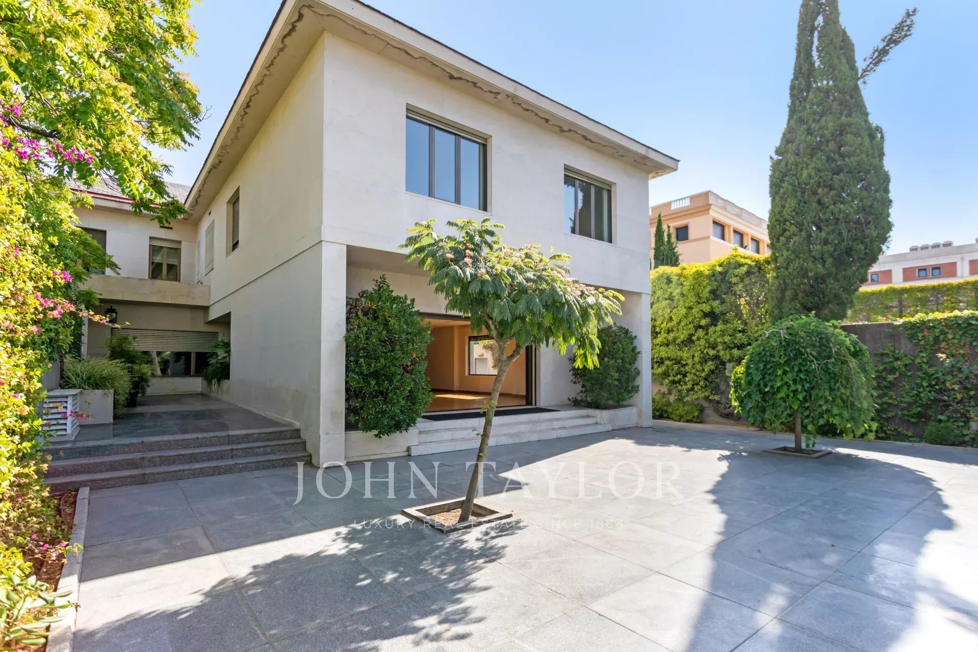 La casa principale ha una superficie di 850 m² ed è costruita su tre livelli: piano principale con accesso diretto al portico, giardino a due livelli con paesaggio consolidato. Il piano dedicato alla zona sociale è composto da un ampio soggiorno esposto a sud, un salotto, una biblioteca, una sala da pranzo con accesso diretto alla zona cucina e ai servizi igienici. Servizi igienici per gli ospiti.