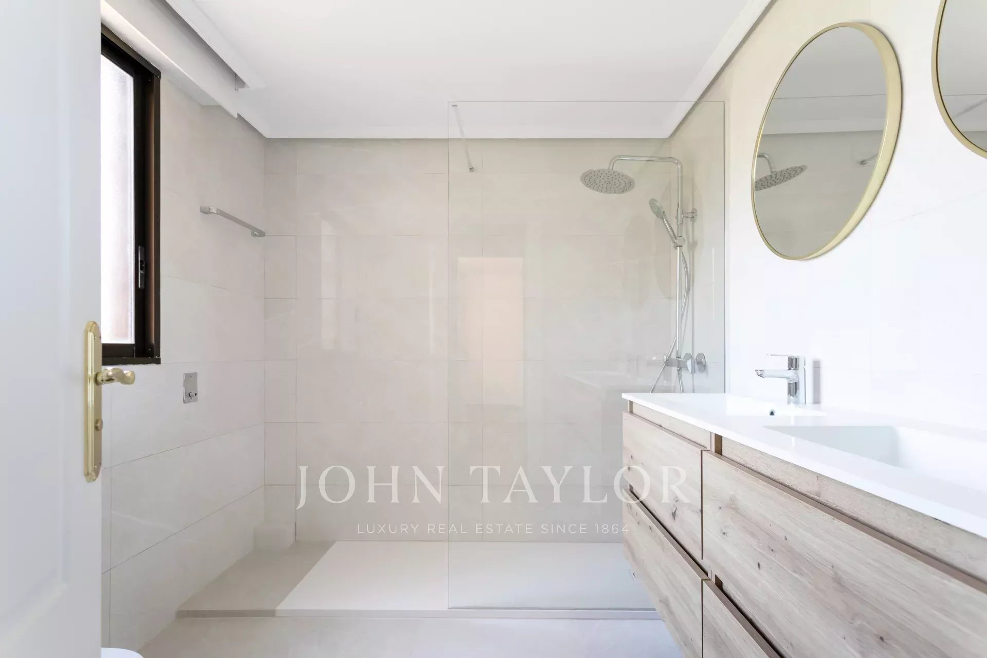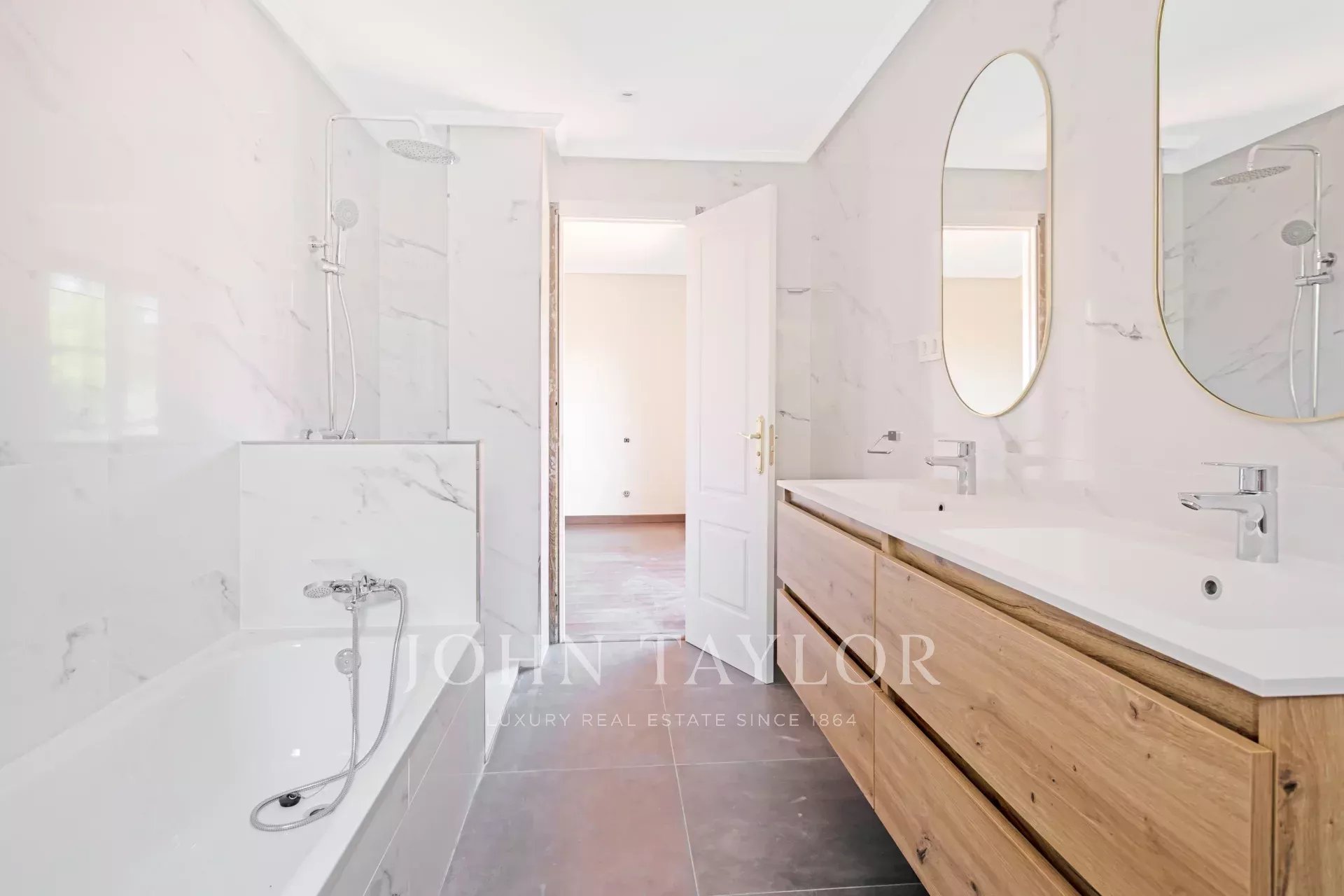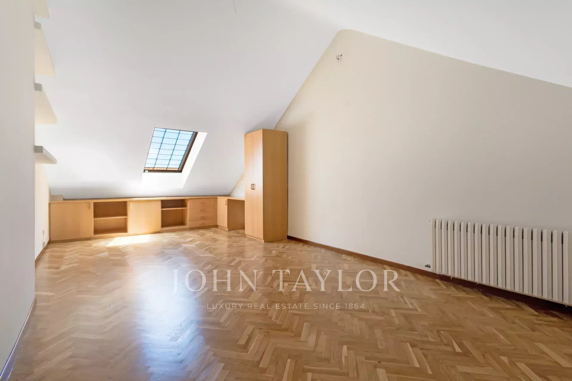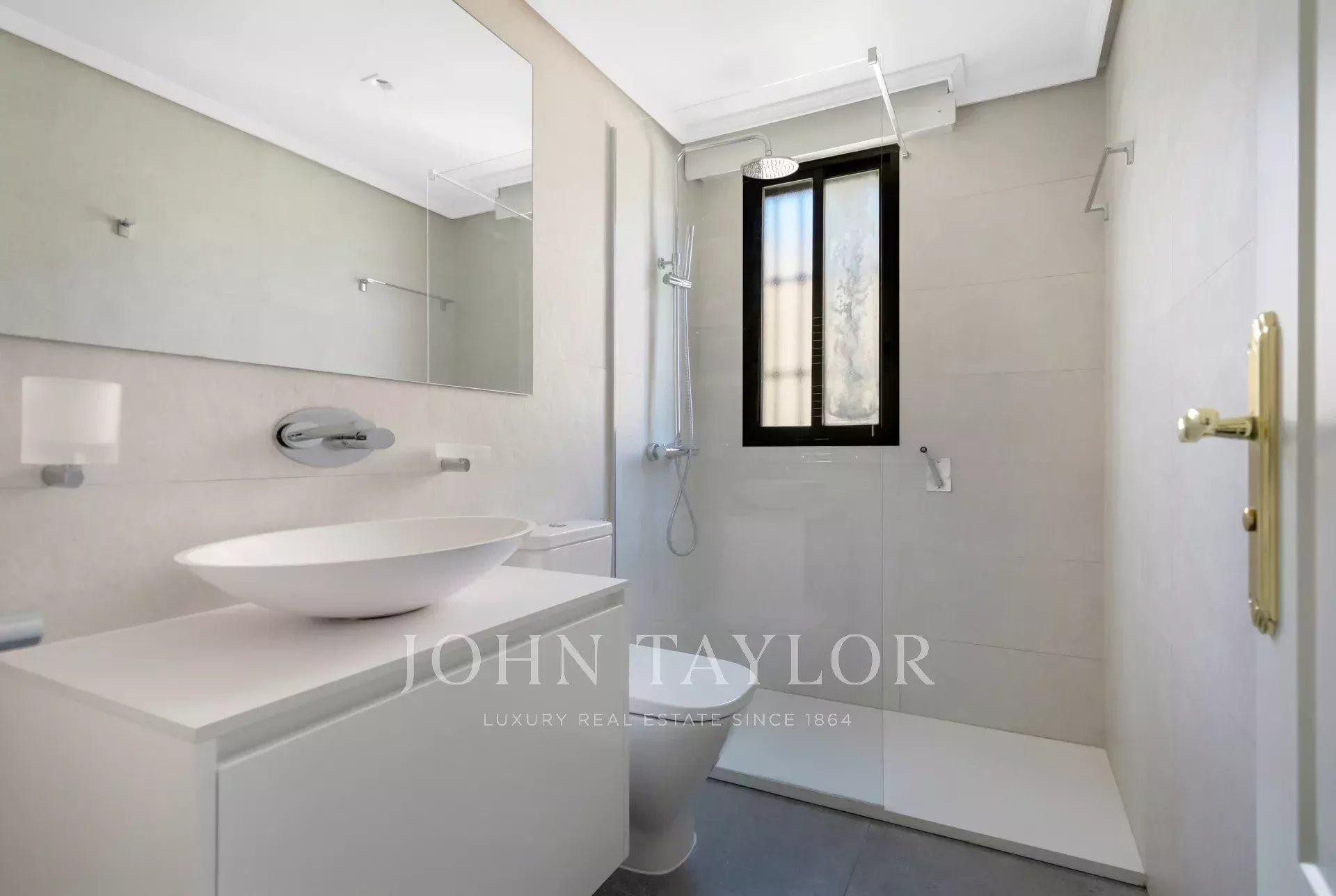 Al primo piano, un'ampia camera da letto principale con spogliatoio e bagno en suite, tre camere da letto e due bagni. La camera da letto principale ha una terrazza con una bella vista sul giardino. Al primo piano, due enormi spazi che possono essere utilizzati come camere da letto o soggiorni. Infine, al piano semi-interrato, un soggiorno o una camera da letto, una lavanderia, un ripostiglio e un parcheggio per due auto.