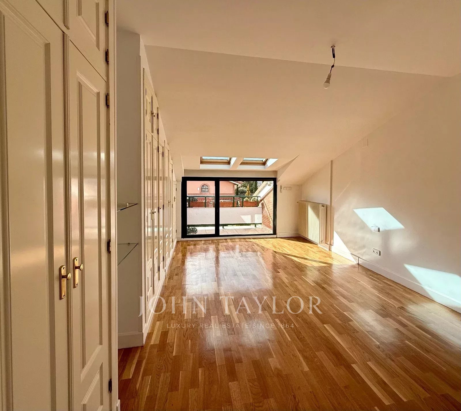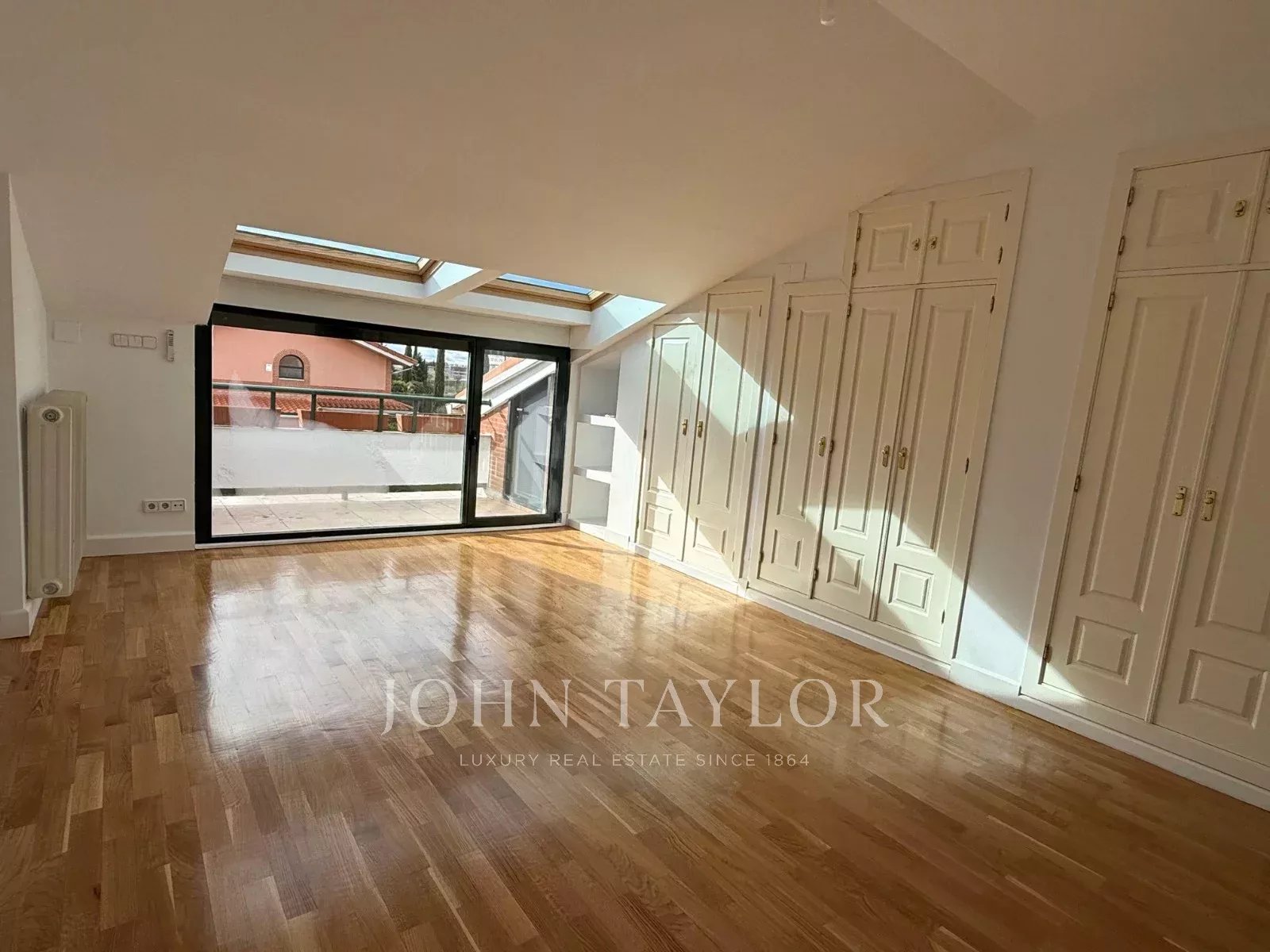 Il piano superiore è dedicato al relax e offre tre camere da letto e due bagni. La camera da letto principale, con bagno privato, gode di un'ottima luminosità e dell'accesso a una piacevole terrazza privata. Una delle camere secondarie, particolarmente spaziosa, consente molteplici configurazioni, sia come camera matrimoniale che come ufficio o zona studio.