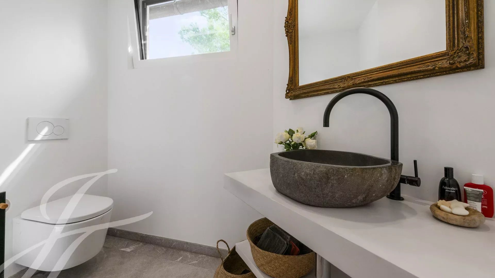 Scoprite la serenità della vita in questa zona residenziale tranquilla e molto ambita. Questa splendida casa moderna in stile mediterraneo offre un'esperienza unica sull'isola, con un terreno di 1492 m2 e 340 m2 costruiti che catturano l'essenza del lusso e del comfort. Con un orientamento a sud-ovest che garantisce giornate soleggiate e caldi tramonti, questa proprietà dispone di riscaldamento a pavimento per un'atmosfera accogliente in ogni angolo. Con 3 camere da letto e 3 bagni, più un bagno per gli ospiti, la disposizione della casa è stata progettata pensando all'armonia e al piacere della famiglia. Il cuore della casa è un open space che unisce il soggiorno, la sala da pranzo e la cucina, creando un'atmosfera accogliente perfetta per condividere momenti speciali. La presenza di un camino aggiunge calore alle serate più fresche, mentre le terrazze coperte invitano al relax con vista sul bellissimo giardino, che offre molto spazio e un orto per coltivare i propri prodotti freschi. Il sistema di irrigazione automatica assicura una cura senza sforzo, mentre l'illuminazione esterna crea un'atmosfera magica la sera. Godetevi il comfort in tutte le stagioni grazie all'aria condizionata, ai doppi vetri per mantenere la temperatura ideale e all'impianto idrico a osmosi. Il tocco finale di lusso è dato dall'ampia zona piscina, un rifugio perfetto nelle giornate di sole, dove è possibile rilassarsi e rinfrescarsi in completa privacy, oltre a una guest house con bagno, doccia e riscaldamento a infrarossi. Non perdete l'opportunità di affittare questa casa: contattateci subito per iniziare a vivere al meglio la vita mediterranea!