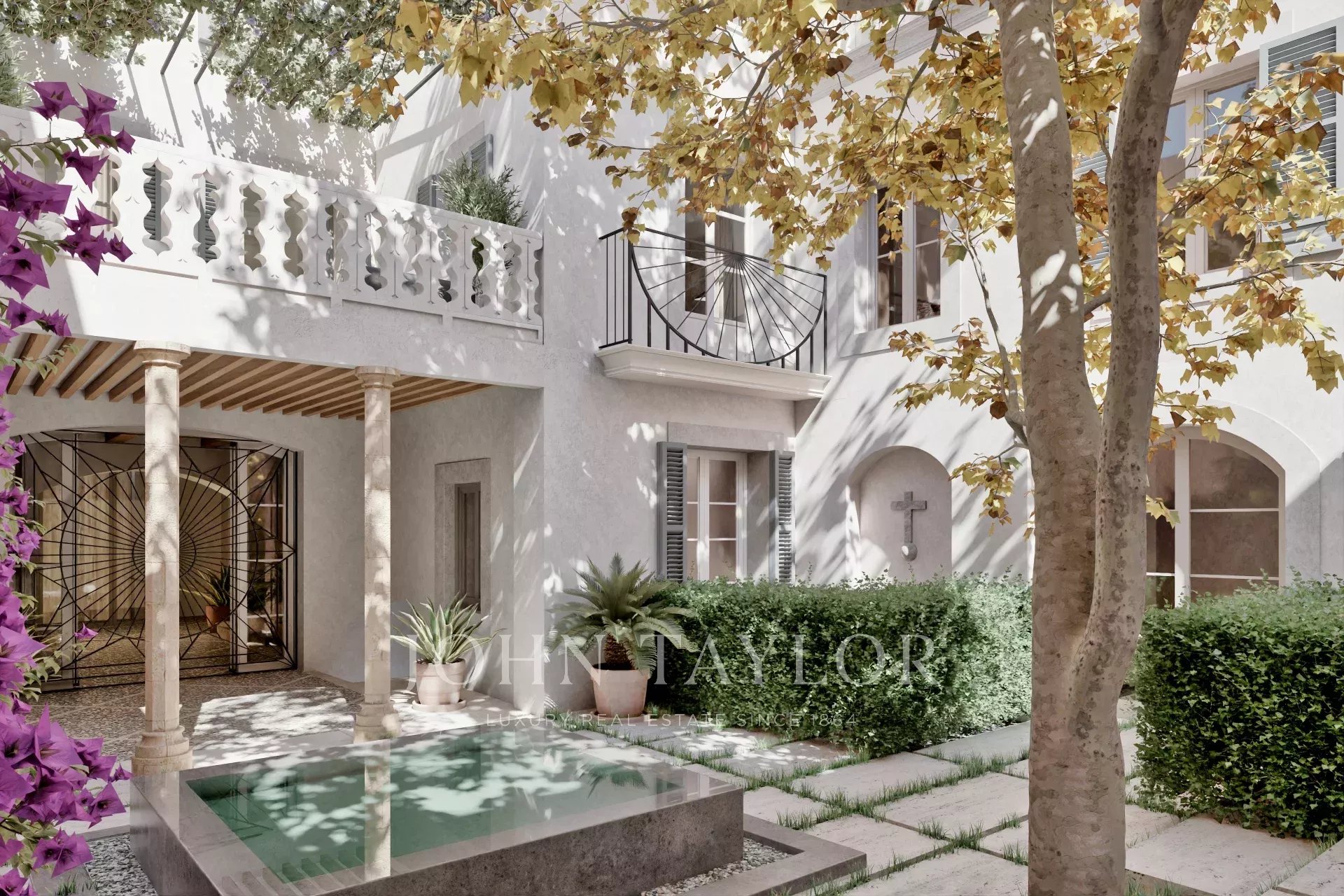 Questo nuovo favoloso progetto, attualmente in costruzione, sarà trasformato in una splendida residenza di 5 unità costruita intorno a un giardino privato. Questo elegante complesso è parte integrante della Città Vecchia e offre una vera e propria oasi lussureggiante di pace, ombra estiva e tranquillità (in inverno i grandi alberi di latifoglie perdono le foglie e lasciano passare il sole). Le unità variano da appartamenti con giardino, duplex e triplex, da 81 m2 a 190 m2, con 1, 2 e 3 camere da letto. Sia le unità al piano terra che quelle all'ultimo piano sono complete di aree esterne, ideali per la ricreazione o il puro relax. Il progetto si concentra sul ripristino dell'edificio al suo splendore originale con tutti i vantaggi della vita moderna, come soffitti con travi a vista, finestre a tutta altezza, riscaldamento a pavimento, cucine completamente attrezzate con elettrodomestici Siemens, aria condizionata centralizzata e sistema di automazione domestica, e l'utilizzo di materiali nobili come la pietra naturale di Binissalem e i pavimenti in rovere.