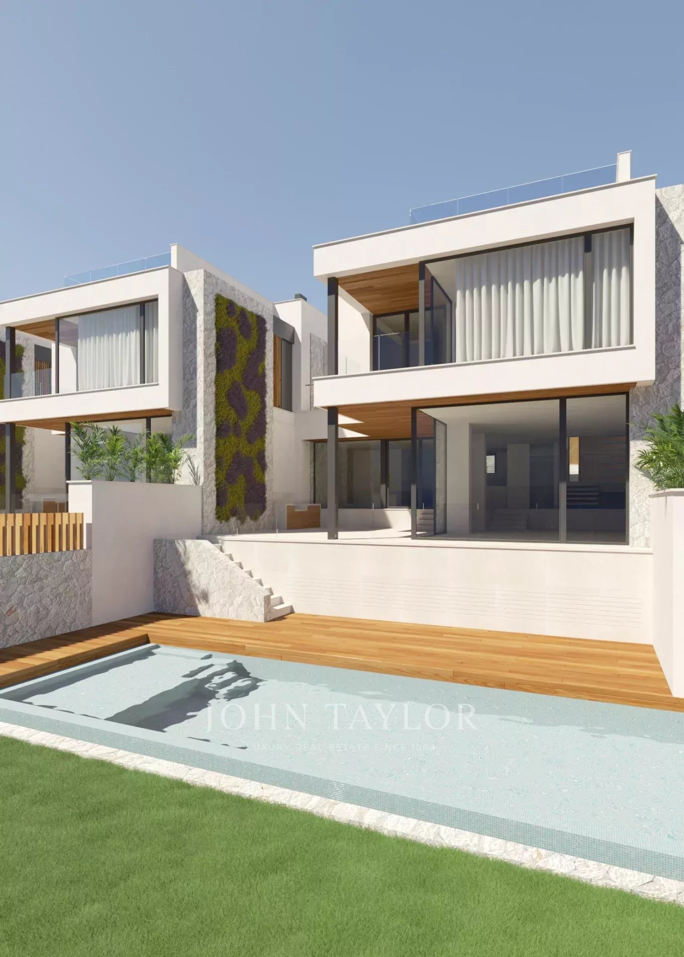 Ciascuna delle quattro ville vanta un'ampia superficie abitabile di 300 metri quadrati, con quattro camere da letto all'ultimo piano, tre bagni e armadi a muro. Al piano terra, la distribuzione a pianta aperta della cucina e della sala da pranzo con il soggiorno su un livello separato si collega senza soluzione di continuità con la generosa e intima terrazza, perfetta per intrattenersi. Il moderno design di ispirazione mediterranea è ulteriormente arricchito da una facciata in pietra, un giardino verticale e una delicata falegnameria, che contribuiscono all'atmosfera di alto livello di queste nuove case.