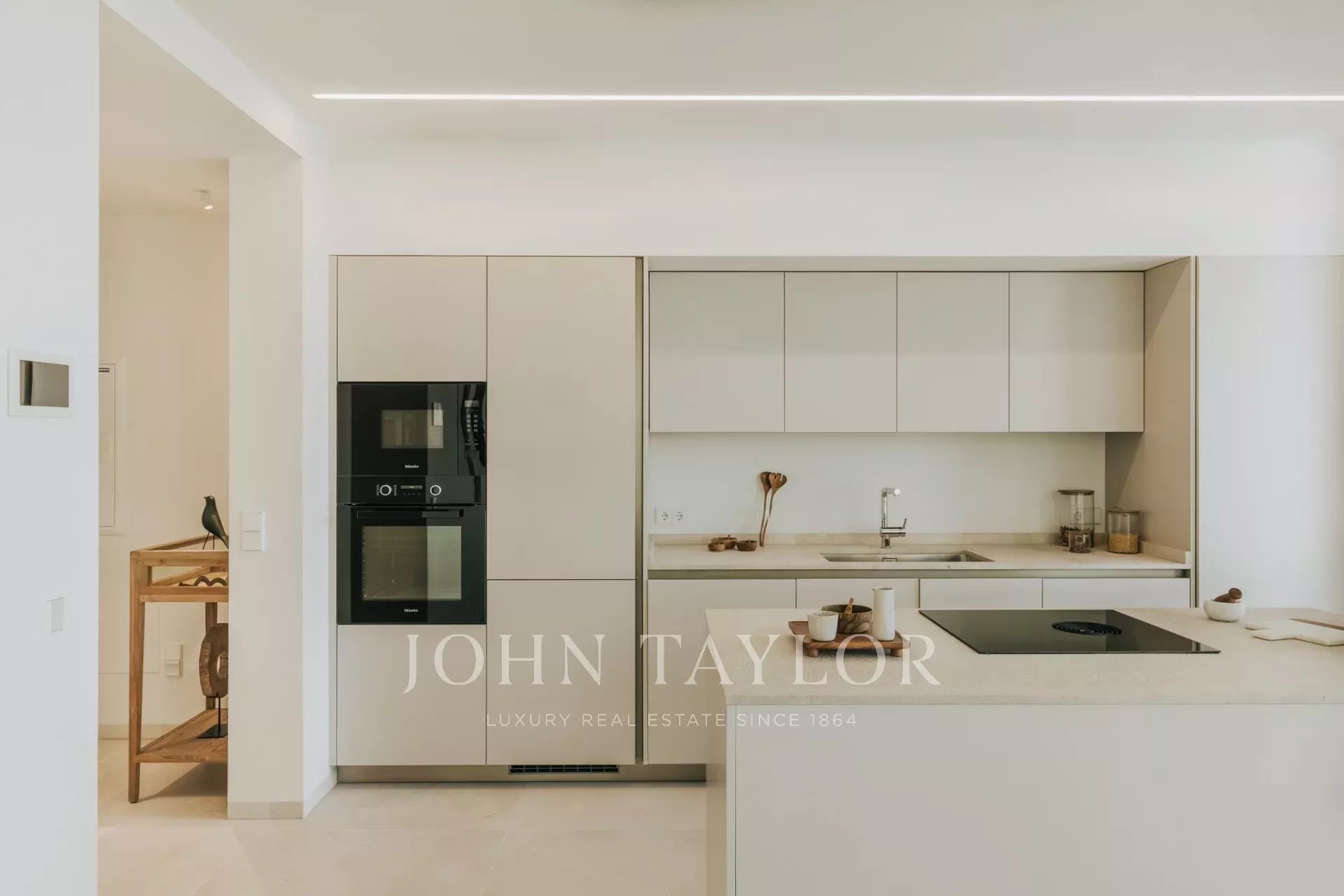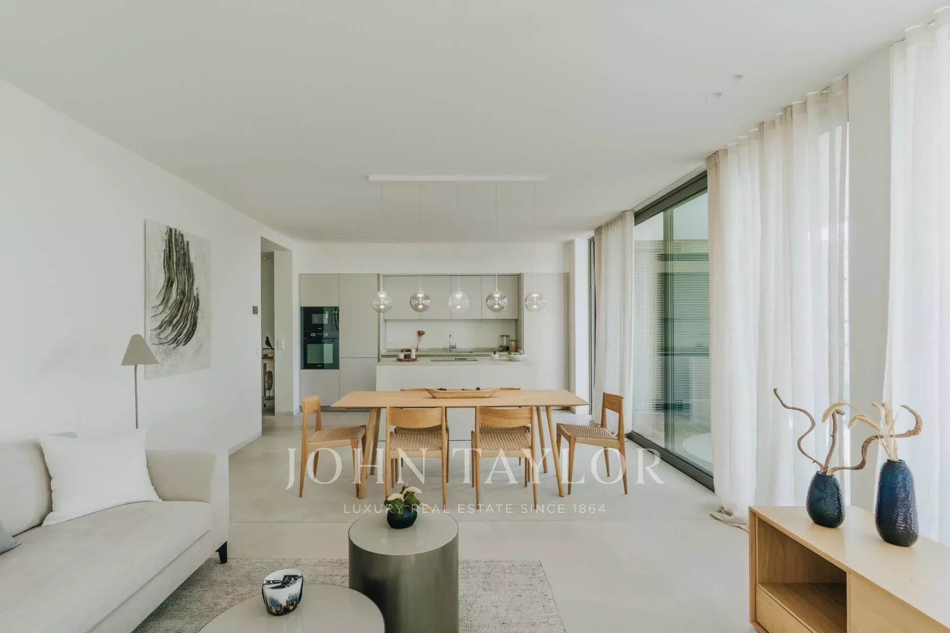 Gli interni dell'edificio sono stati ispirati dallo stile di vita maiorchino. Finestre a tutta altezza, elementi di porte e armadi a soffitto e pavimenti in pietra a tutta superficie permettono alle stanze di fluire l'una nell'altra e conferiscono a ogni appartamento una particolare eleganza. Grazie al design moderno, semplice e funzionale e alla palette di colori chiari e mediterranei, gli interni sviluppano un proprio carattere moderno e senza tempo.