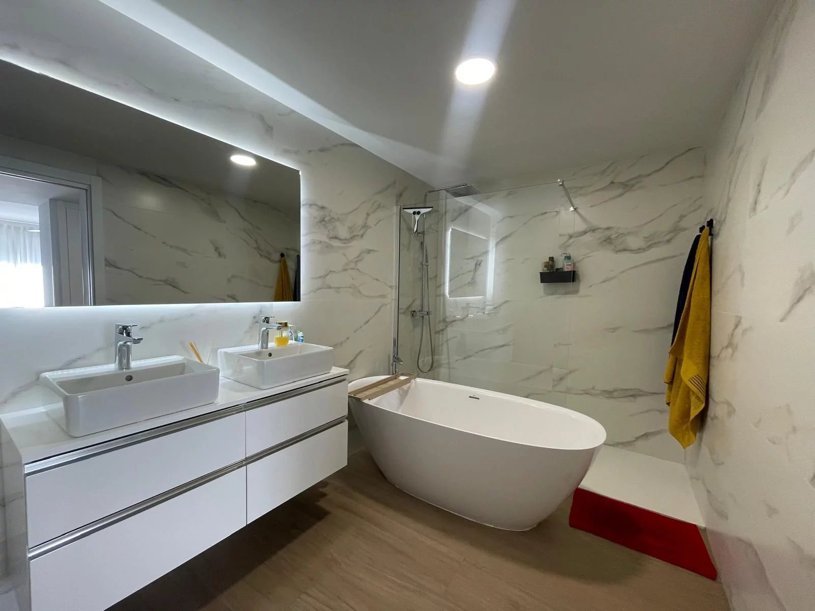 La parte privata offre quattro camere da letto, due delle quali con bagno privato, e una magnifica suite padronale con spogliatoio e accesso alla seconda terrazza. Tutti i bagni sono rifiniti secondo i più alti standard. La proprietà incorpora riscaldamento a pavimento caldo/freddo, aria condizionata aerotermica, domotica ed eccellente isolamento per garantire il massimo comfort.