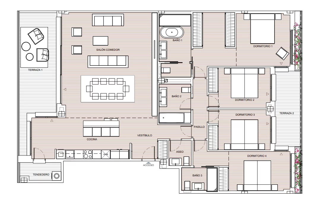 John Taylor presenta questo esclusivo appartamento di 234 mq, pensato per chi cerca uno stile di vita eccezionale. La proprietà si distingue per la sua luminosità e per l'architettura fluida che collega un elegante soggiorno-sala da pranzo con ampie finestre e accesso a una delle sue terrazze, perfette per vivere all'aperto tutto l'anno. La cucina, dal design contemporaneo e dotata di elettrodomestici di alta gamma, è perfettamente integrata grazie a un'imponente isola centrale, che la rende il vero cuore della casa. Una pratica zona lavanderia e un bagno per gli ospiti completano l'area sociale.
