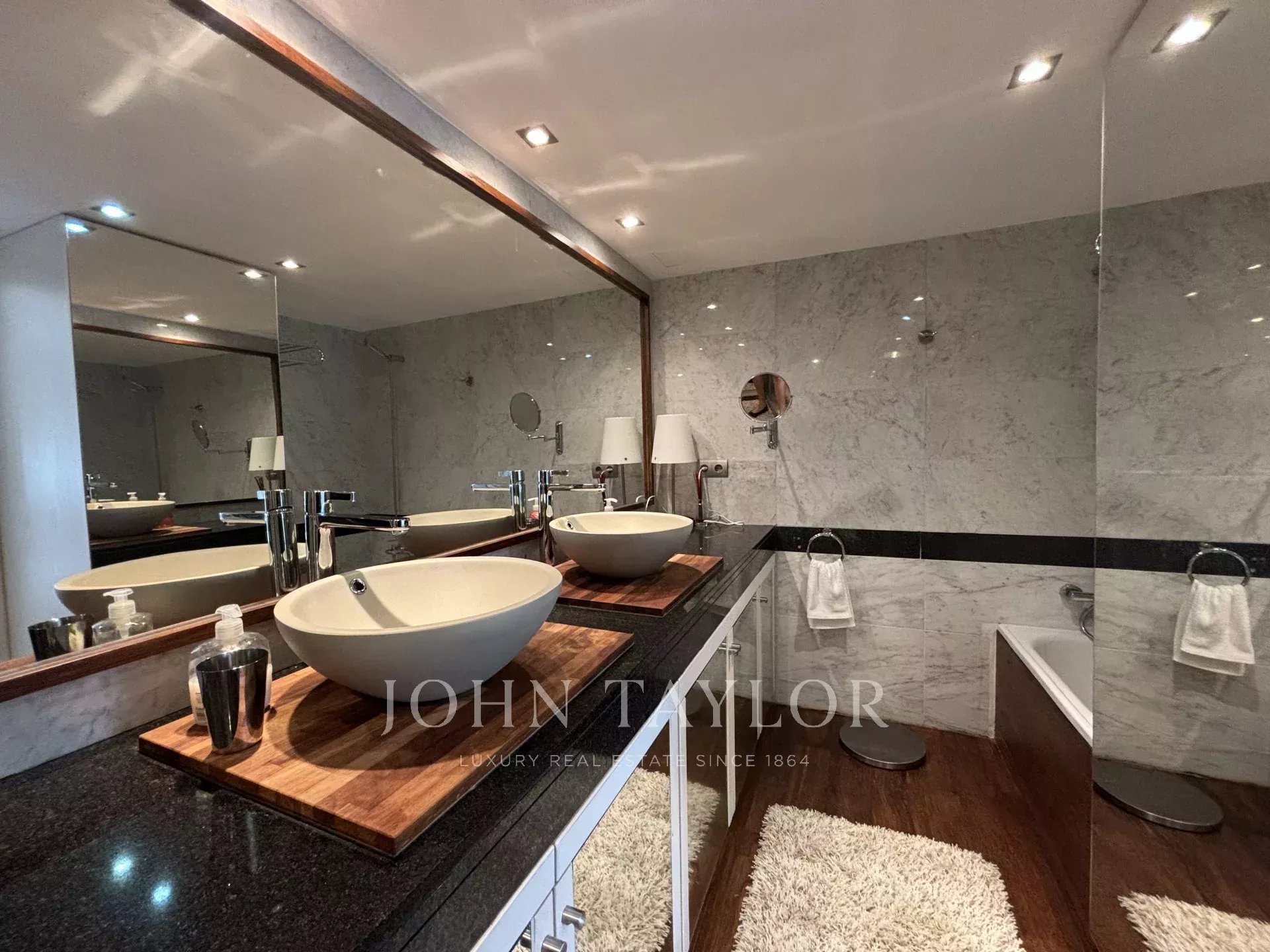 L'appartamento dispone anche di un servizio di sicurezza 24 ore su 24, di un concierge dedicato e di una piscina comune, per garantire sicurezza e relax. Tra i vantaggi aggiuntivi figurano due posti auto privati in un garage interno.