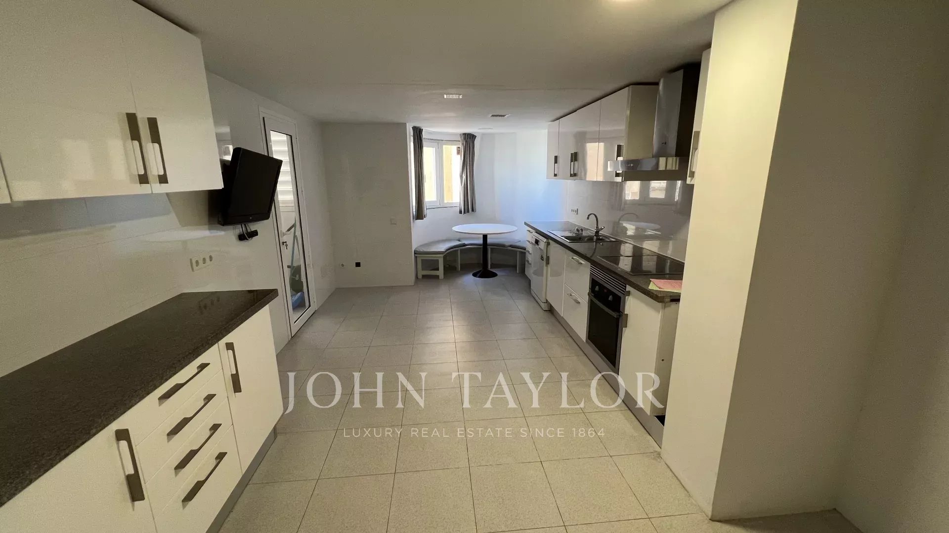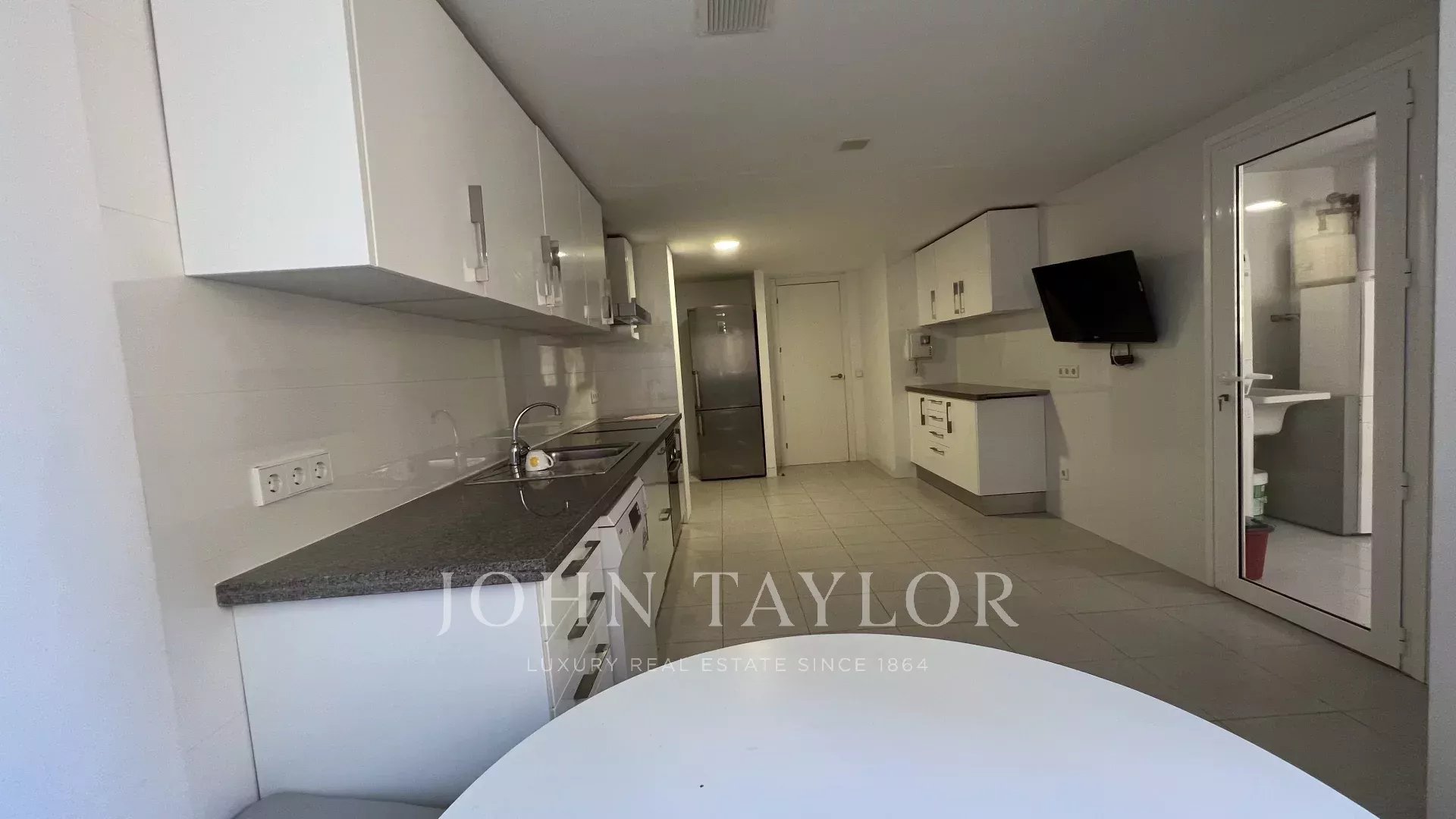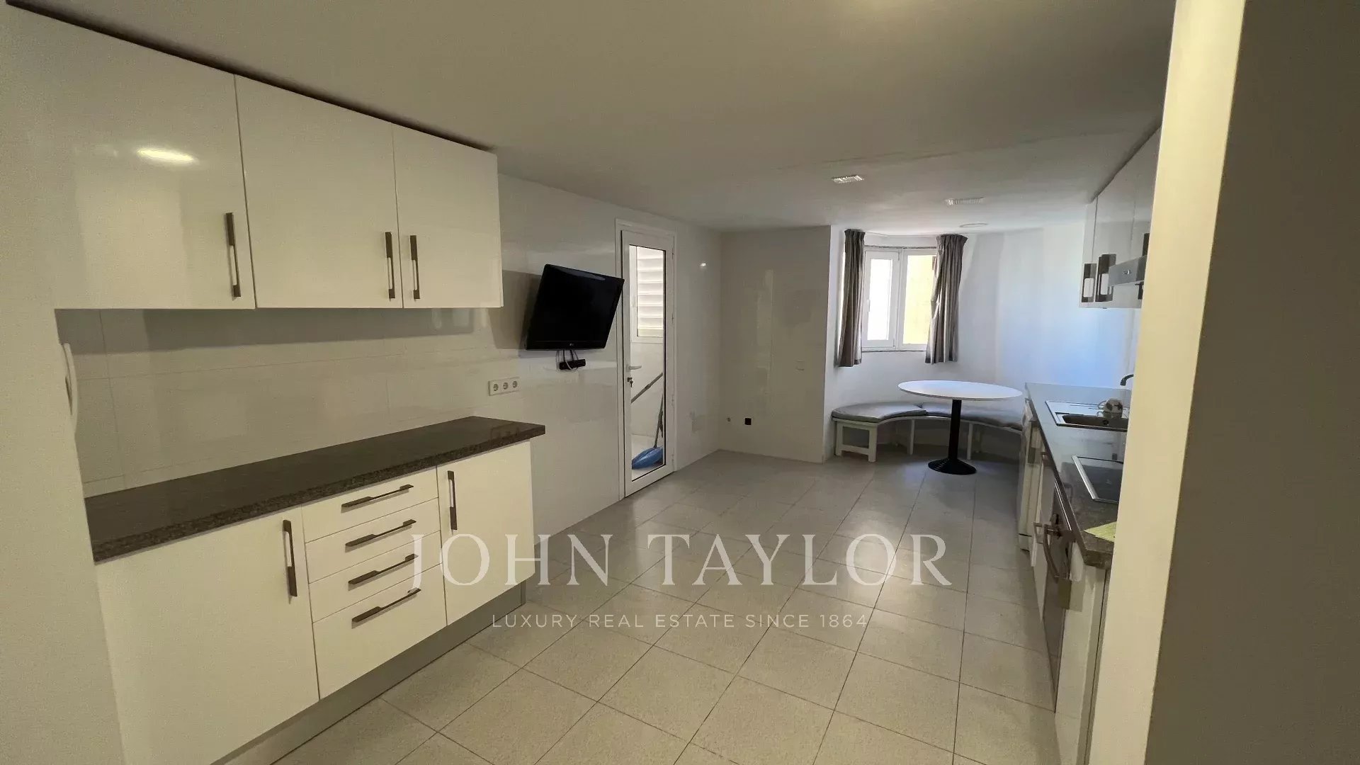 Il design della proprietà è stato accuratamente studiato, a partire da un elegante ingresso che separa perfettamente le aree giorno e notte. Nella zona giorno troviamo un luminoso e spazioso soggiorno-pranzo che si apre su una spettacolare terrazza di 52 m² con vista panoramica a 180° sul mare, il luogo perfetto per godersi il paesaggio e il clima mediterraneo. La cucina, di generose dimensioni, è dotata di un tavolo per pasti informali e dispone di una spaziosa lavanderia indipendente.