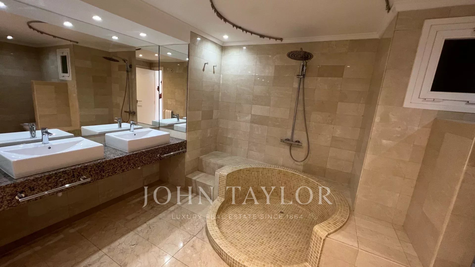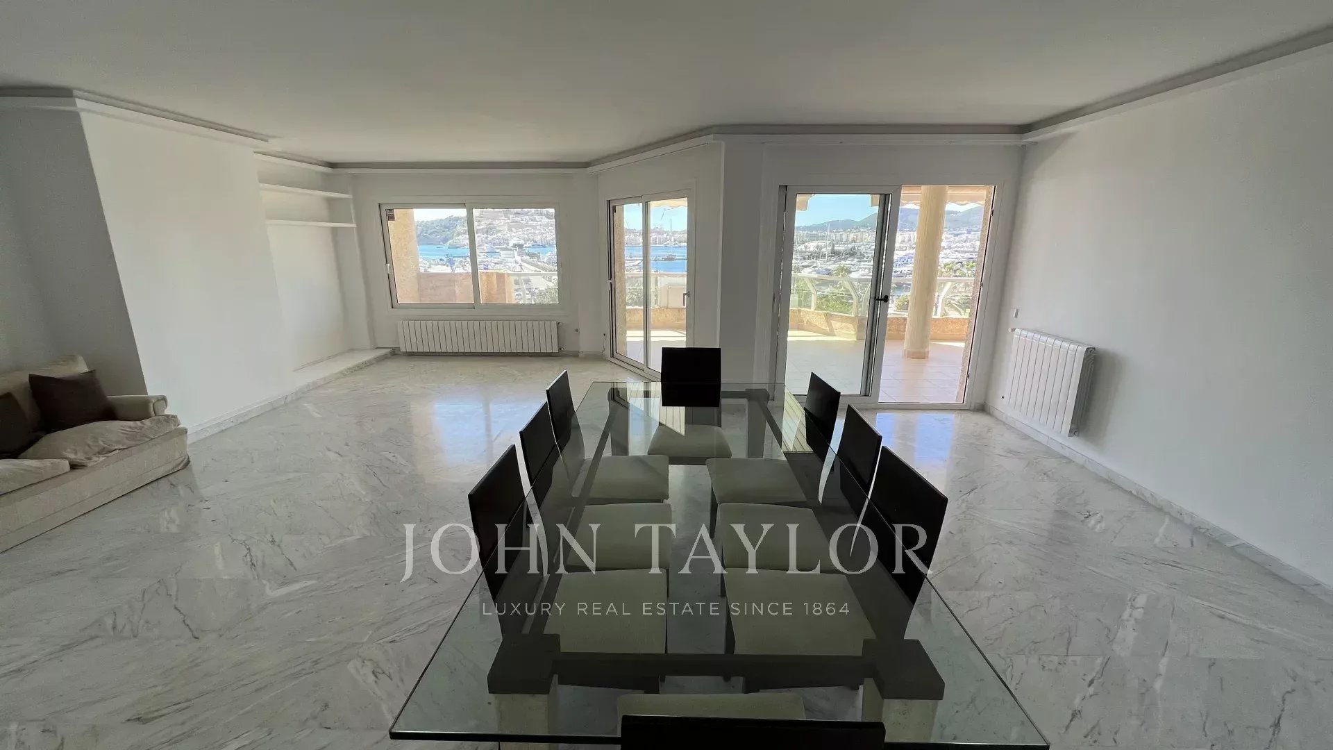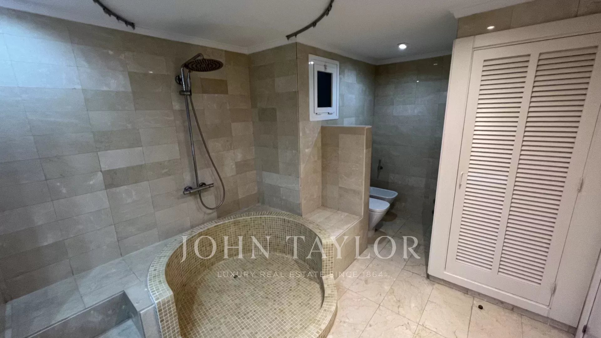 Il design della proprietà è stato accuratamente studiato, a partire da un elegante ingresso che separa perfettamente le aree giorno e notte. Nella zona giorno troviamo un luminoso e spazioso soggiorno-pranzo che si apre su una spettacolare terrazza di 52 m² con vista panoramica a 180° sul mare, il luogo perfetto per godersi il paesaggio e il clima mediterraneo. La cucina, di generose dimensioni, è dotata di un tavolo per pasti informali e dispone di una spaziosa lavanderia indipendente.