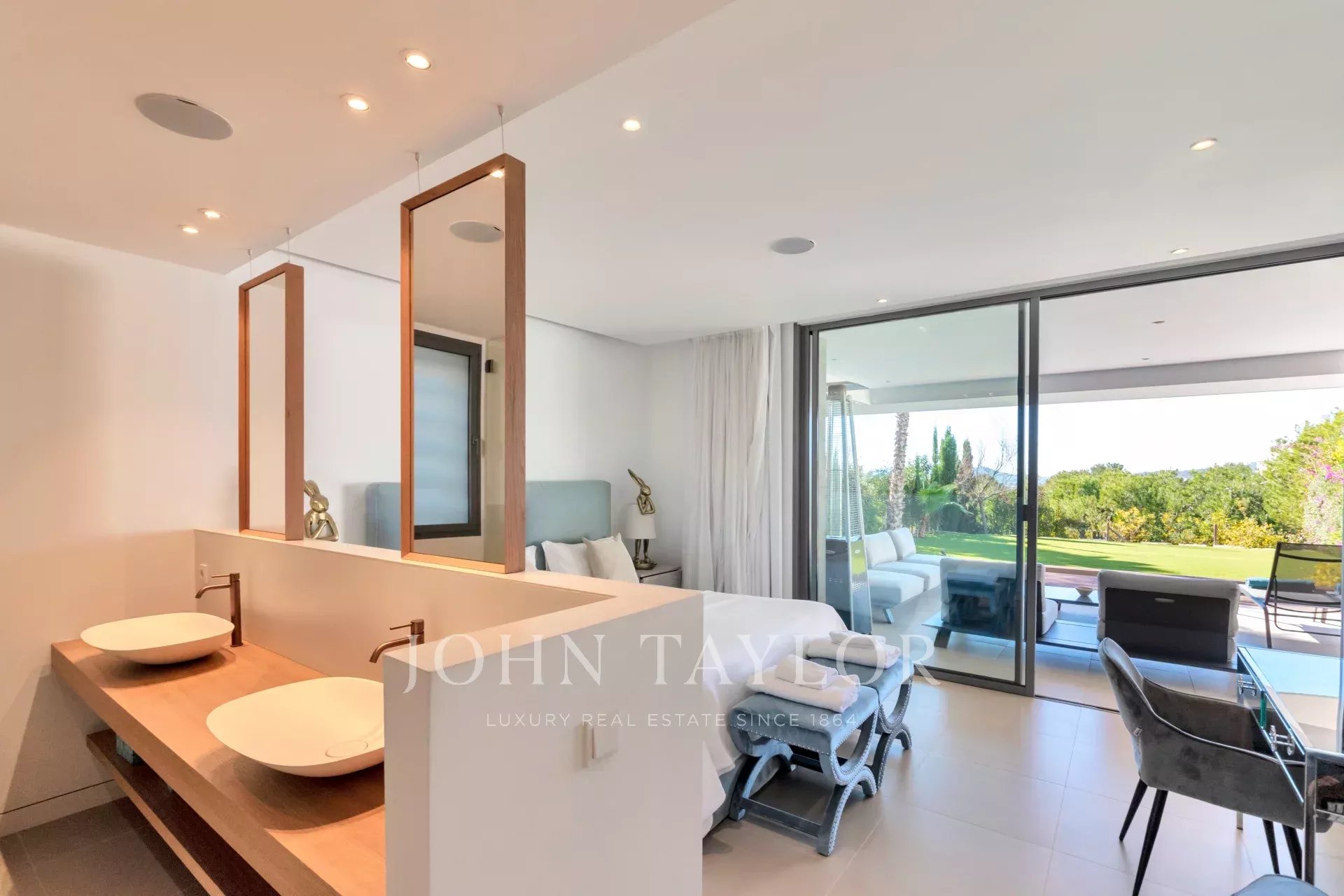 Le aree soggiorno e cucina a concetto aperto scorrono senza sforzo, migliorando la sensazione di spazio e connessione con l'esterno. L'appartamento dispone di tre camere da letto splendidamente arredate, ciascuna con accesso diretto al giardino. La suite principale dispone di bagno privato e cabina armadio, mentre due camere da letto aggiuntive godono di bagno privato e vista sui giardini paesaggistici.
