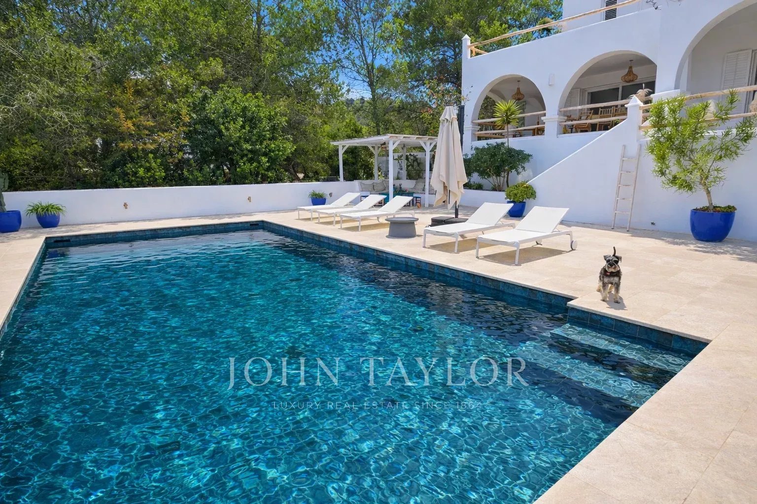 All’esterno, la villa dispone di una splendida area piscina immersa nella natura, oltre a tre piacevoli terrazze coperte che invitano a godere dello stile di vita mediterraneo in totale relax. Il terreno offre inoltre diverse possibilità di utilizzo e ampio spazio per parcheggiare più veicoli all’interno della proprietà.