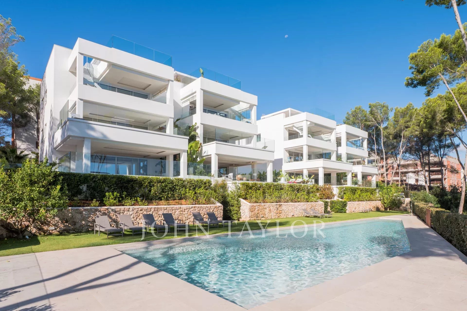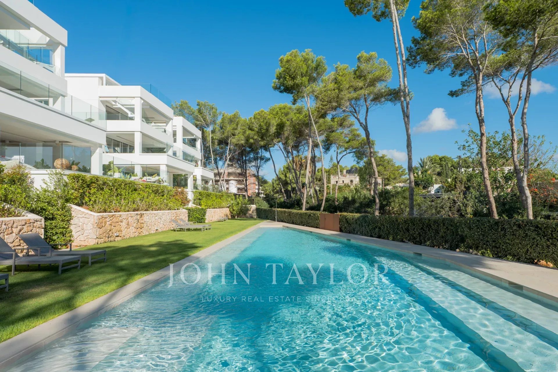 Il complesso residenziale offre giardini curati e una grande piscina condominiale, per uno stile di vita tranquillo e raffinato a Ibiza.