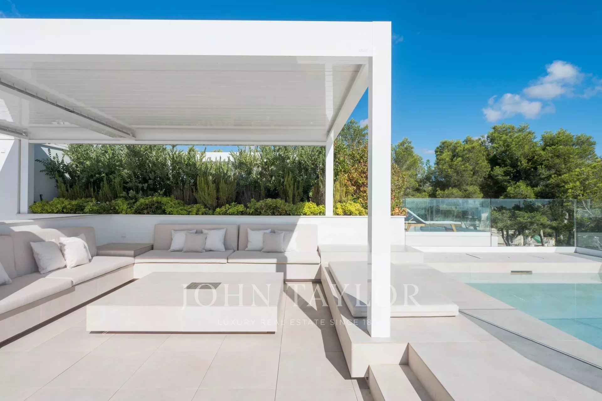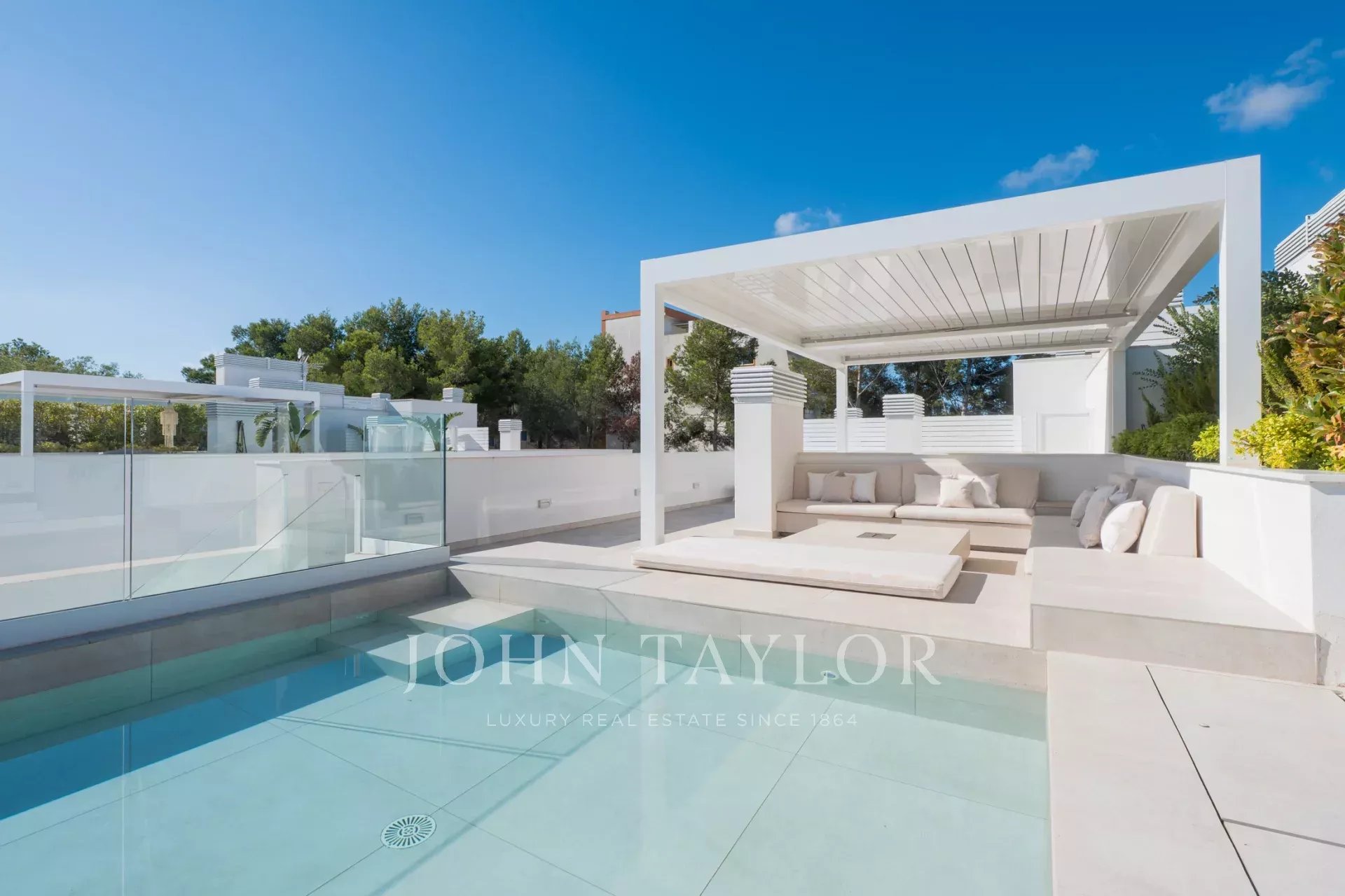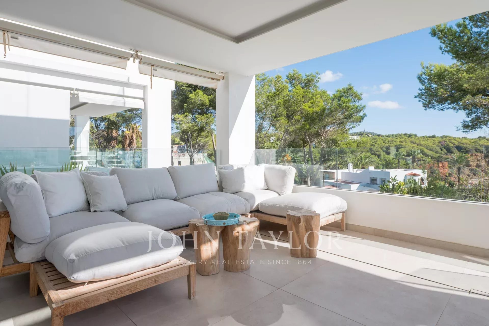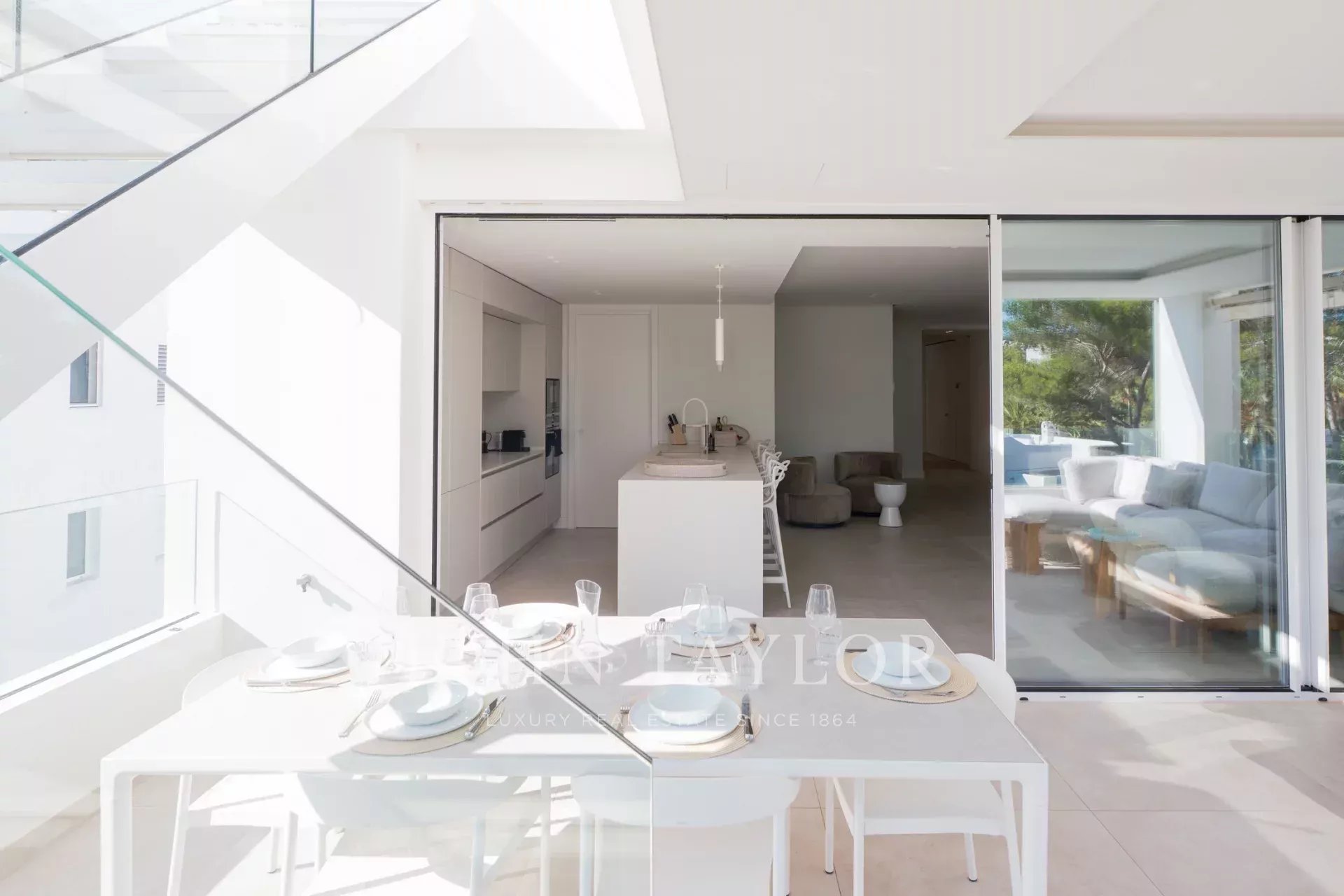 Scopri questo attico mozzafiato situato a Los Jades, a pochi passi dalla tranquilla spiaggia di Cala Llenya. Perfetto per chi cerca comfort, privacy e vista sul mare in una delle zone più ambite di Ibiza.