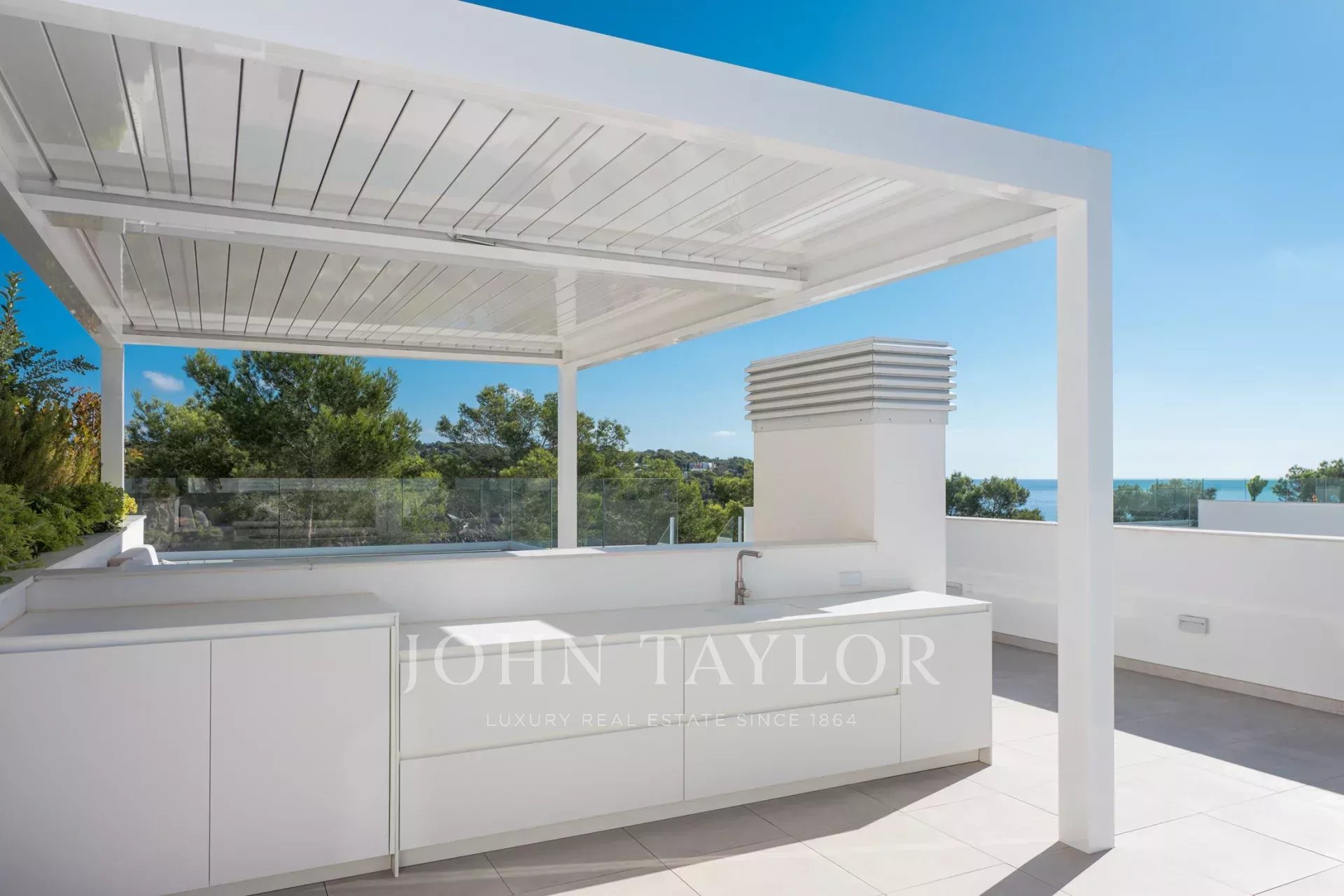 Attico esclusivo con solarium, piscina privata e vista mare a Cala Llenya