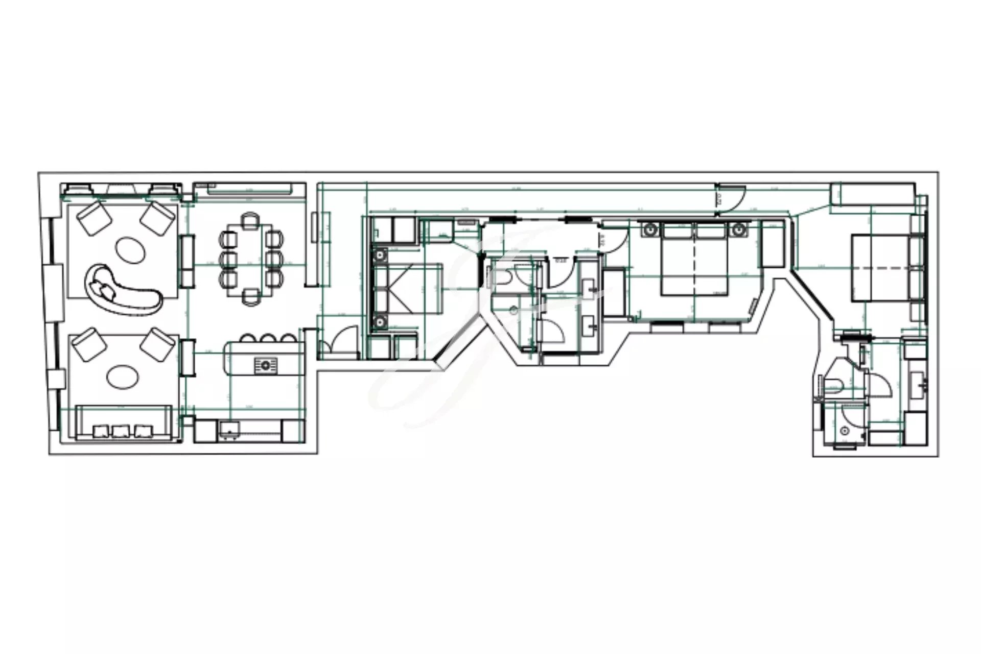 Con 149 m², soffitti di 3 metri e orientamento a ovest, la proprietà offre tre camere da letto e due bagni, distribuiti in modo tale da far percepire luminosità e spaziosità in ogni stanza. I tre balconi offrono luce e vista sull'elegante ambiente circostante, mentre l'altezza della pianta aumenta la sensazione di spaziosità.