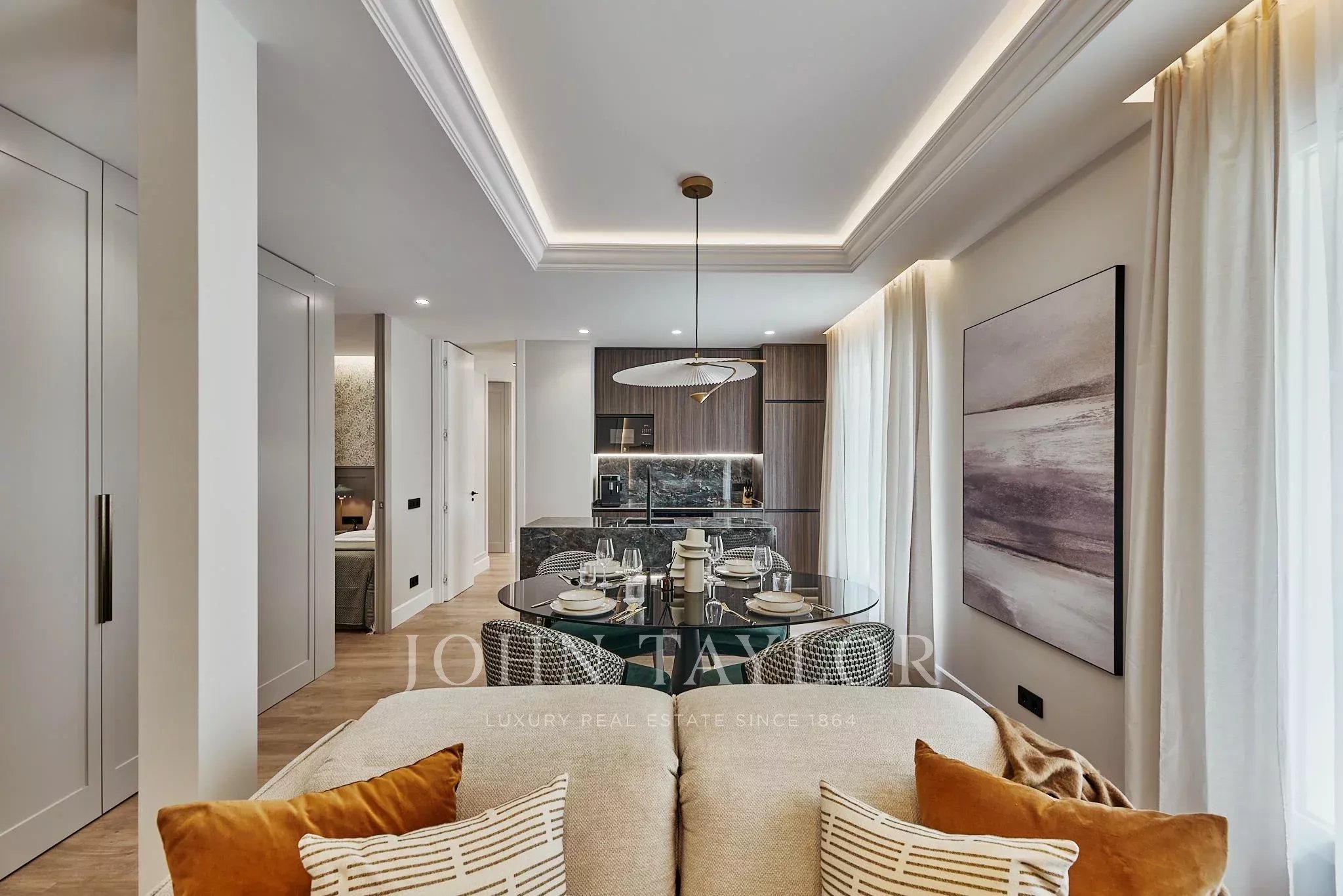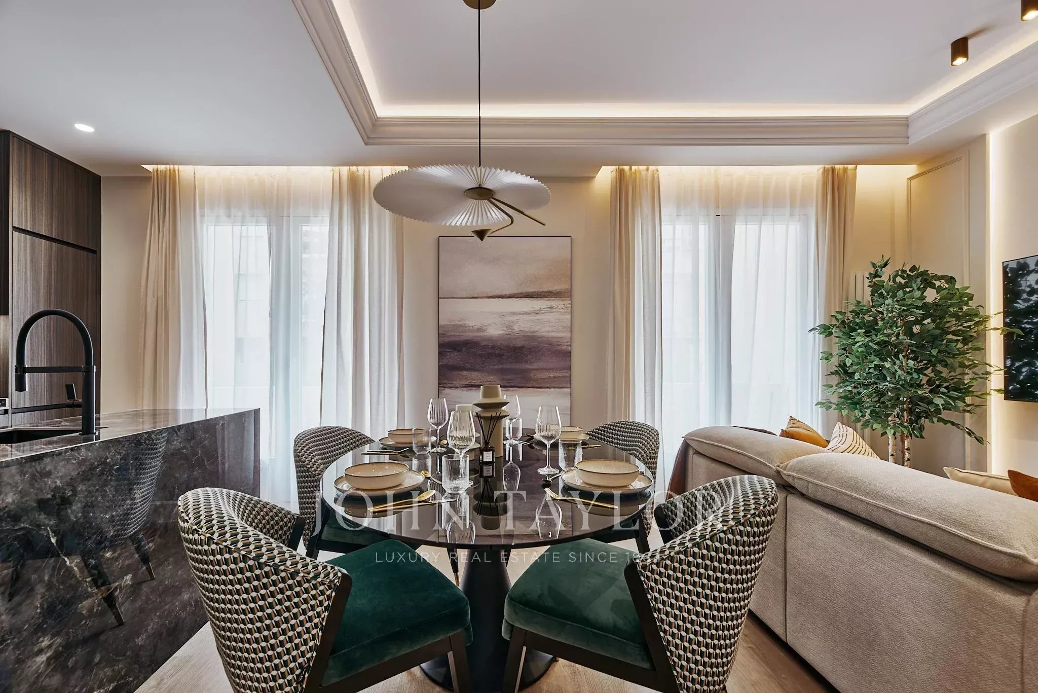 L'appartamento è stato completamente rinnovato con un raffinato design contemporaneo che equilibra perfettamente estetica e funzionalità. La zona giorno si articola intorno a un luminoso soggiorno-pranzo, concepito come uno spazio accogliente e fluido, che si integra armoniosamente con una cucina completamente attrezzata, pensata per uno stile di vita attuale.