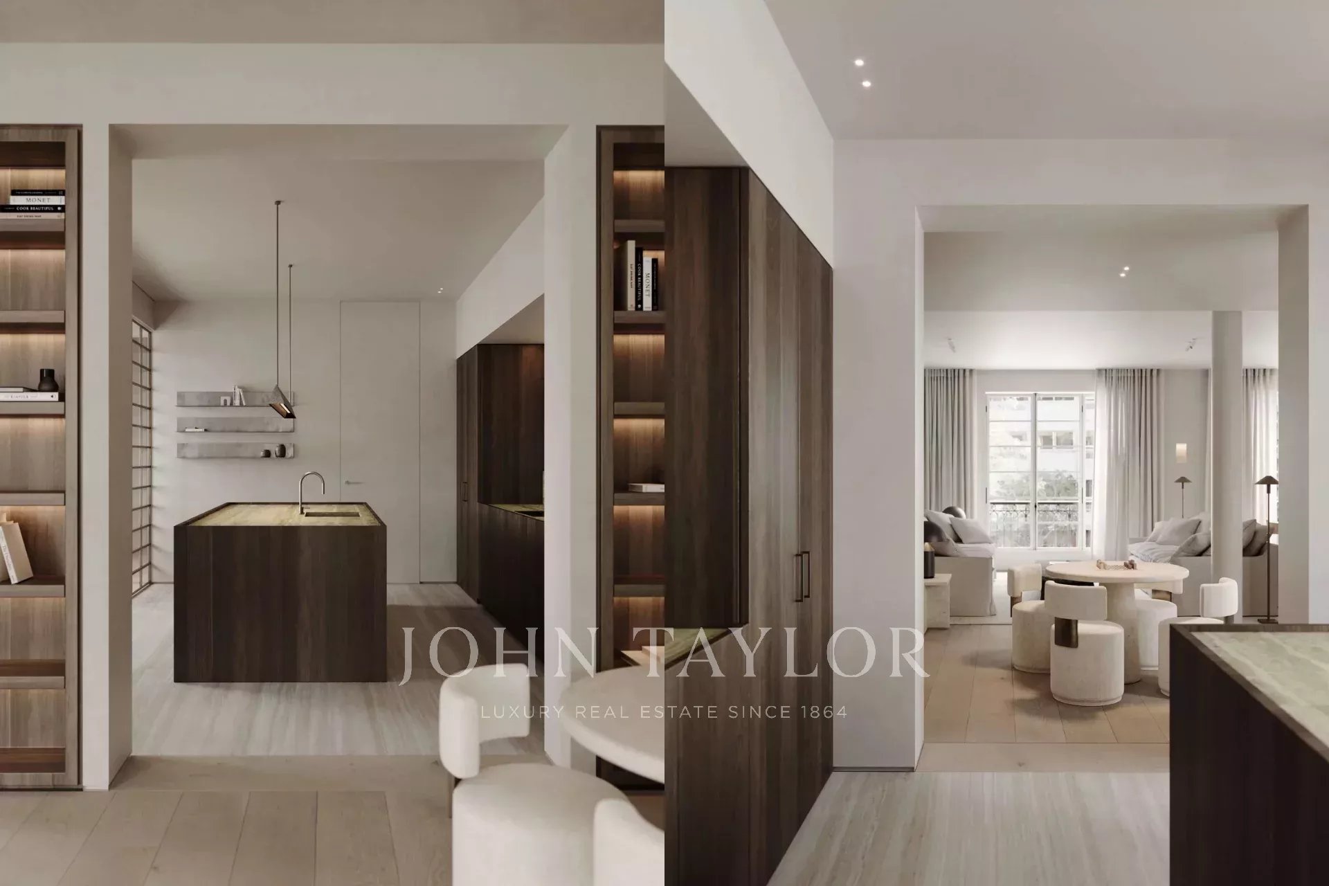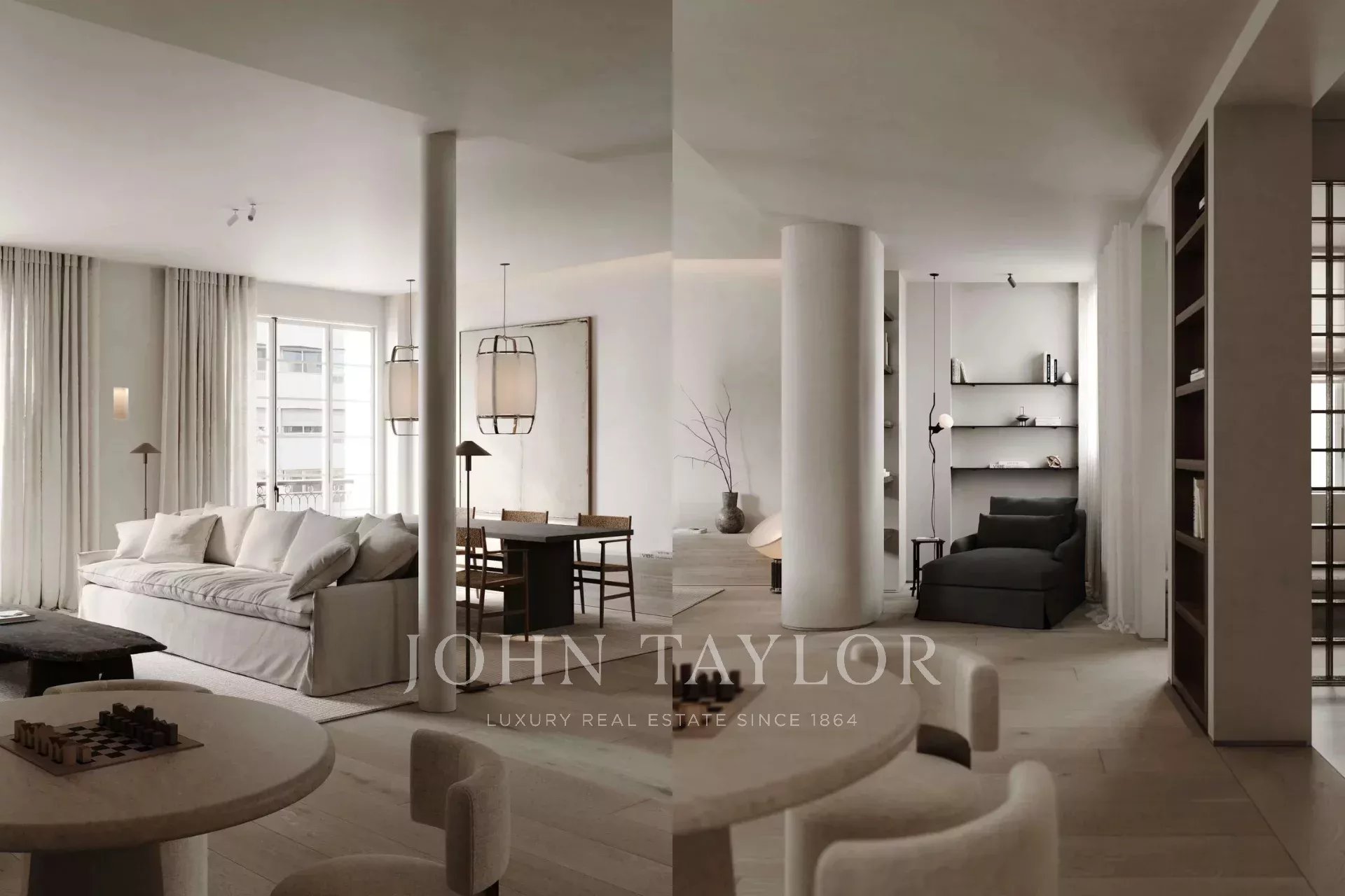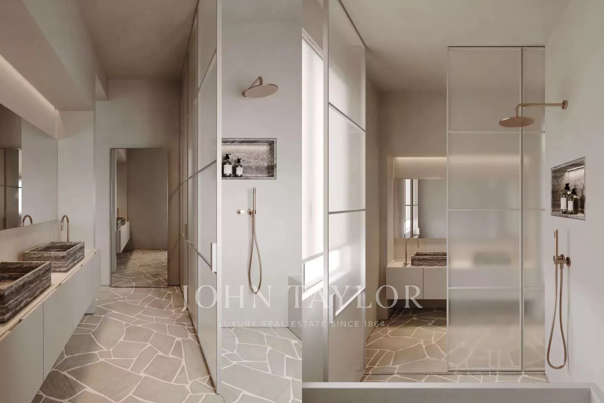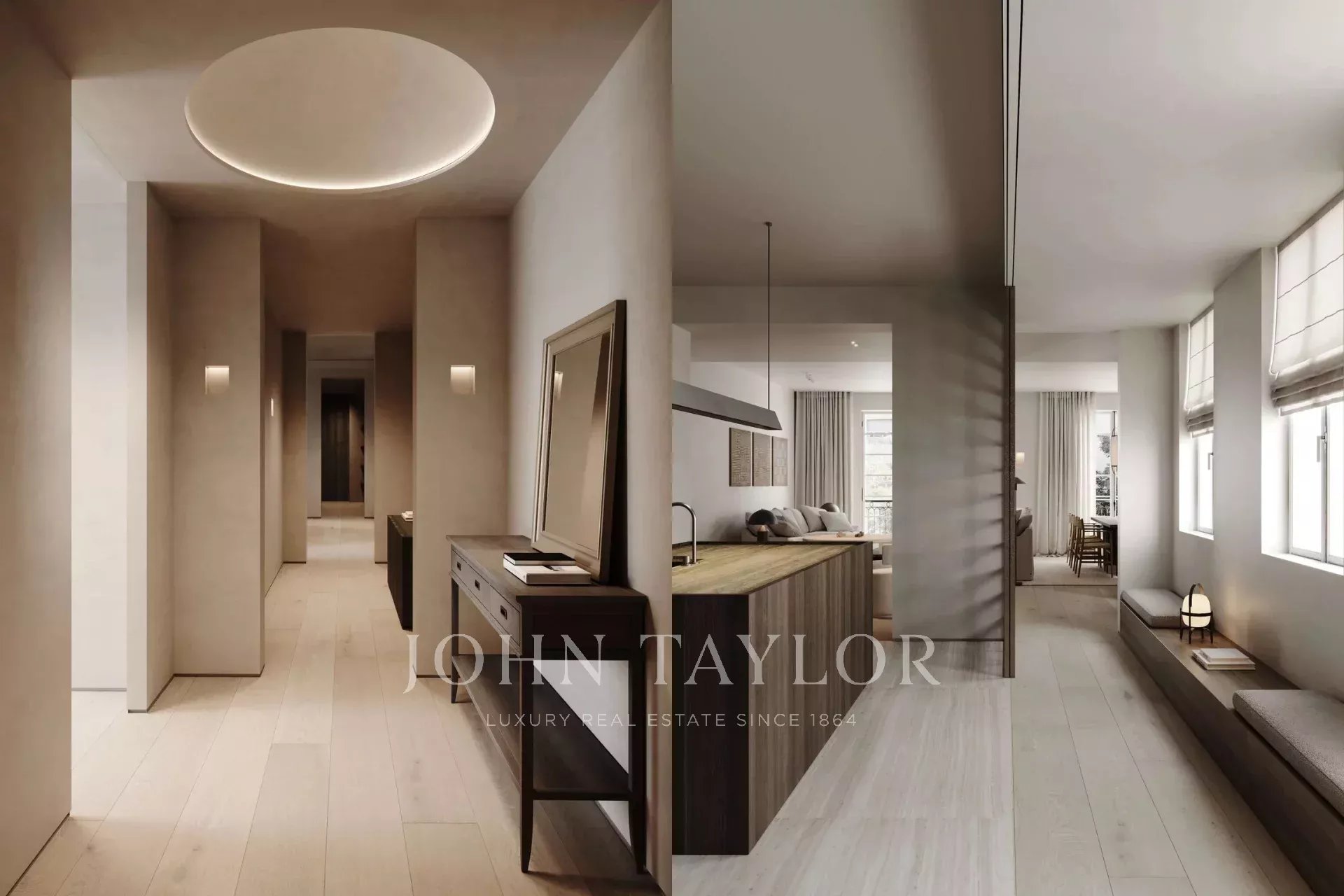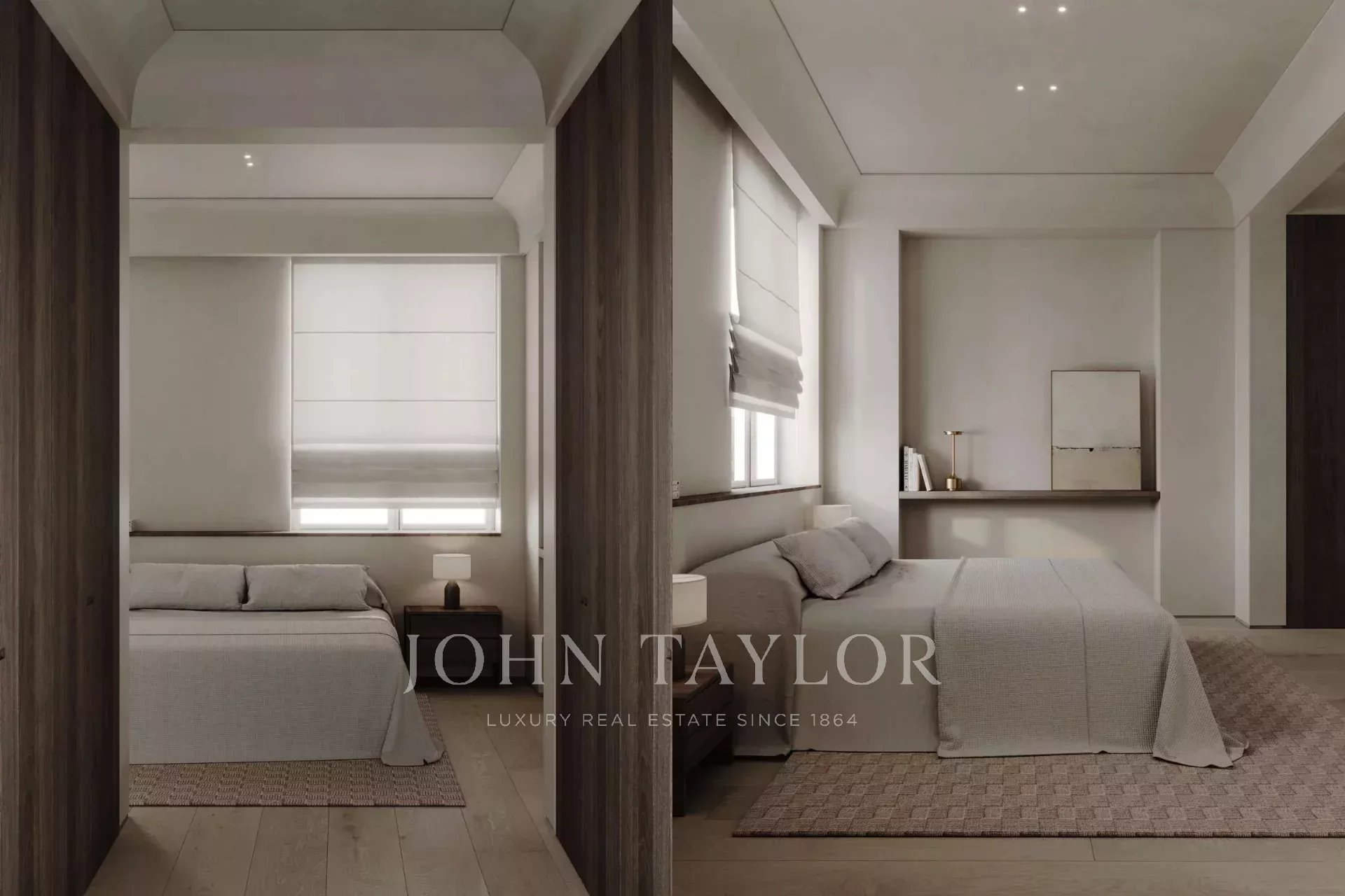 Grazie all'assenza di muri portanti, sarà possibile realizzare una disposizione ottimale, individuando un'ampia zona sociale esposta a sud, che riceve abbondante luce naturale attraverso le sue grandi finestre. L'area privata potrebbe ospitare quattro camere da letto, ognuna con bagno privato, garantendo comfort e privacy. La proprietà, con solo due vicini per piano, soffitti alti e assenza di muri portanti, consente un progetto di trasformazione personalizzabile, rendendo questo un eccezionale investimento immobiliare in una zona di costante rivalutazione.
