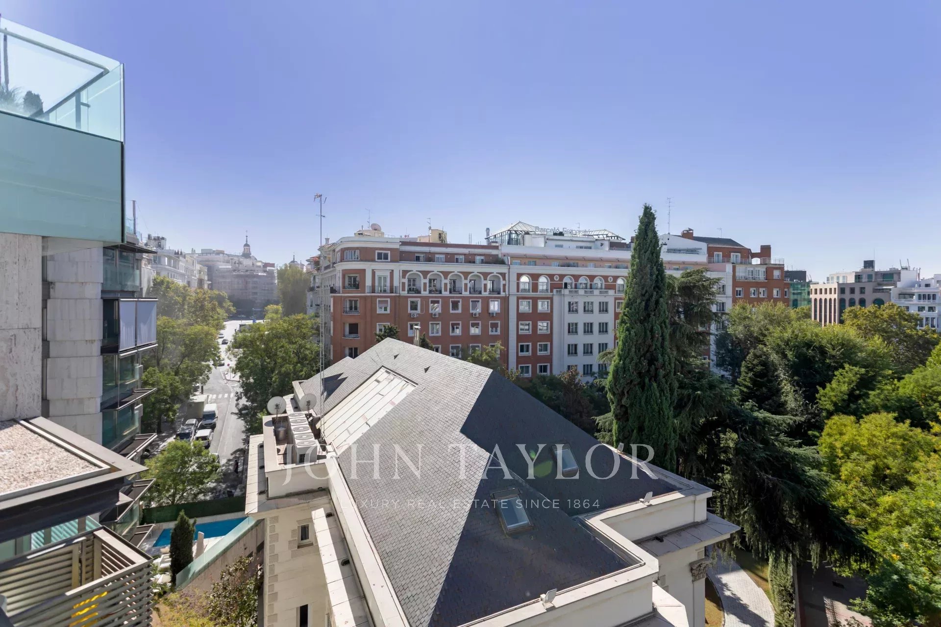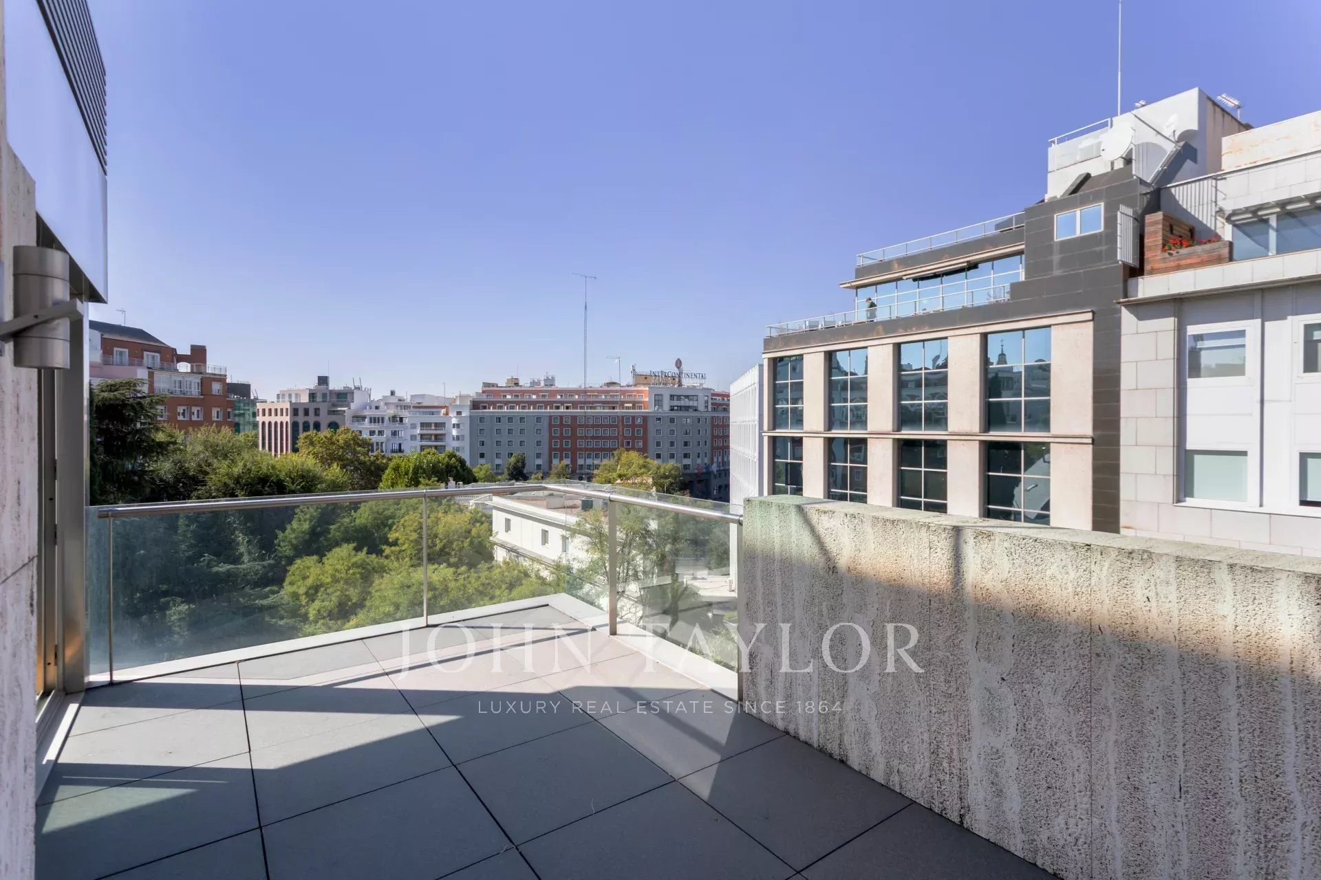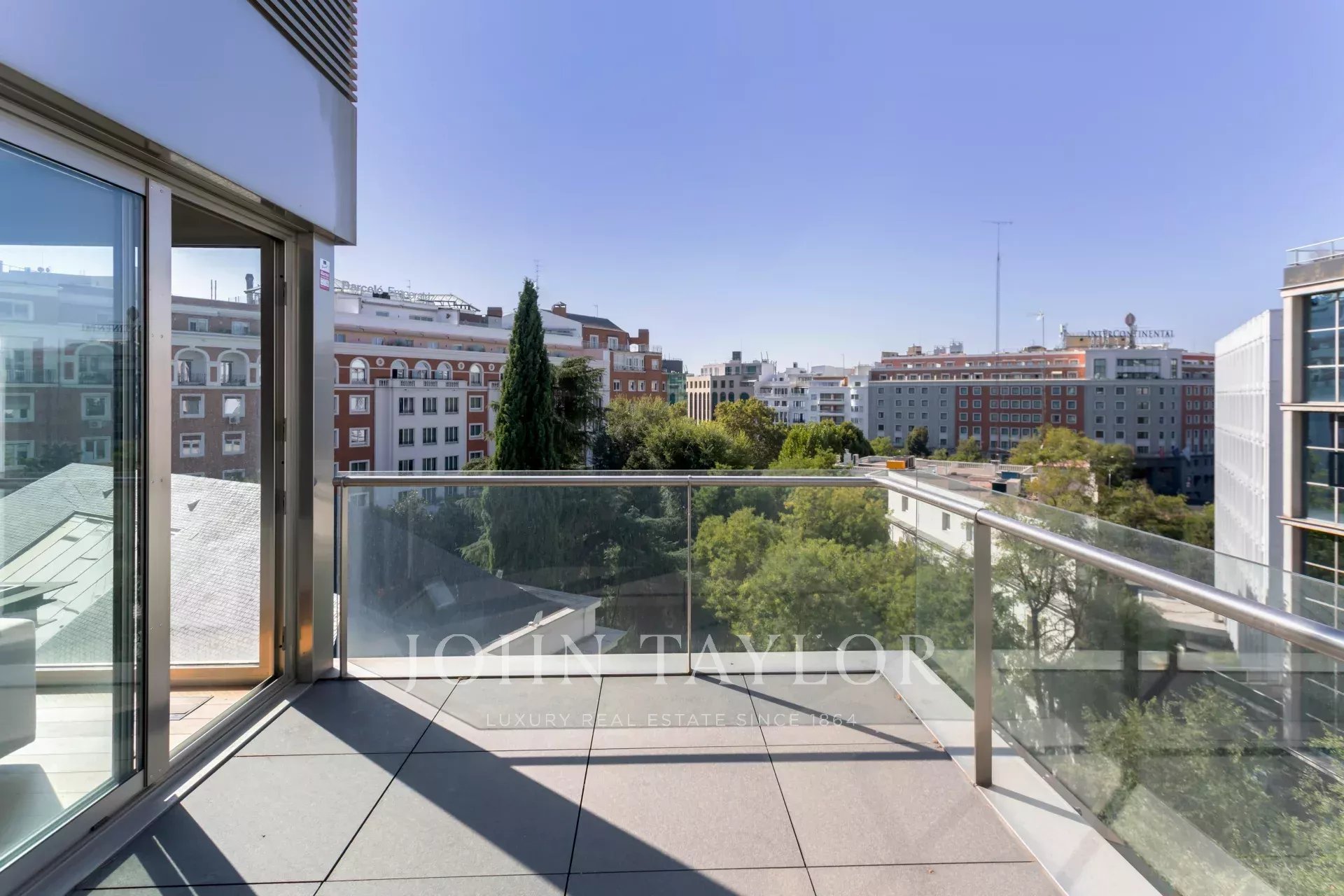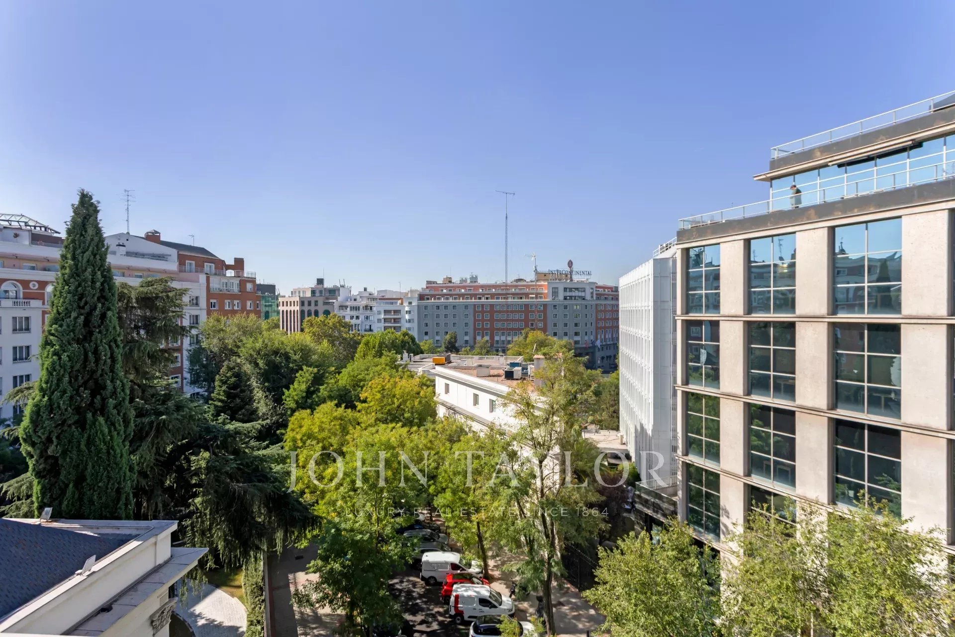 Si trova in una delle zone più eleganti e tranquille del quartiere di Salamanca e in un edificio rinomato, Primo Premio di Architettura del Comune di Madrid 2007, che si distingue per la sua imponente pianta, la facciata in marmo travertino e vetro e l'uso di materiali come il legno di jatoba.