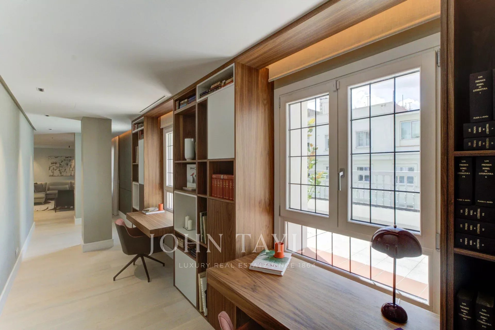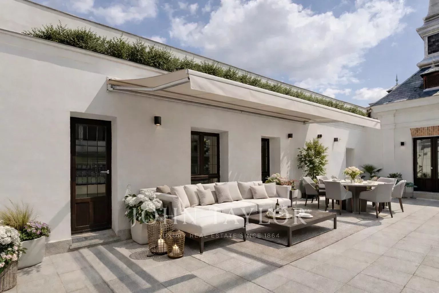 John Taylor presenta questo favoloso attico con enorme terrazza, garage, piscina e palestra, in una splendida finca classica recentemente ristrutturata.