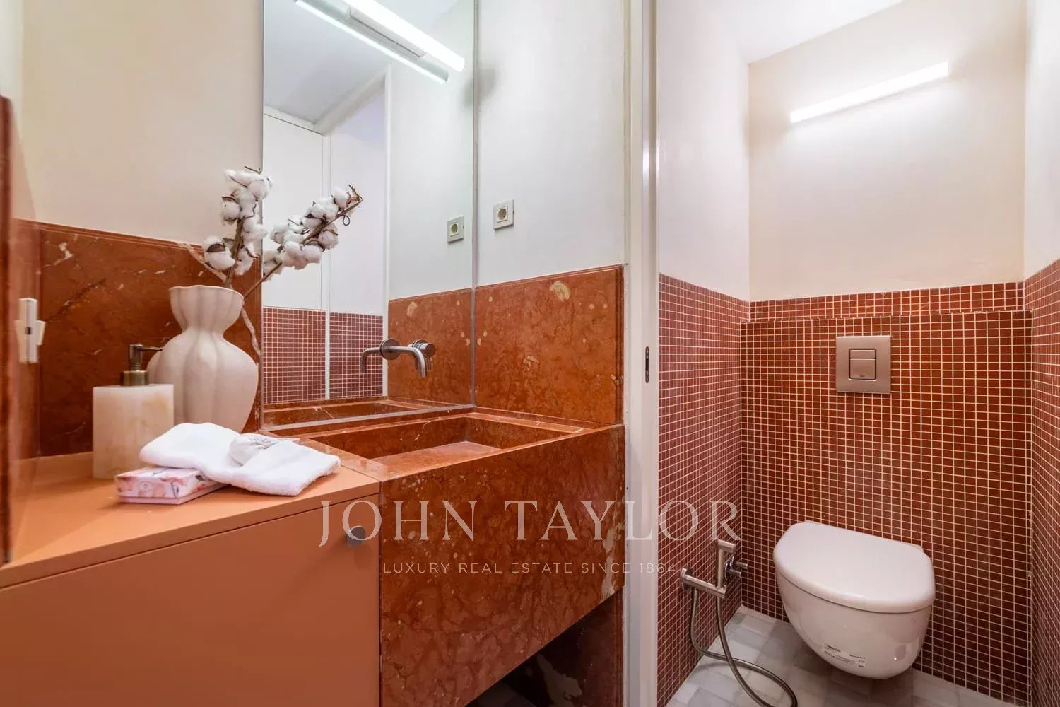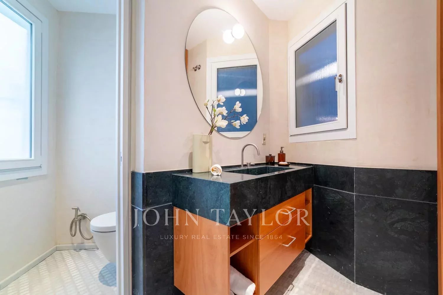 La proprietà, di 175 m², è stata completamente ristrutturata a nuovo, combinando il fascino dell'architettura classica con un design interno contemporaneo e sofisticato. Gode di un eccellente orientamento a ovest, che porta un'abbondanza di luce naturale nelle stanze principali.