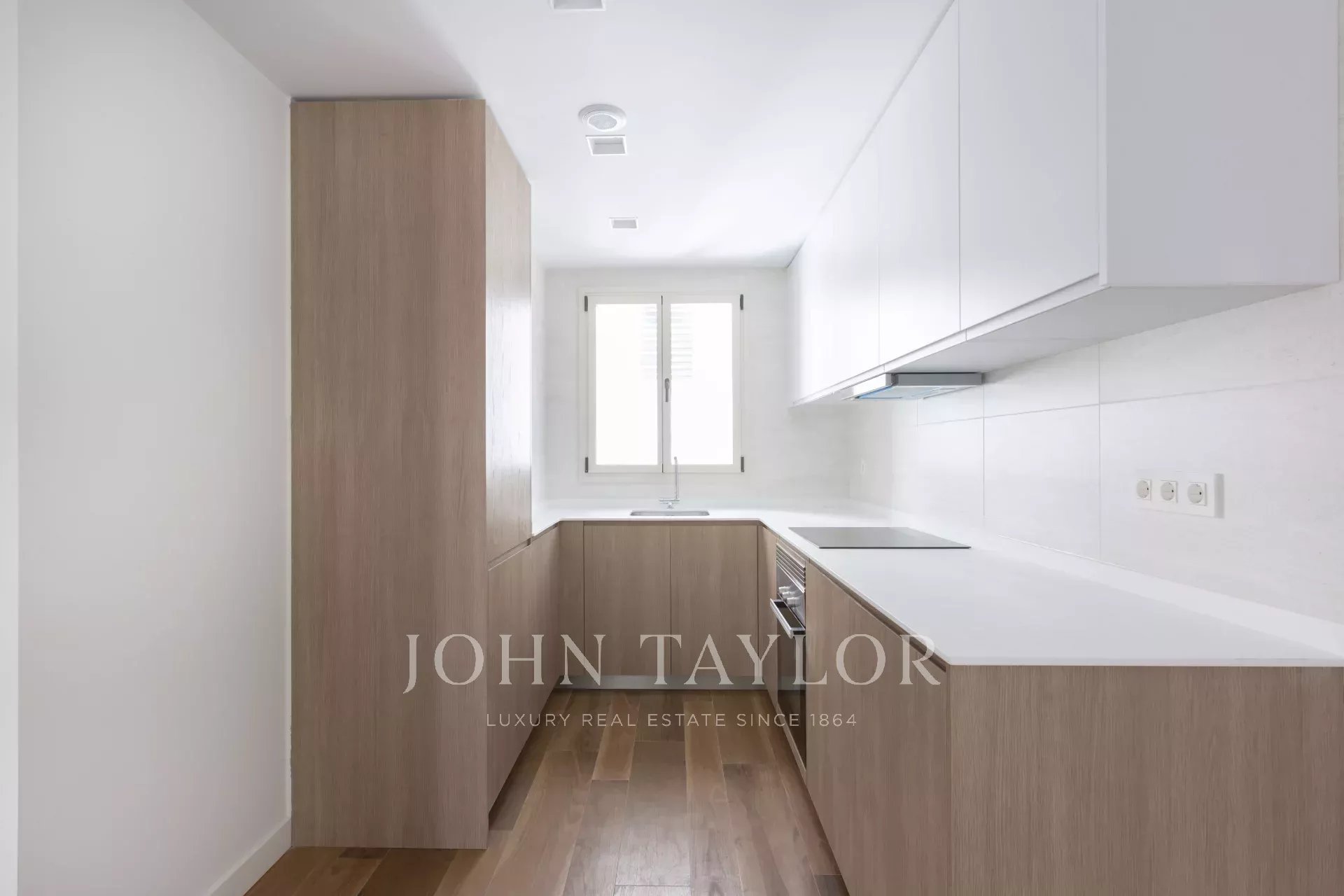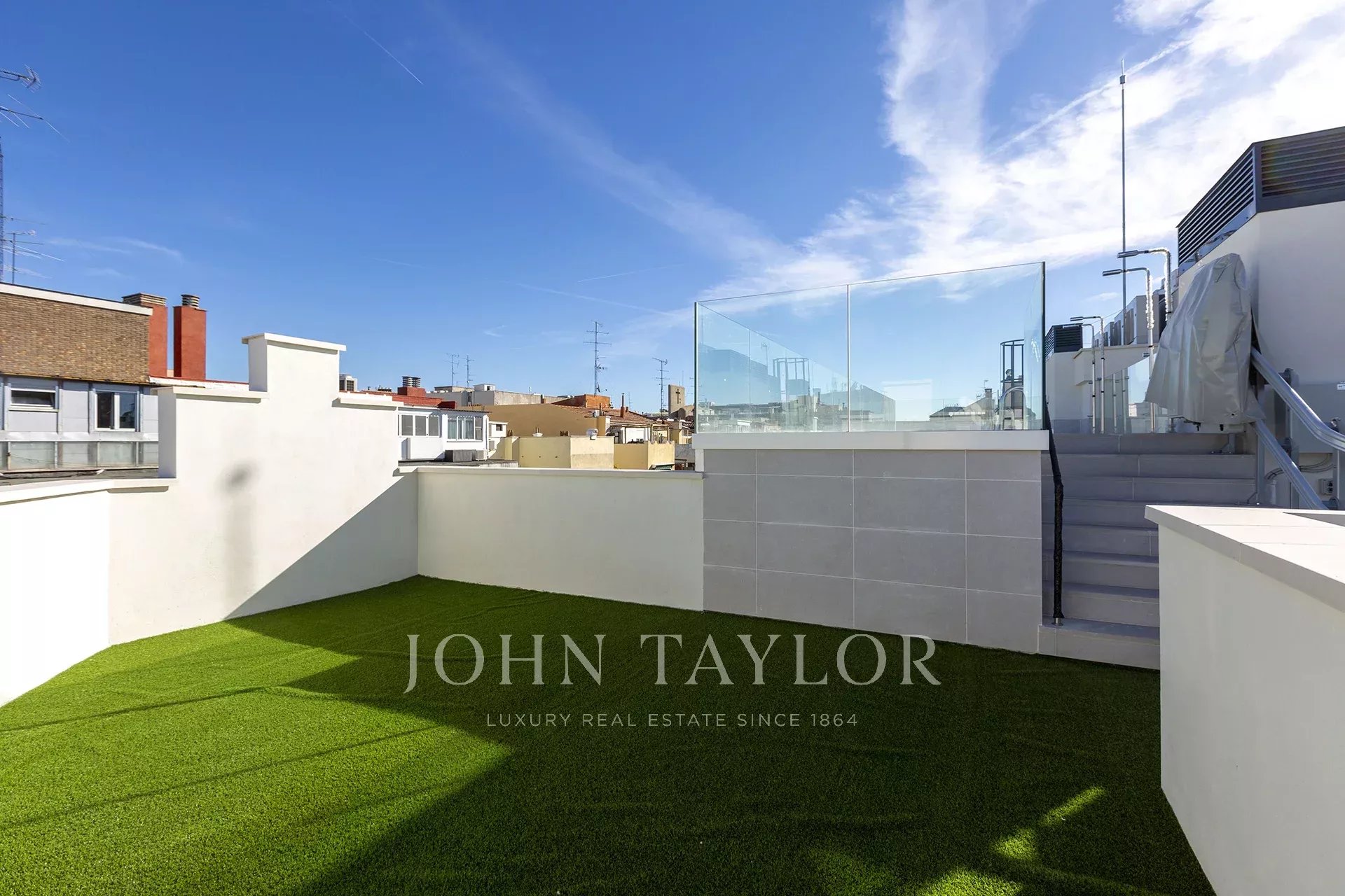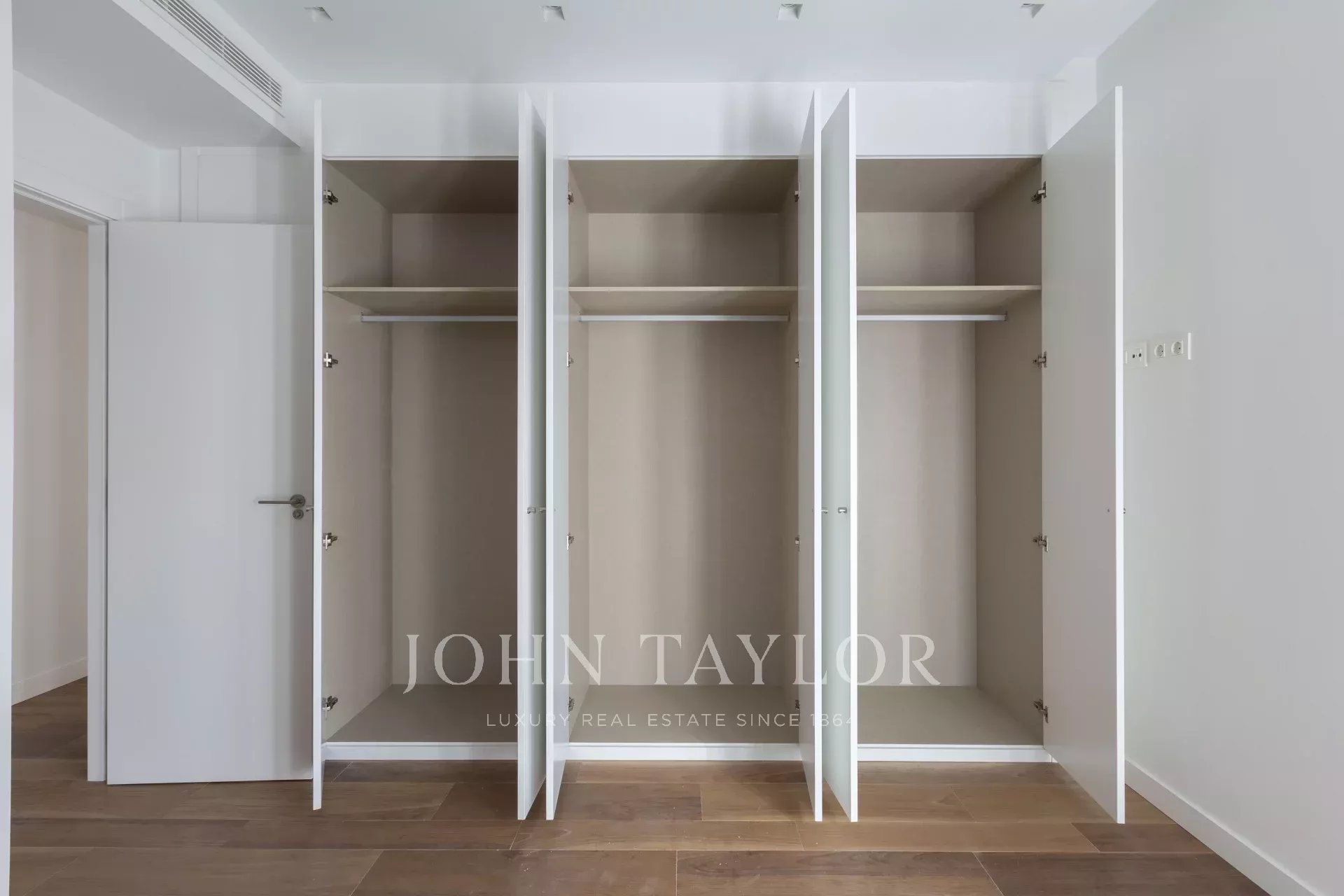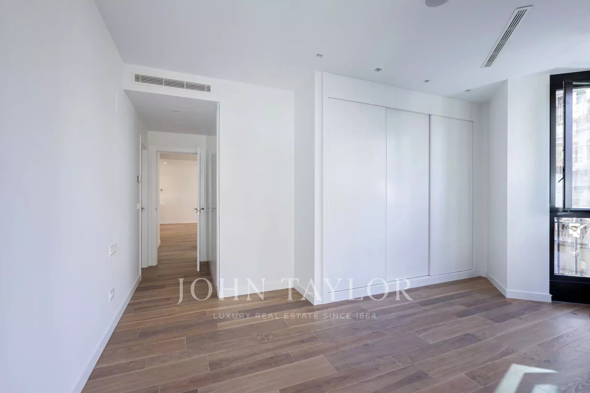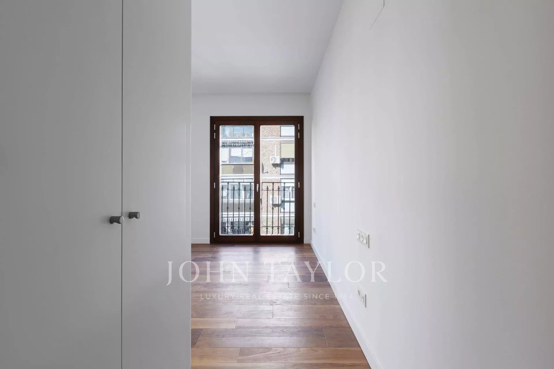 In uno dei pochi edifici nuovi del Barrio de Salamanca, troviamo questo favoloso appartamento nuovo di zecca. Con cinque balconi che si affacciano sulla strada e che occupano l'angolo del quarto piano dell'edificio, l'appartamento gode di una fantastica luce e di ampi spazi.