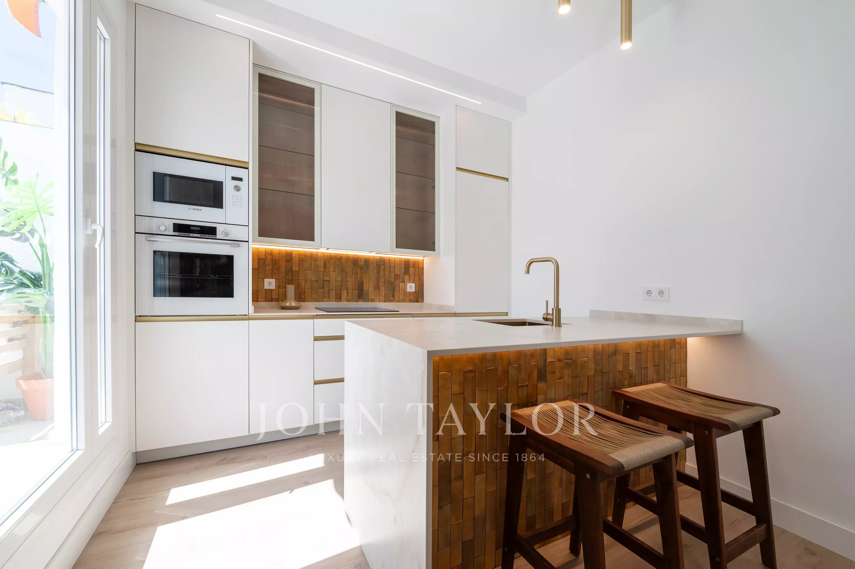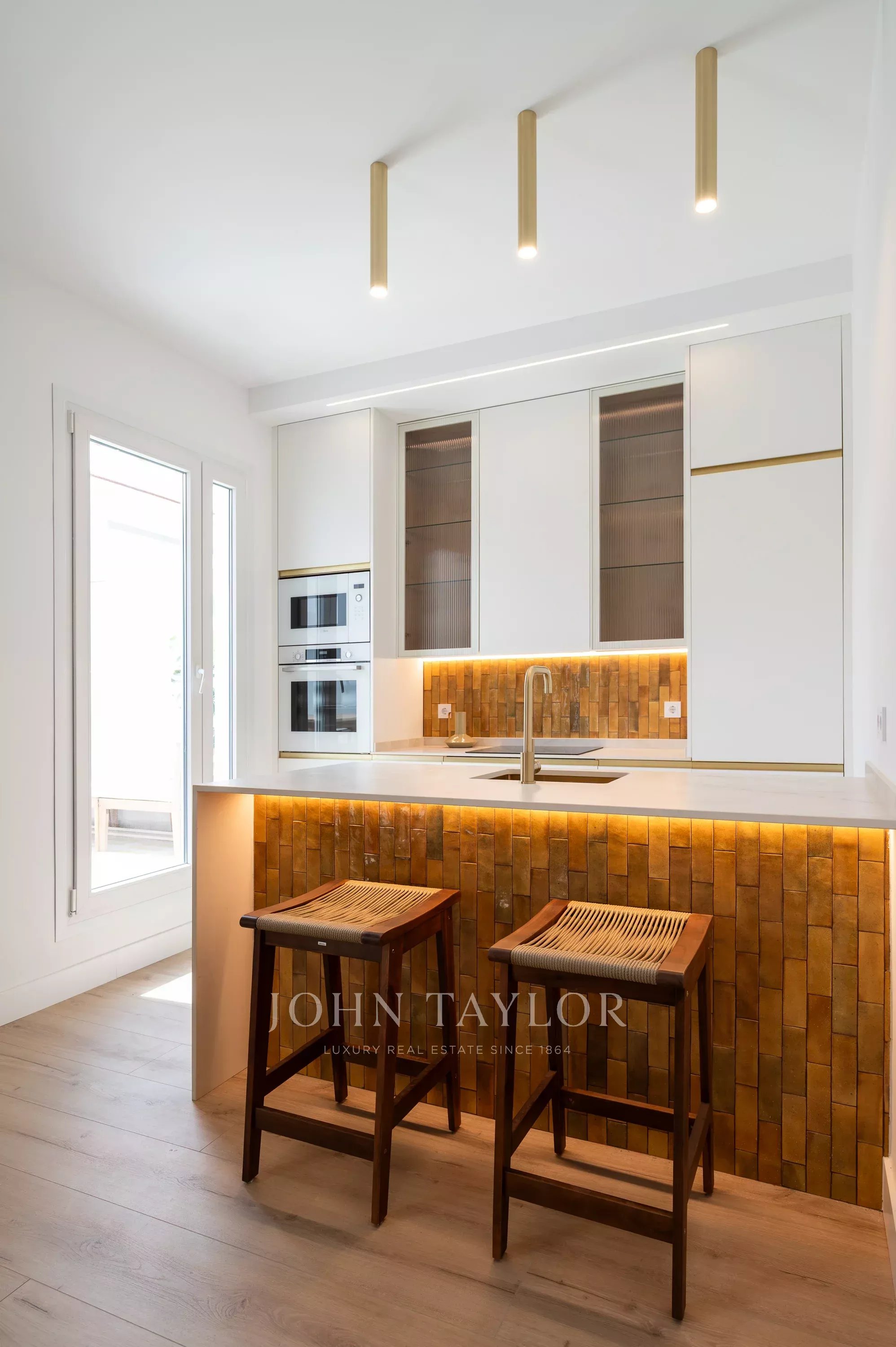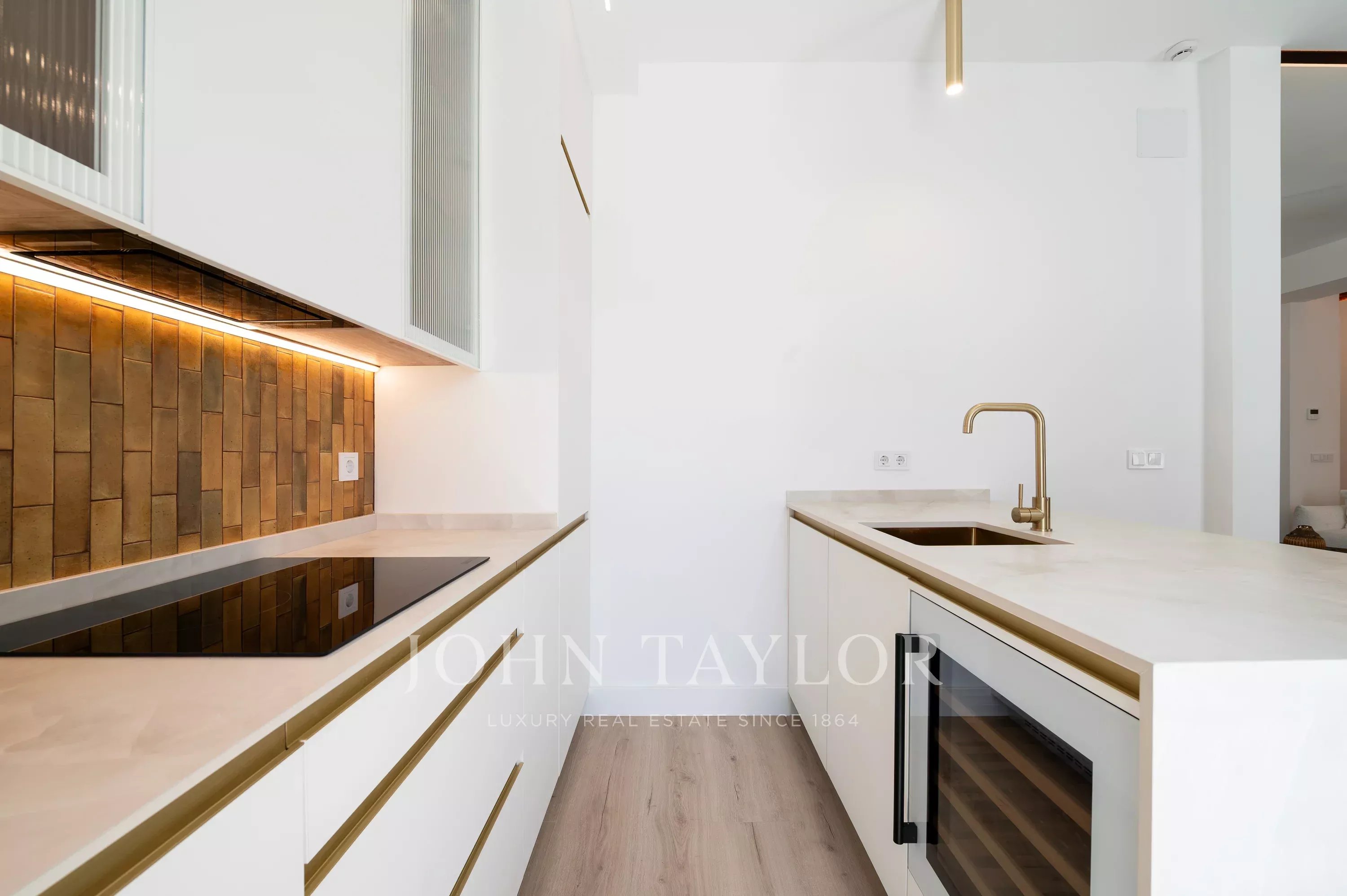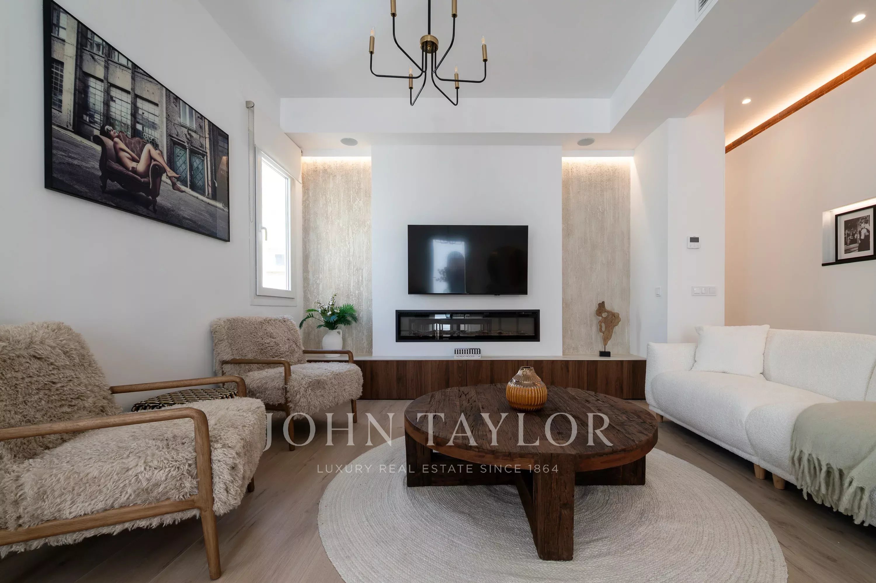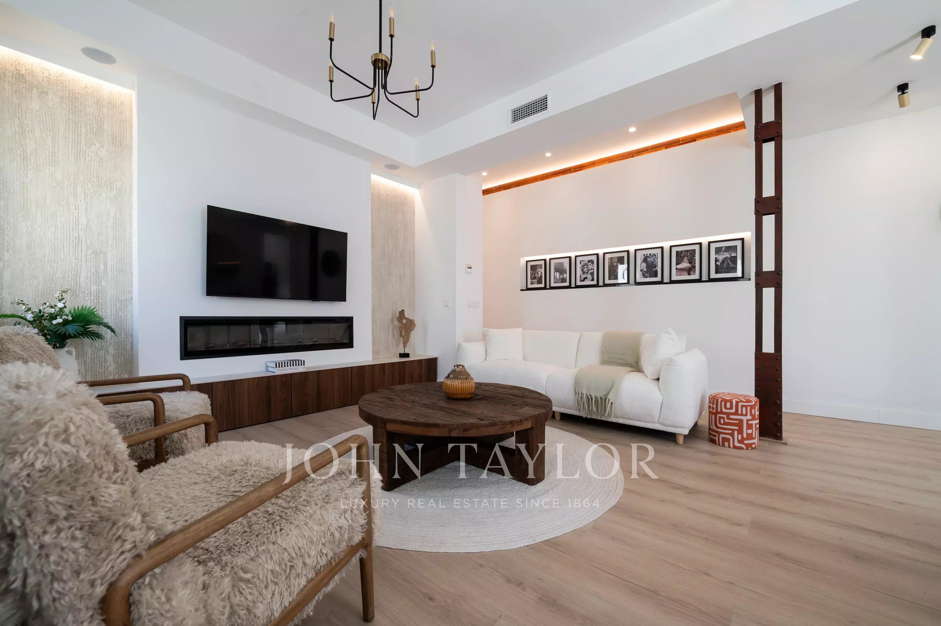 Attico esterno esposto a sud in un edificio classico, dove la luce naturale e la serenità esaltano l'esperienza di vivere a Madrid.