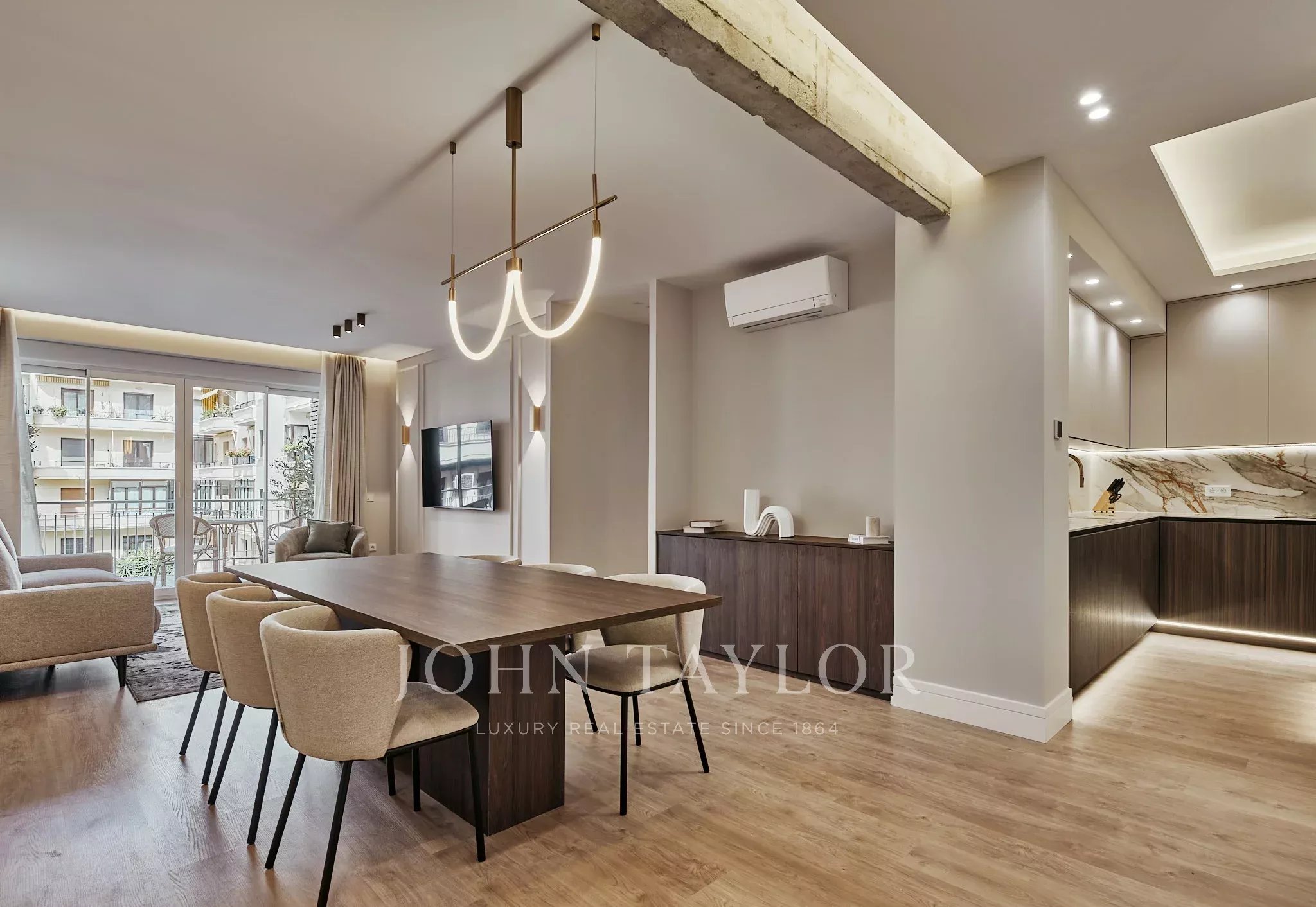 Ampia zona giorno con soggiorno, sala da pranzo e cucina a vista completamente attrezzata. Dispone di quattro camere da letto, quattro bagni e un bagno di servizio. Dispone inoltre di balcone e terrazza, che offrono un piacevole collegamento con l'esterno.